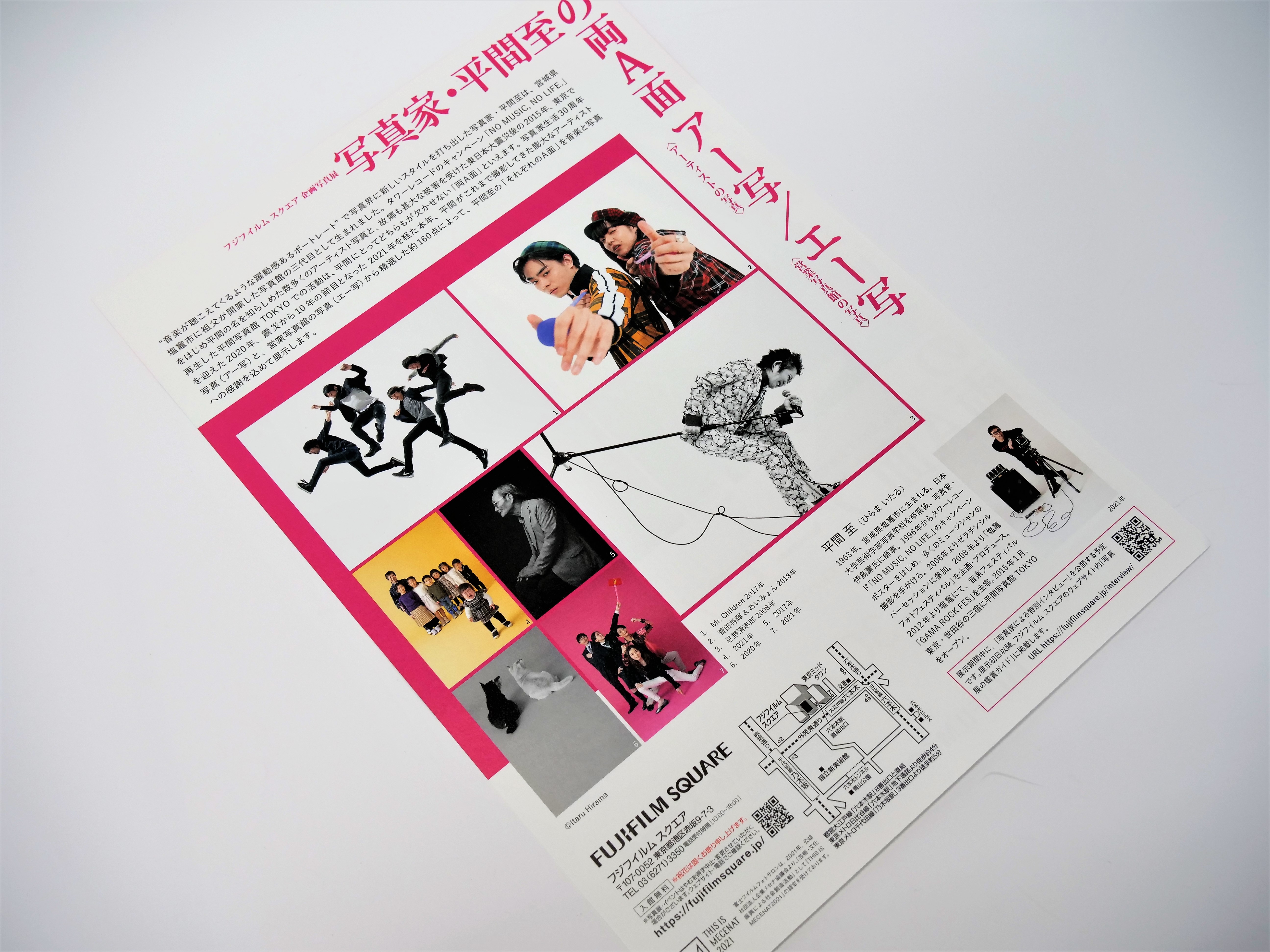 今回は、フジフィルム スクエアで開催中、写真展『写真家・平間至の両A面 アー写/エー写』リーフレットなどをご紹介いたします。
