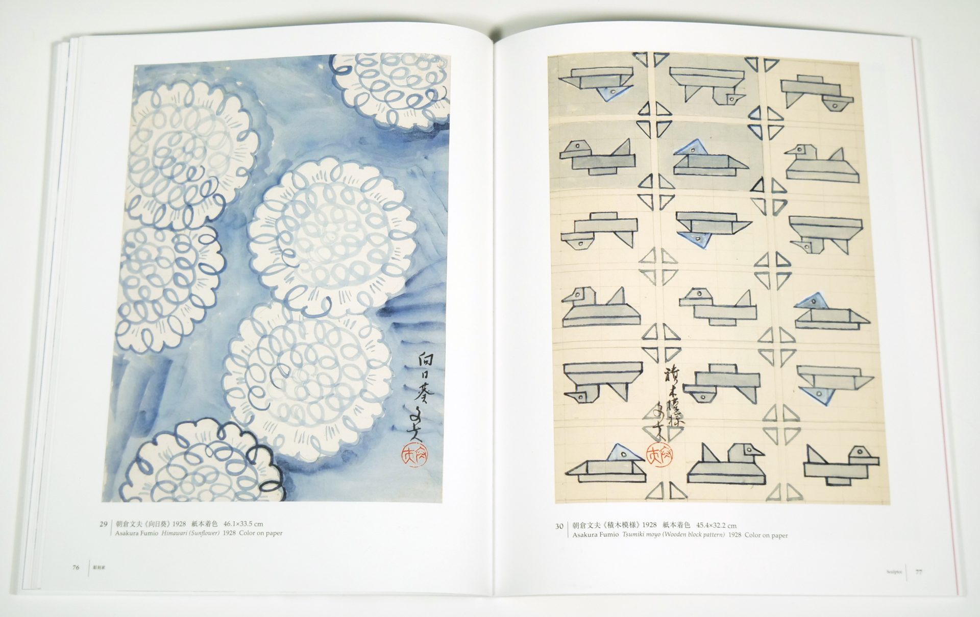 丸紅ギャラリー刊行の図録の殆どは撮影から立会いを行い、実際に現物を確認しながら校正を行っています。今回は染織の図案という事で『図案』と『図案が元となる美術装飾の染織品』が本書の中心となる為、図案の色を極力、再現する必要があります。