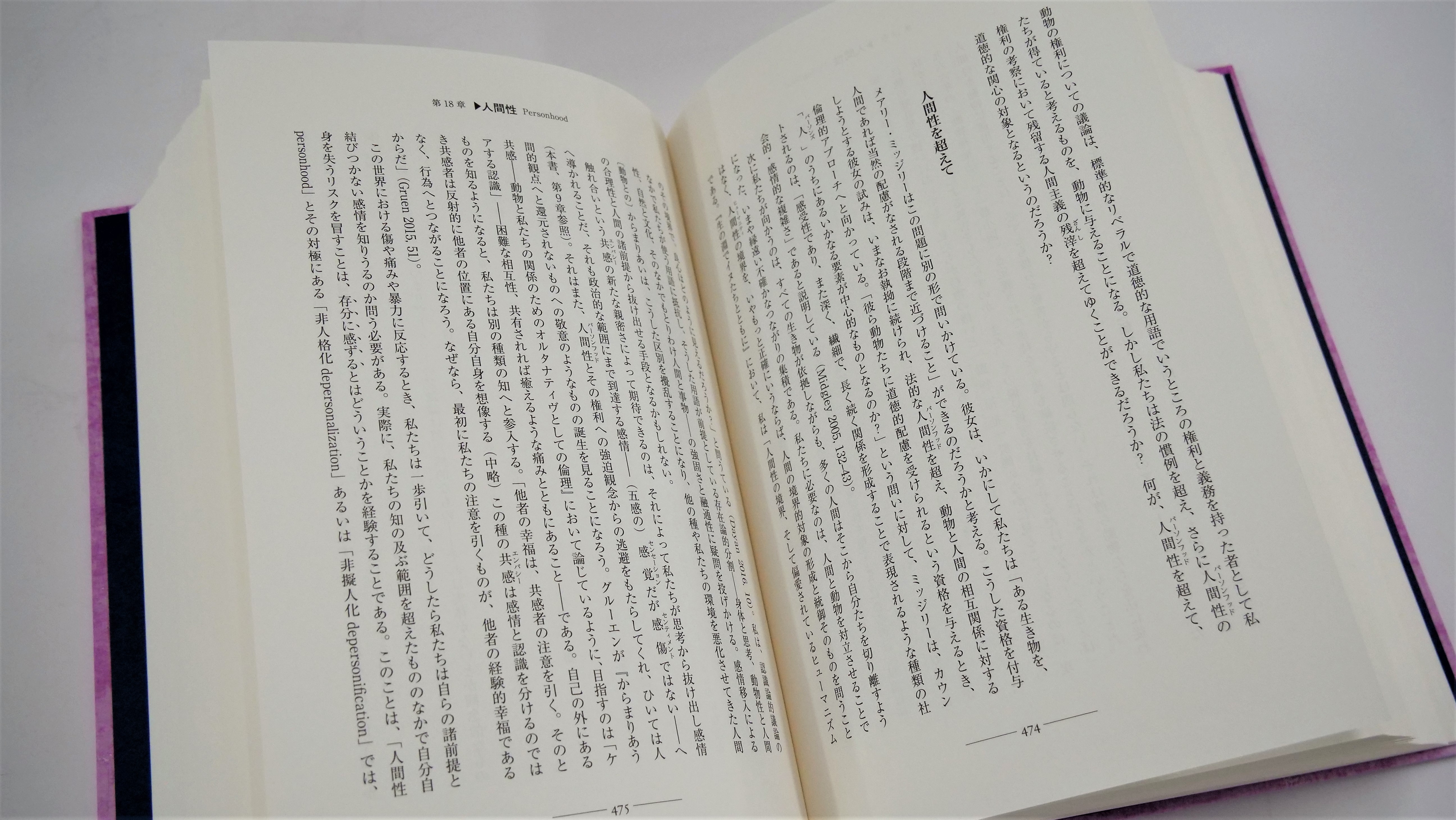 806ページと辞書のような大ボリューム。もちろん1冊を通してお読みになることが、〈アニマル・スタディーズ〉の全体像を把握するのに最もお勧めですが、29の章はそれぞれ単独の論考となっていますので、興味のあるテーマから読み進めても〈アニマル・スタディーズ〉の具体的なイメージを理解することができます。