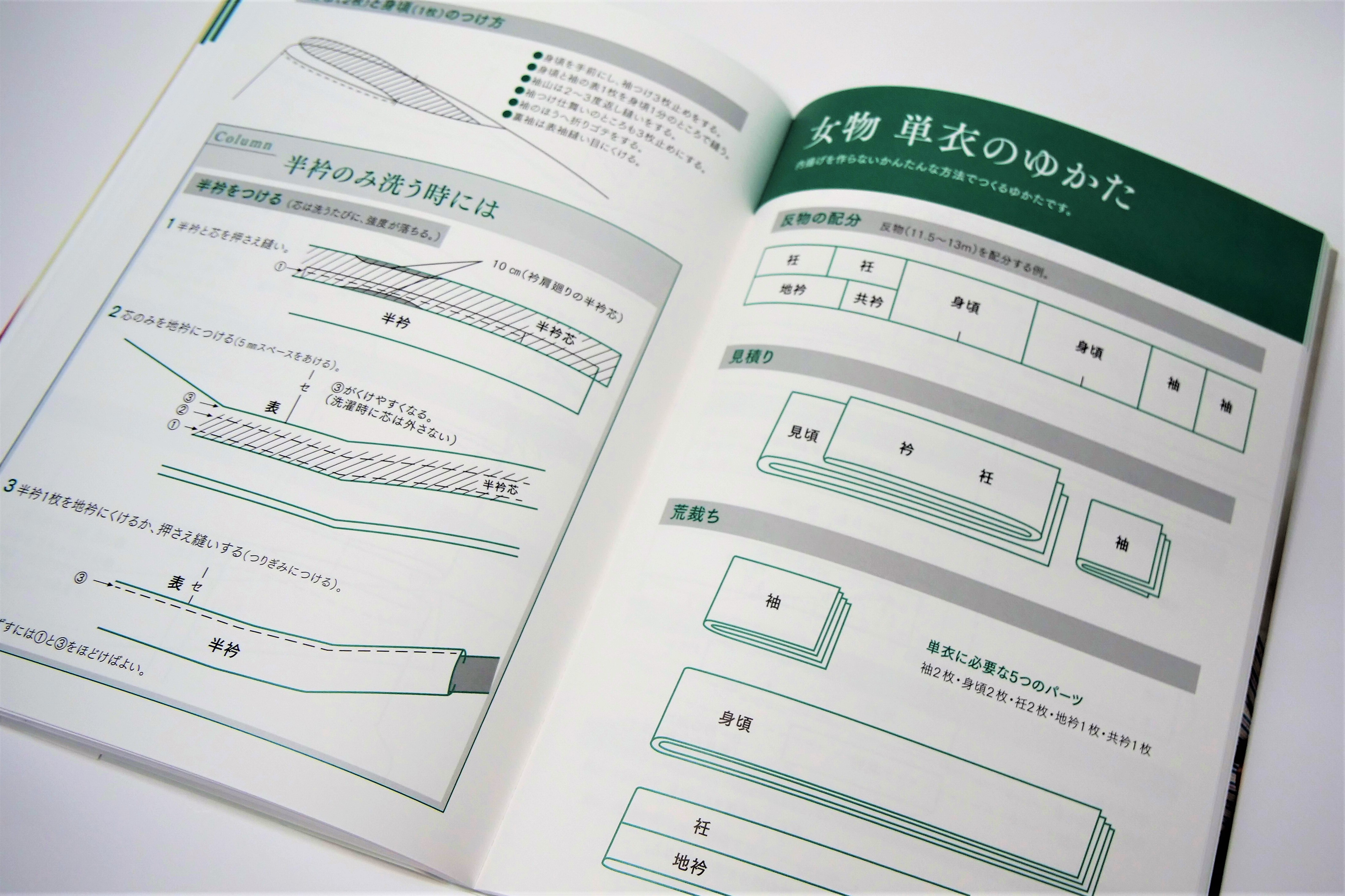 祖母が反物から綺麗にきものを仕立てて着ていたのを思い出すと、今になって教えてもらっておけばよかったな…と思います。本書は図解がわかりやすく、手順も丁寧に解説されていますので、和裁の技能検定の参考書としてや、自宅の和服のリメイクのヒントとして役立ちます。洋服地からの単衣のきものの作り方も掲載されていますので、まずはカジュアルに楽しみたい初心者の方にもおススメです。ぜひご覧ください。