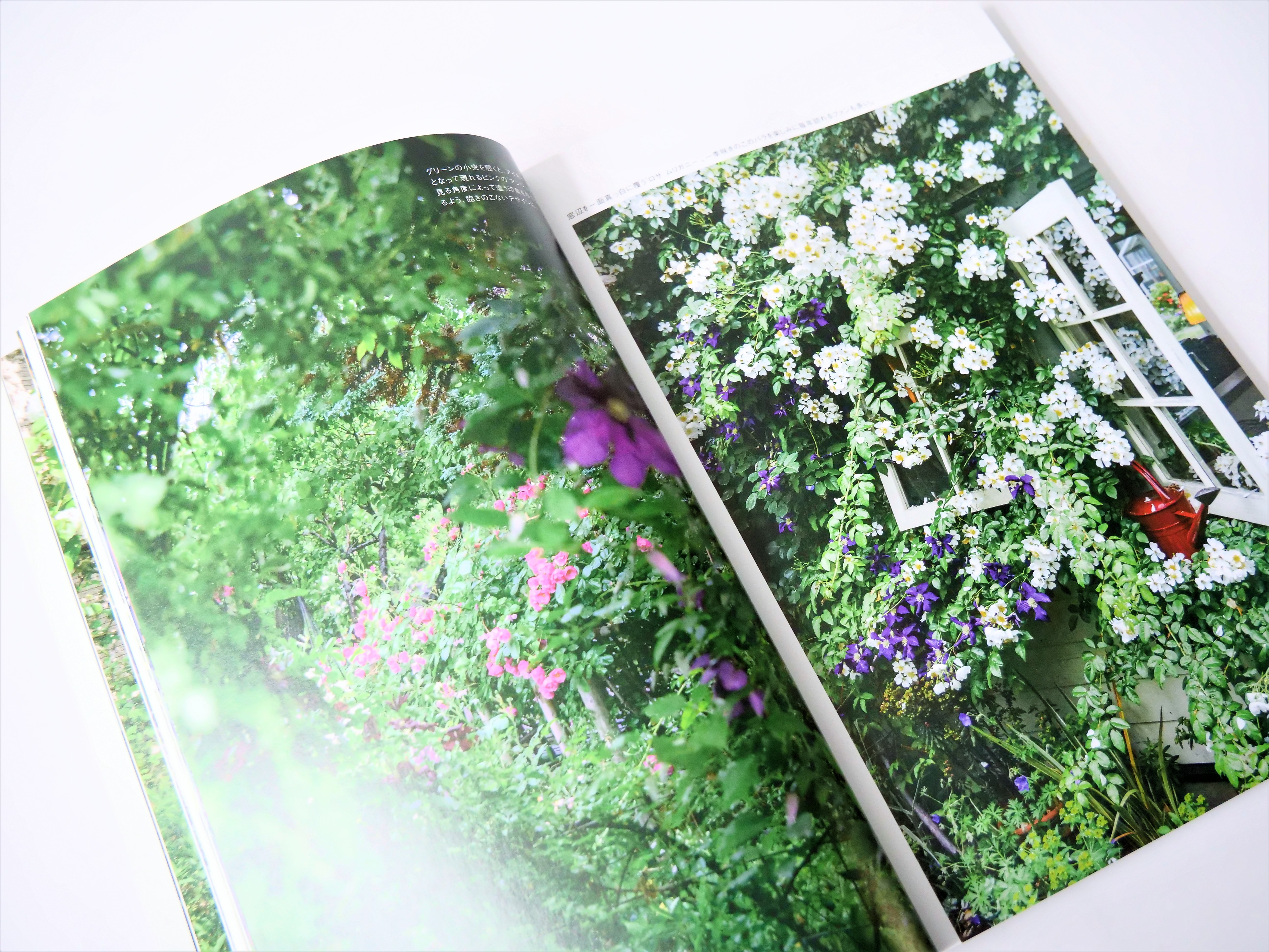 この本をごらんいただくと、まずバラやチューリップ、クレマチスなどの色鮮やかな花々が咲き乱れ、緑があふれる美しい庭の美しさに魅了されるでしょう。