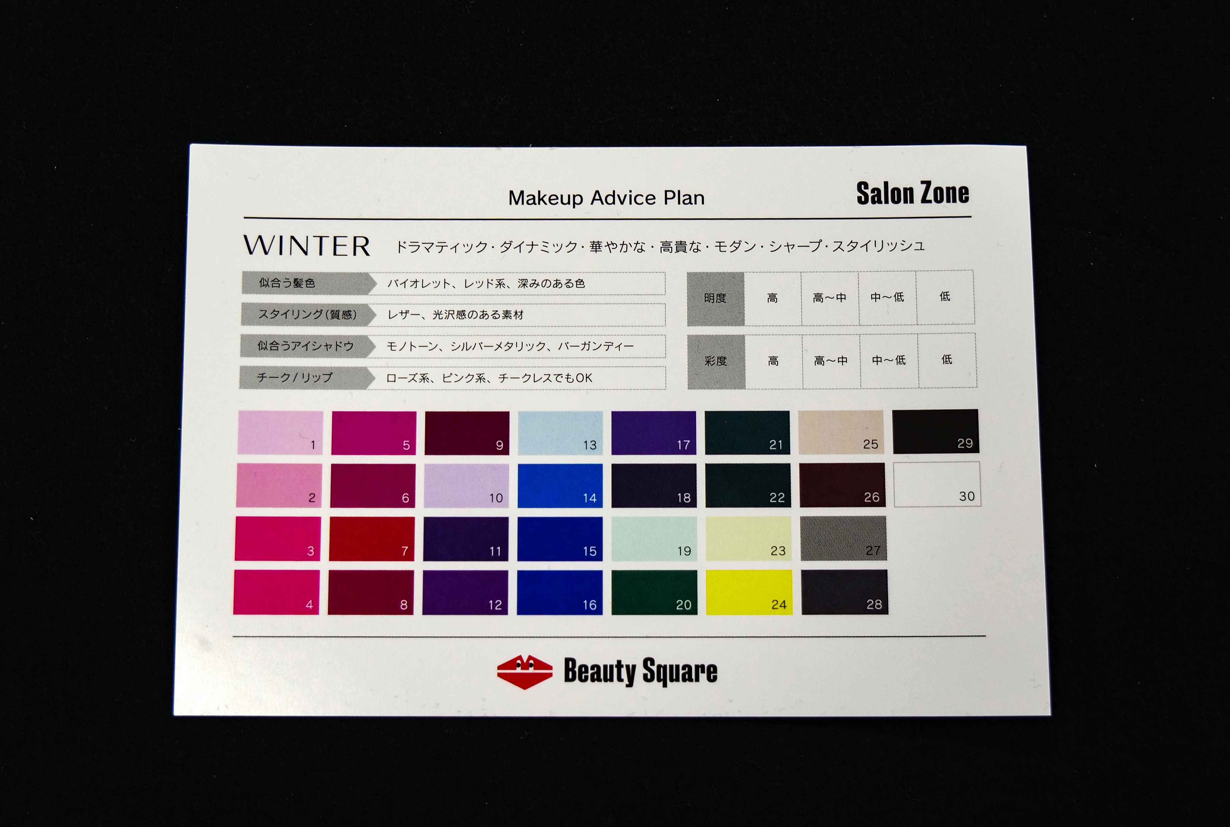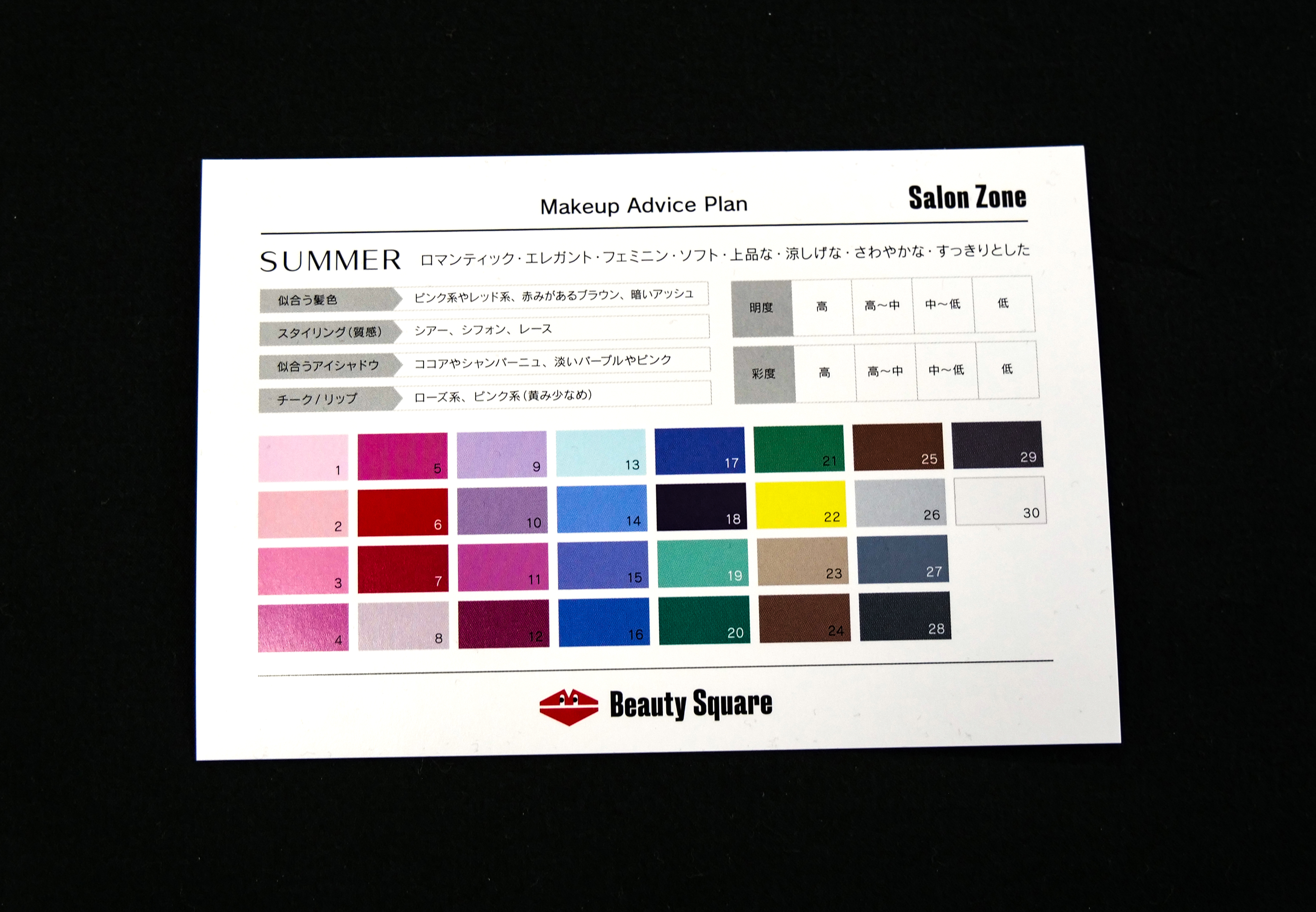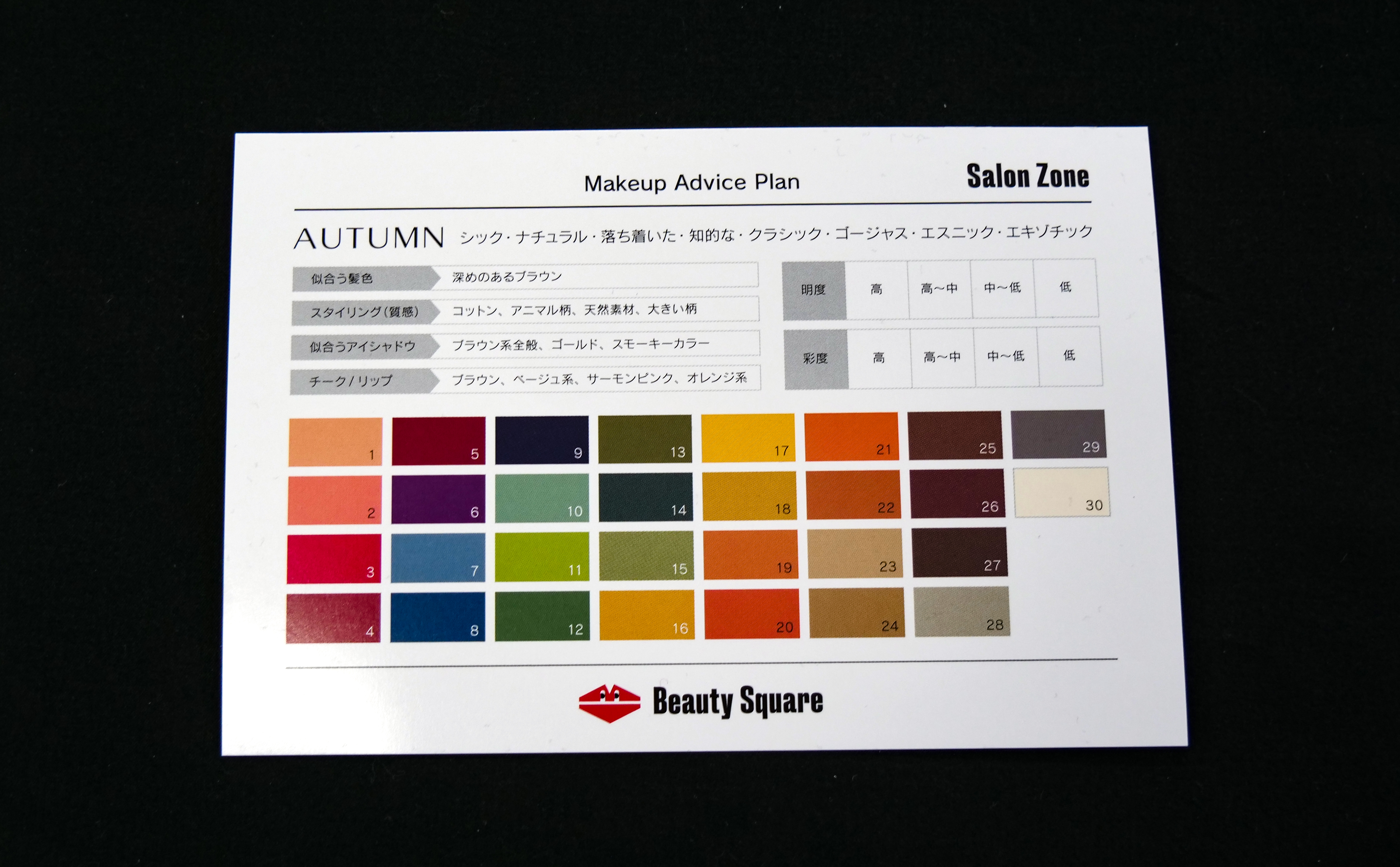 Shisedo Beauty Square Salon Zone パーソナルカラー分析診断シート