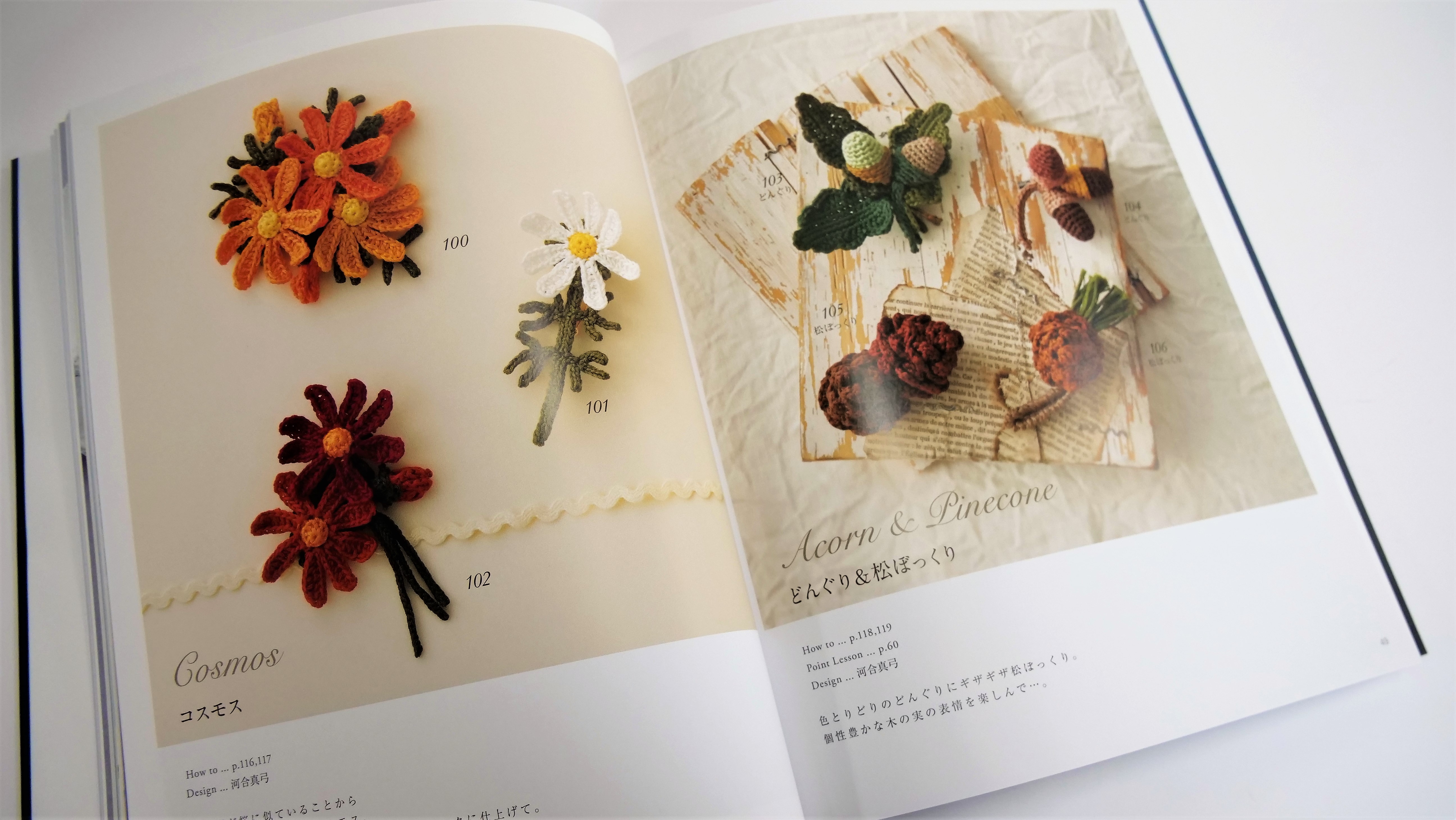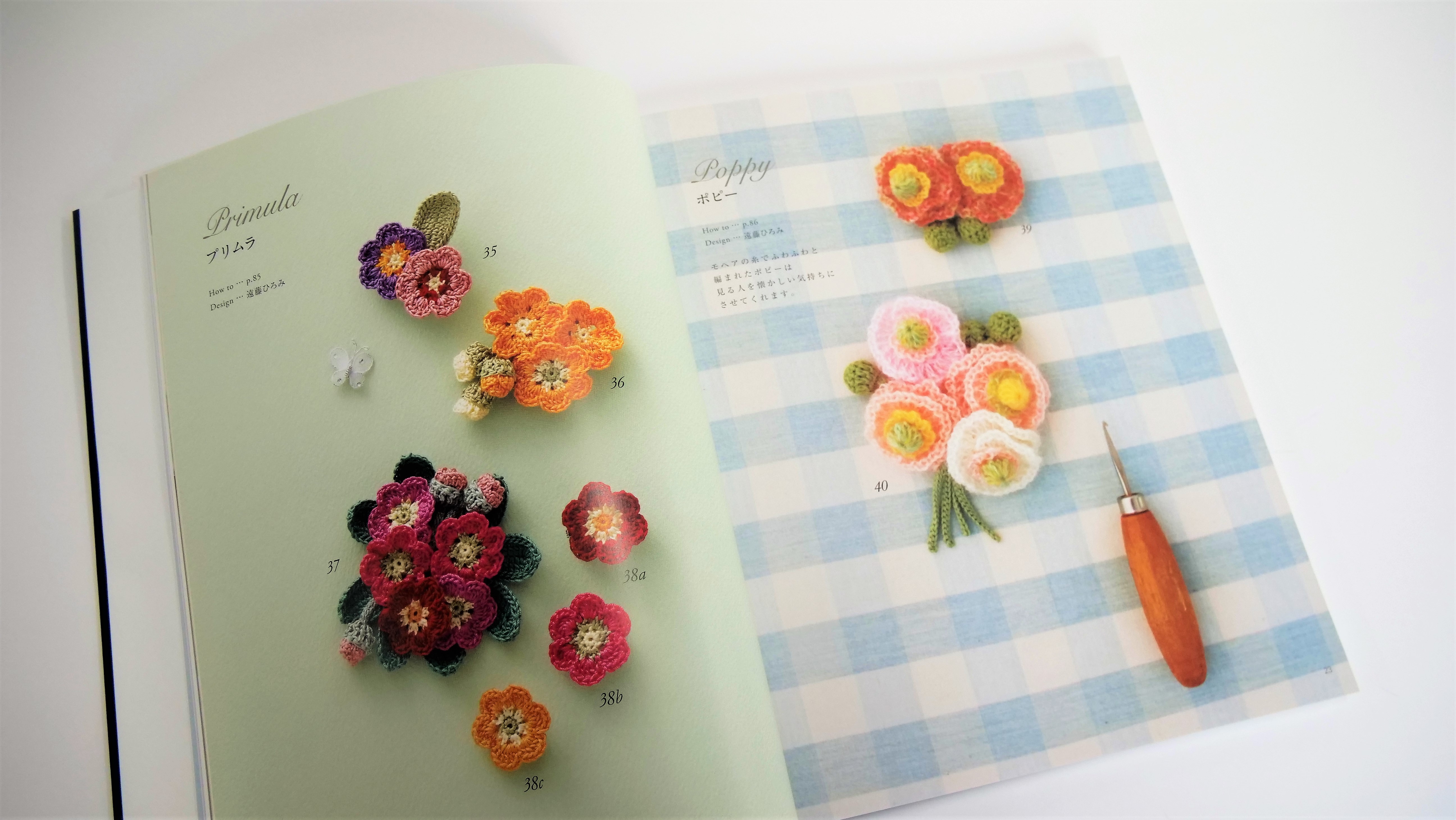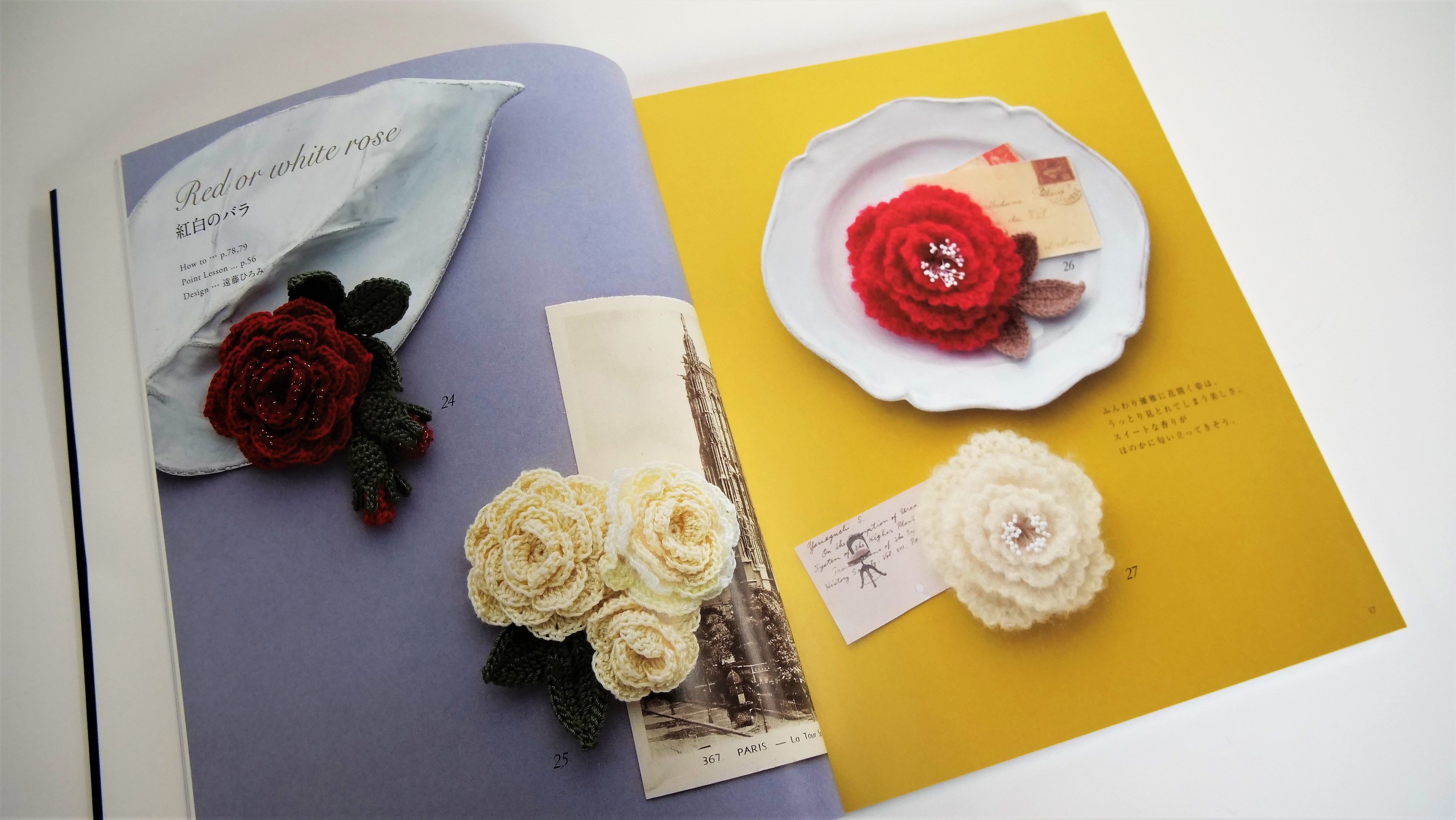 四季折々の花のコサージュを編んで、ファッションのワンポイントにすればウキウキと華やかな気分になれそうですね。紹介されている花の種類も豊富で、一輪からブーケまで幅広いので、皆様の暮らしを素敵に彩ってください。