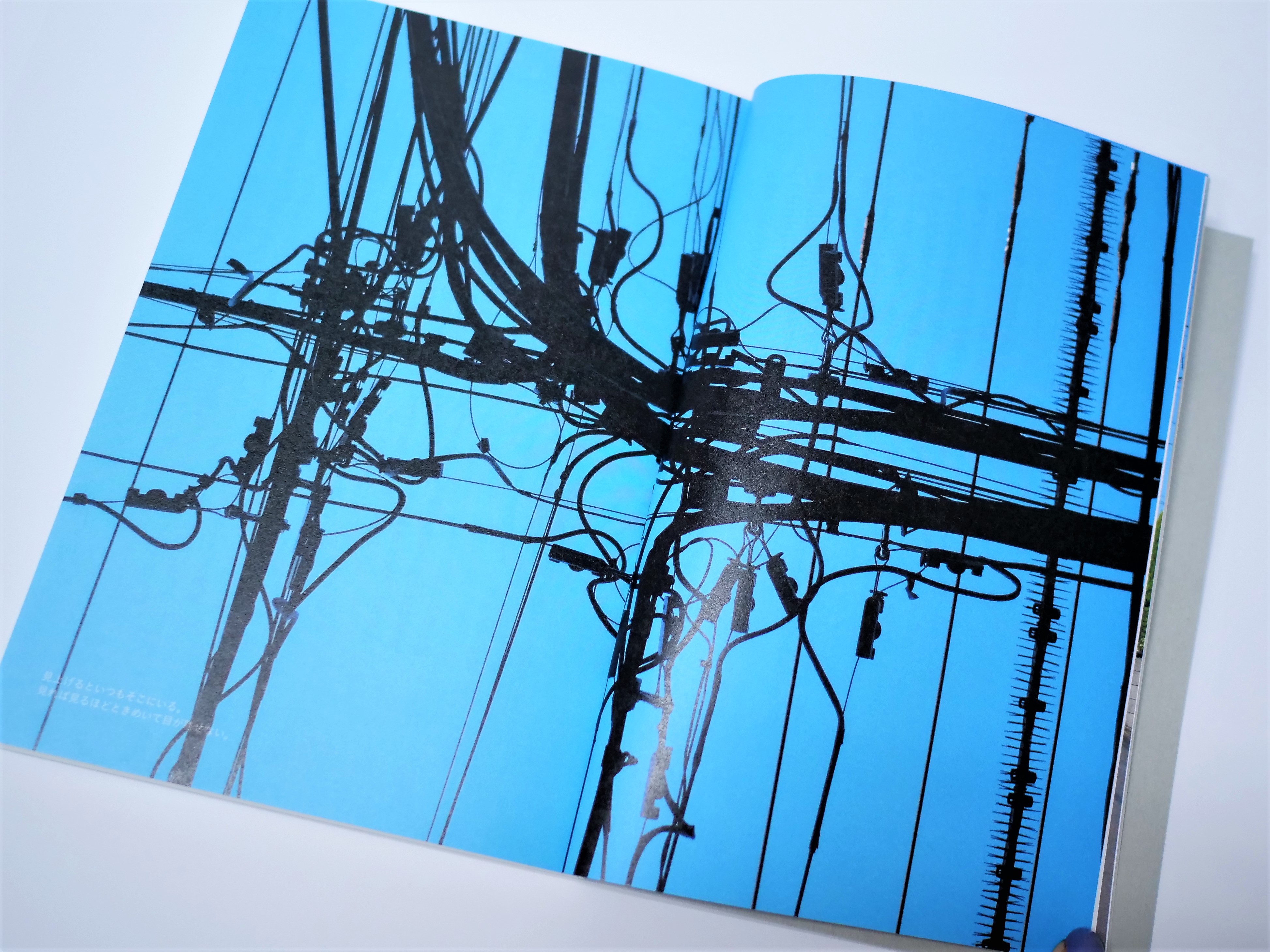 石山さんが15,000枚も撮りためたなかから厳選された電線写真です。今回使用しているb7トラネクストとオペラクリームマックスが、嵩高用紙と書籍用紙のため濁りが出やすいです。そのため、仕上がりとしてのコントラストを意識しながら、ハイライトの面積に応じて網点をどの諧調からつけていくか配慮しました。