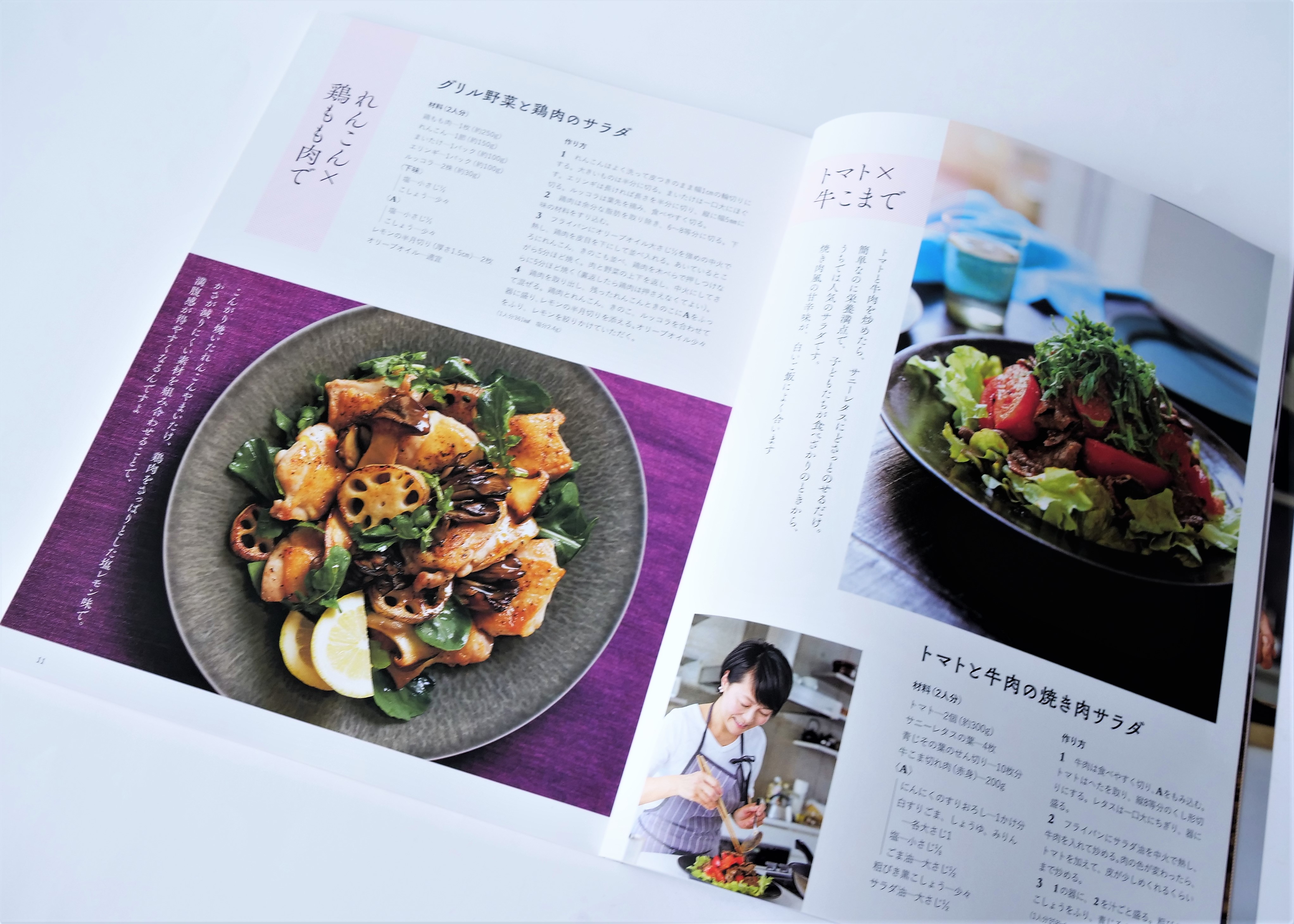 「ひと皿で効率よく栄養がとれるおかずサラダ&鍋物」は、日々家事に追われ、毎日の献立に悩む方々のお助けレシピ。低脂肪な鶏むね肉や牛の赤味肉も、藤井さんのテクニックでより美味しく食べられます。