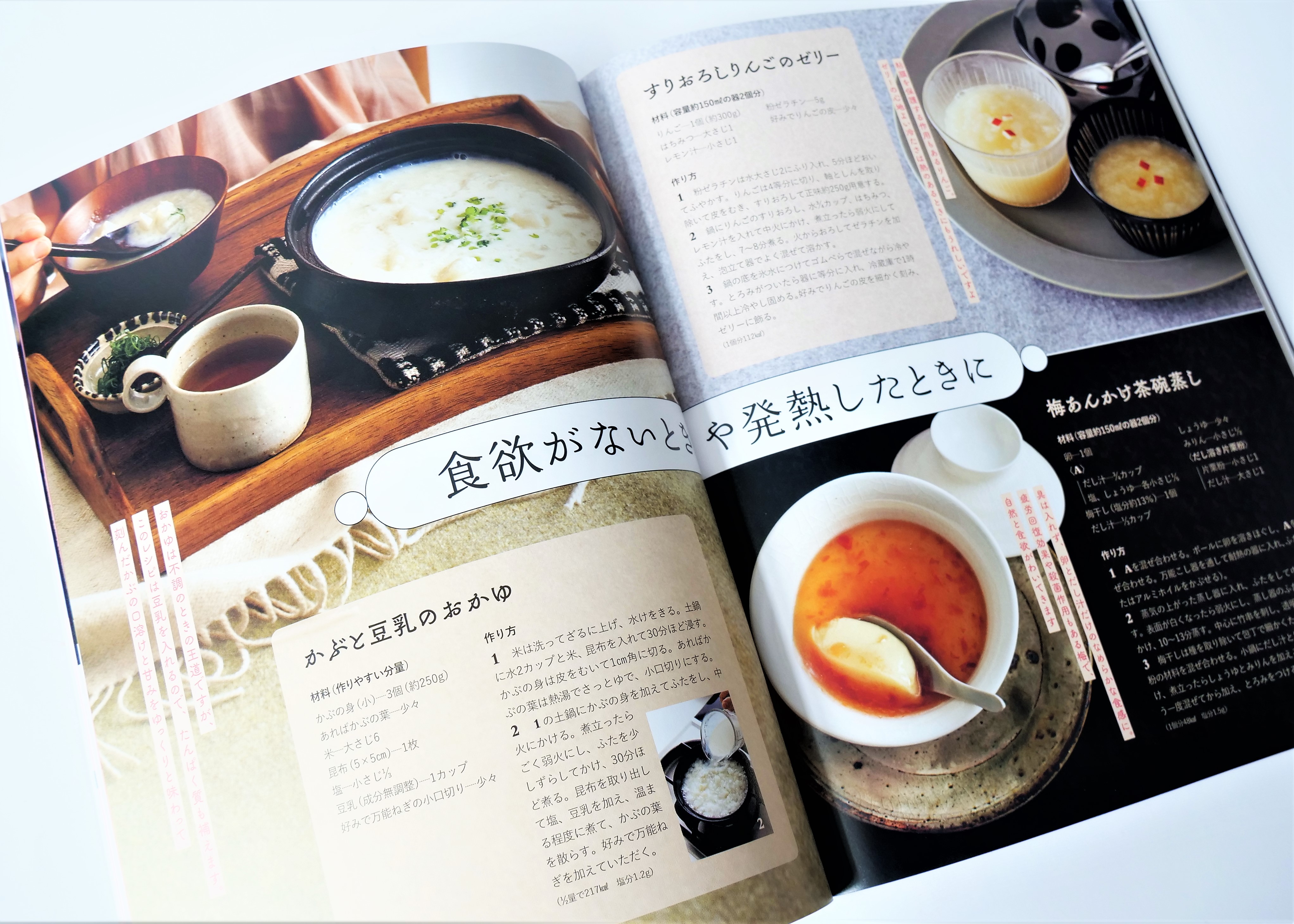 納豆やわかめ、ヨーグルトなどの腸活素材を活かした健康的なレシピや、体調を崩した時にもからだをいたわるやさしいメニューも多数紹介されています。