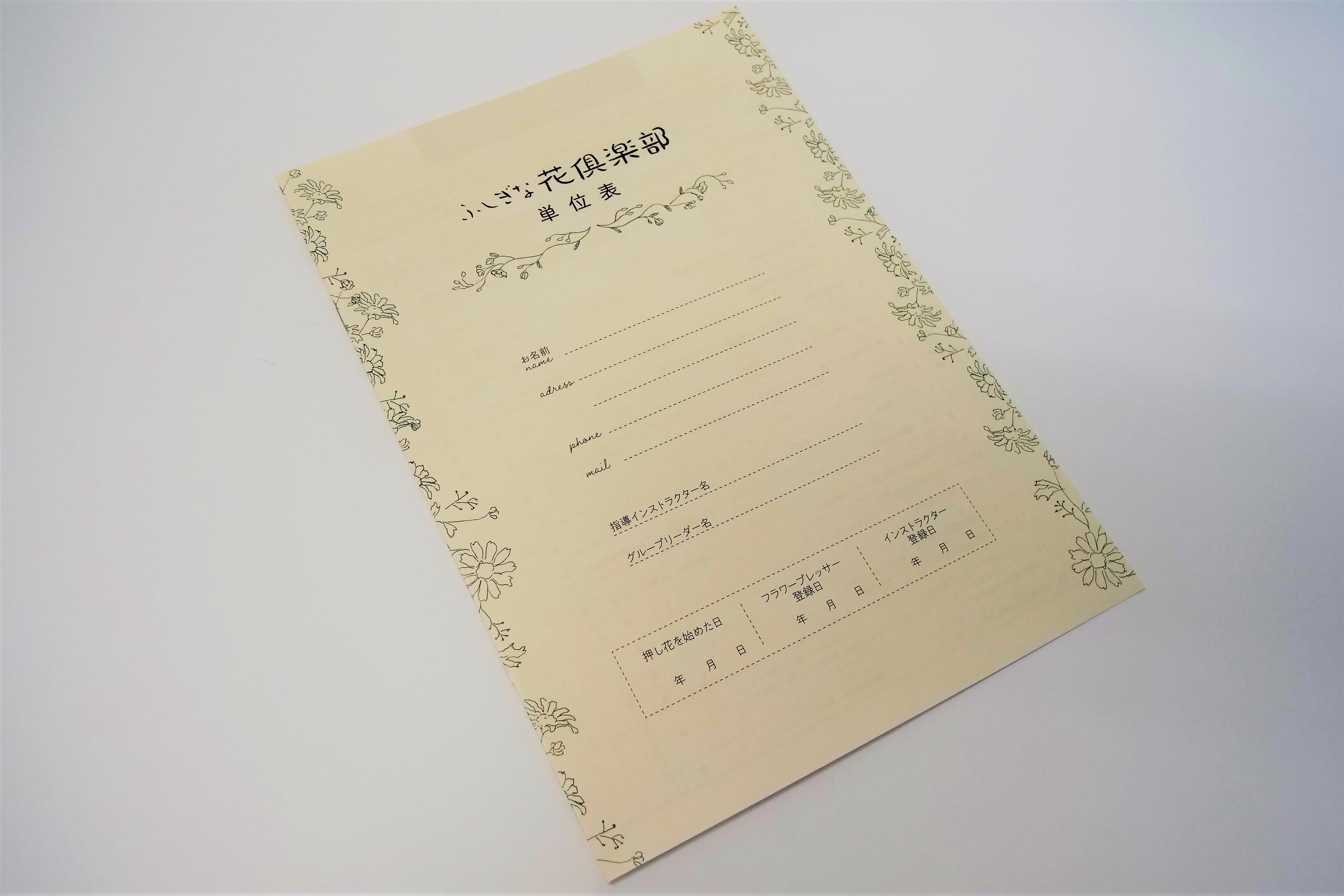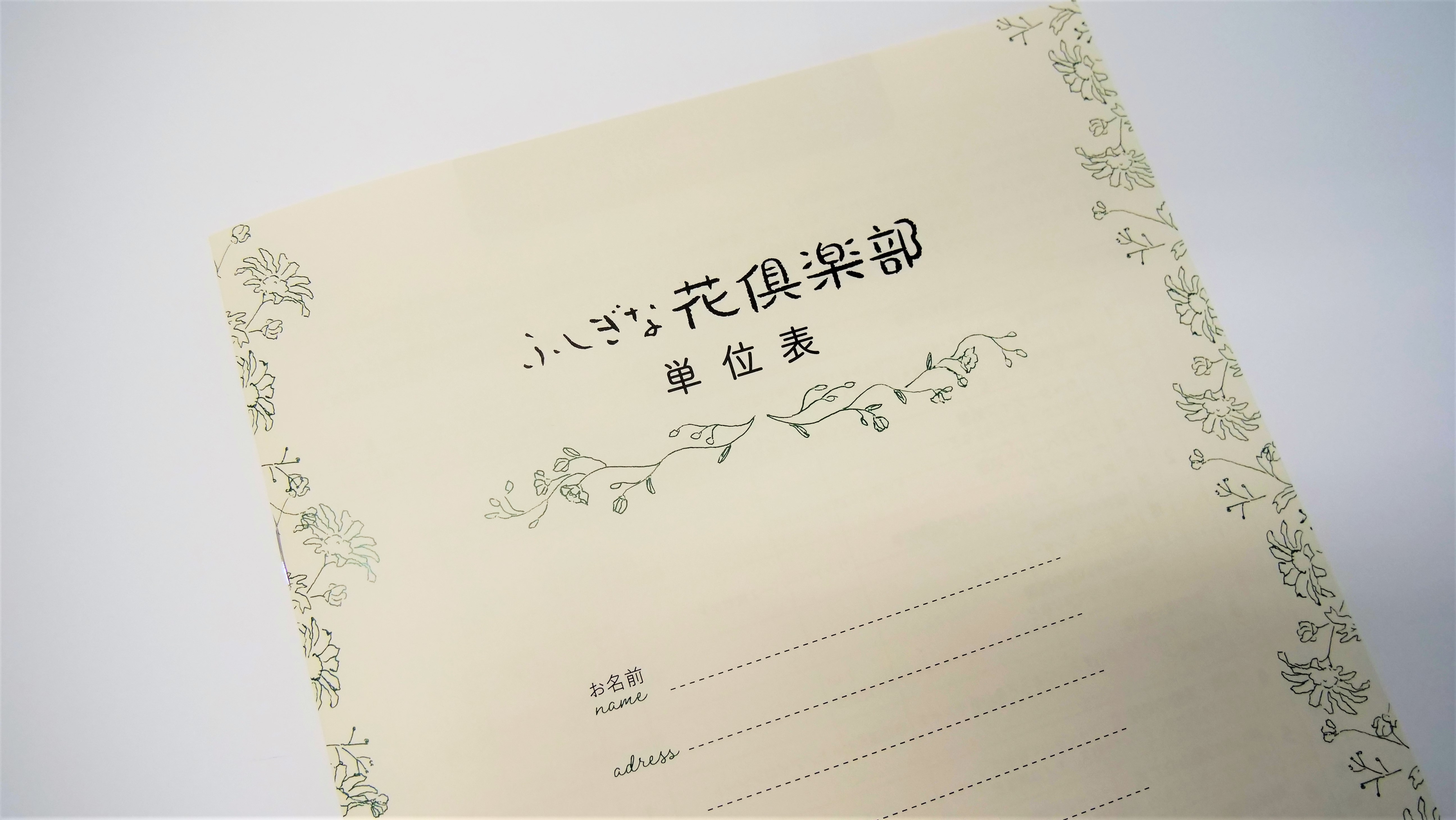 日本ヴォーグ社が運営する押し花を楽しむ活動の場「ふしぎな花倶楽部」の資格取得のための単位表製作をお手伝いさせていただきました。当社製版課社員がイラストとデザインをそれぞれ担当させていただきました。