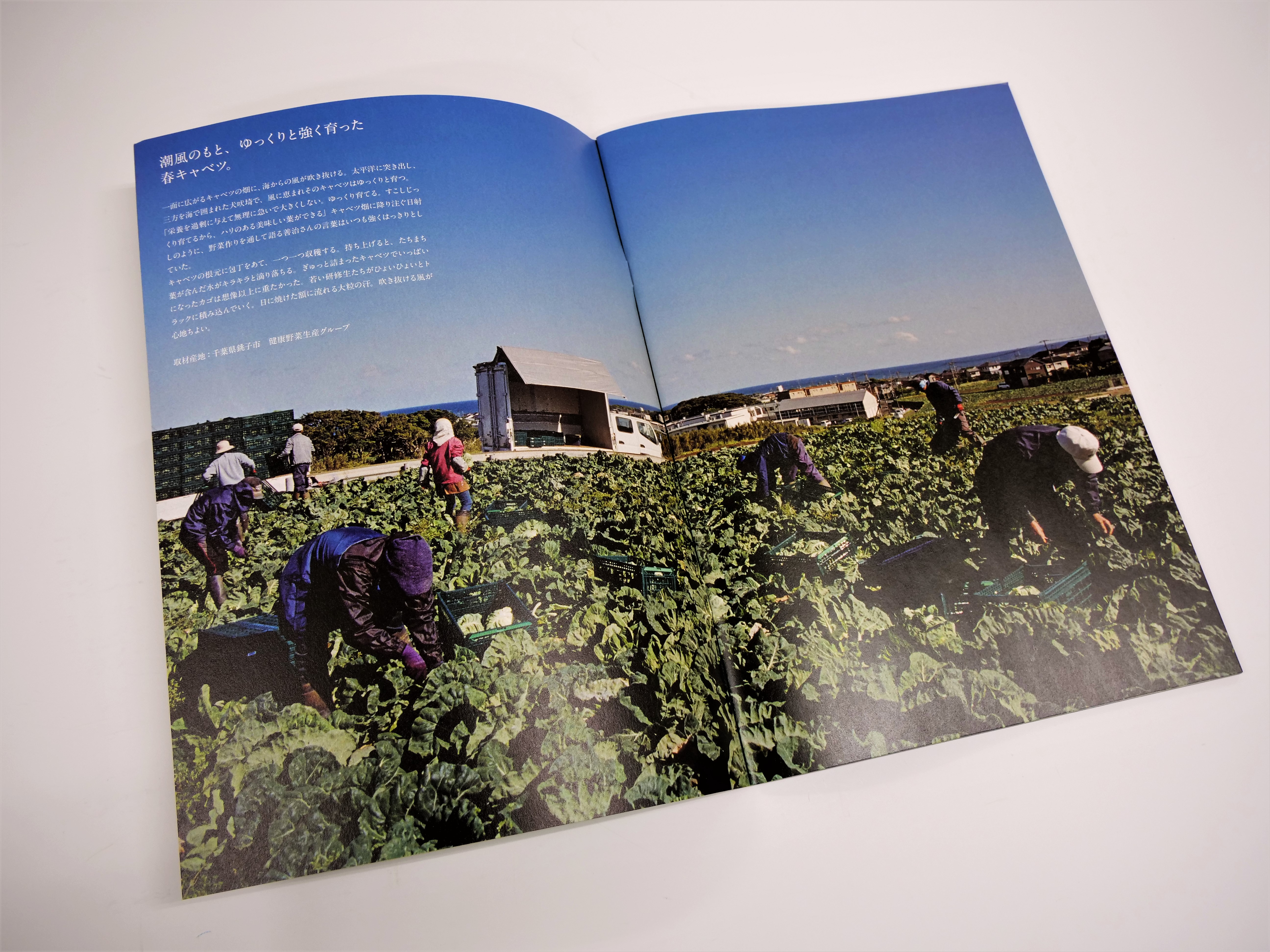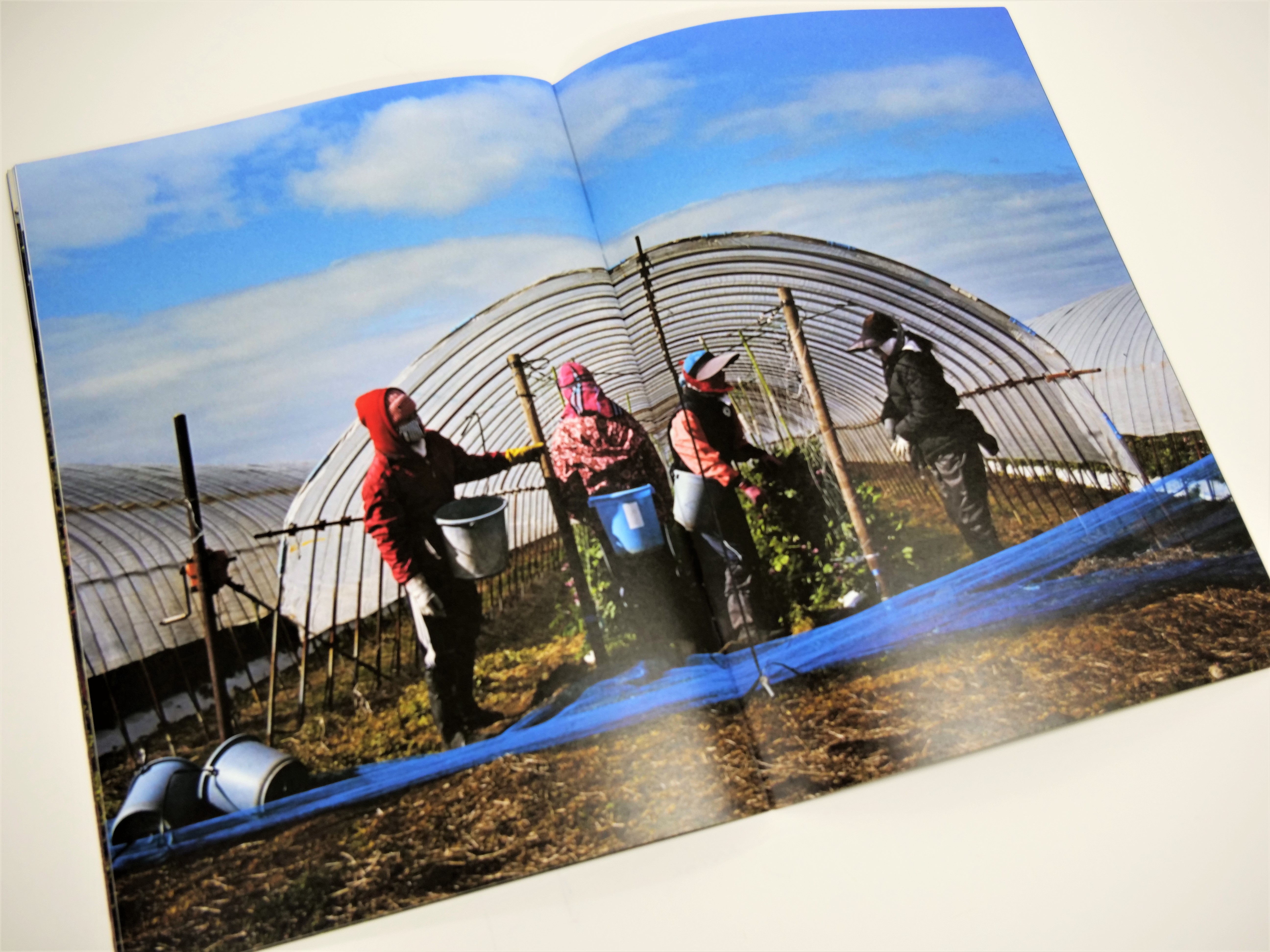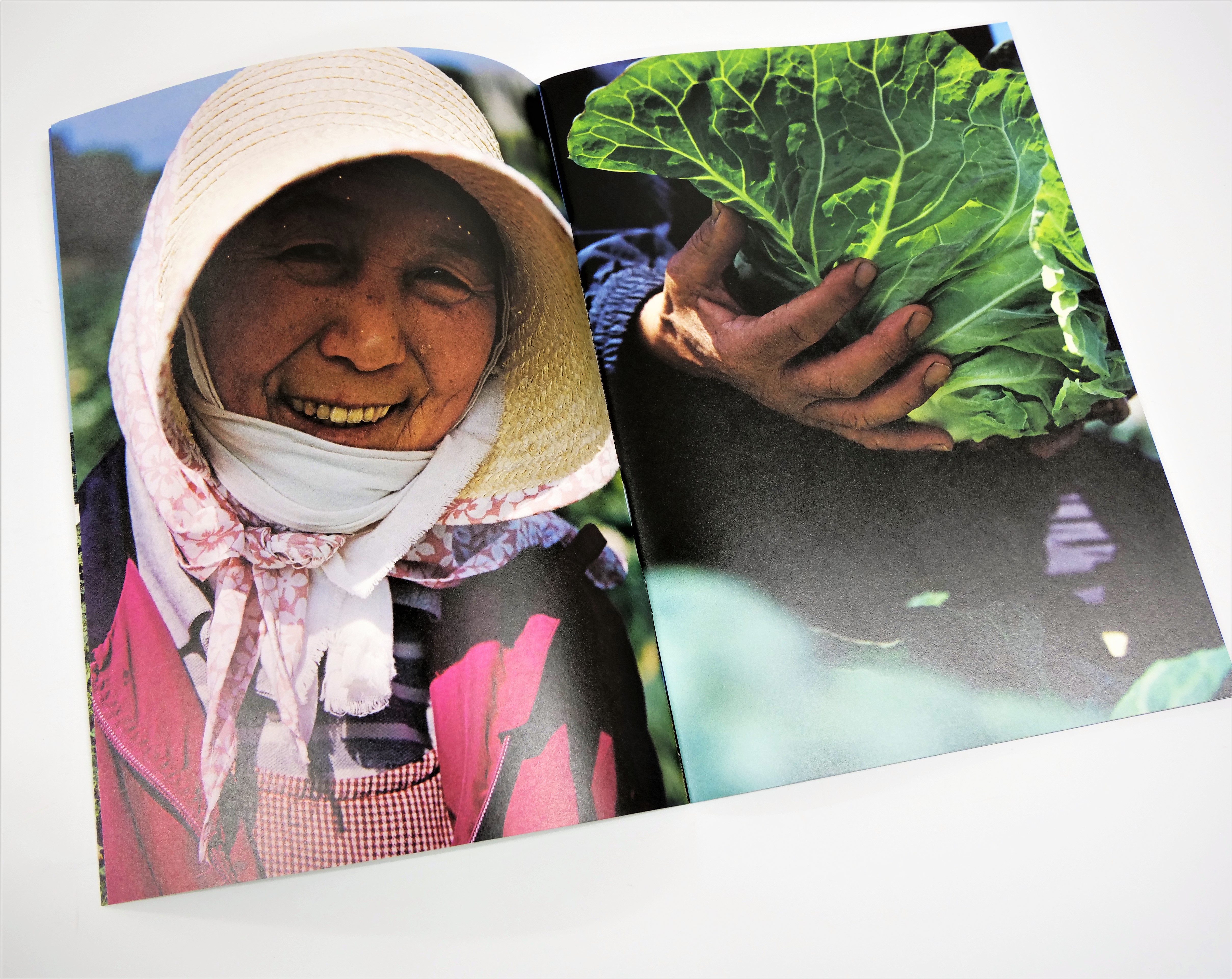 この『育む人』は、農産物の生産者の方と農業の現場を公文さんが取材し、現地の方々とコミュニ―ションを取りながら撮影した、表情豊かなポートレイト、みずみずしく美味しそうな野菜や果物の写真と、そこに添えられた公文さん自身の文章も素晴らしい広報誌です。