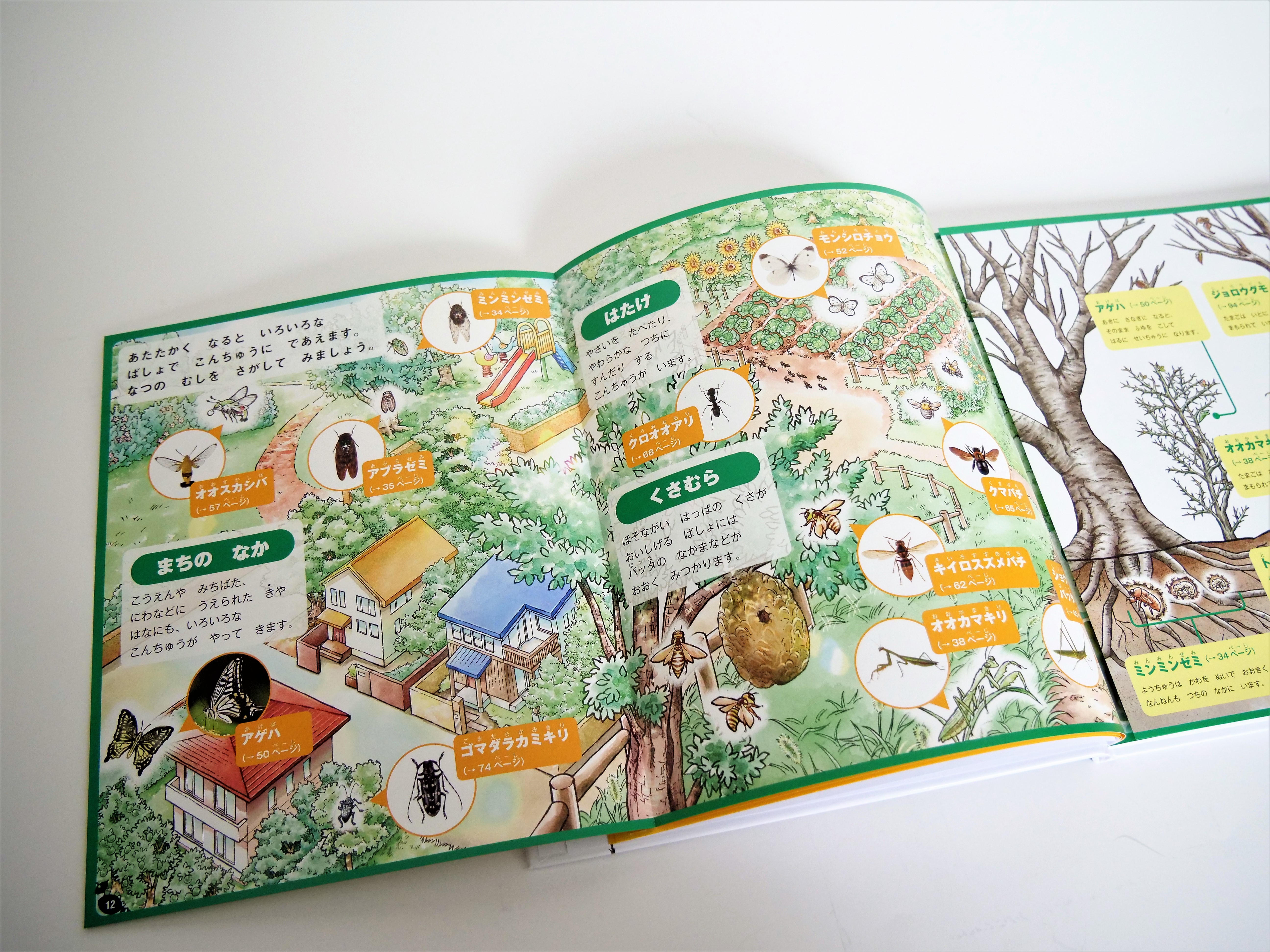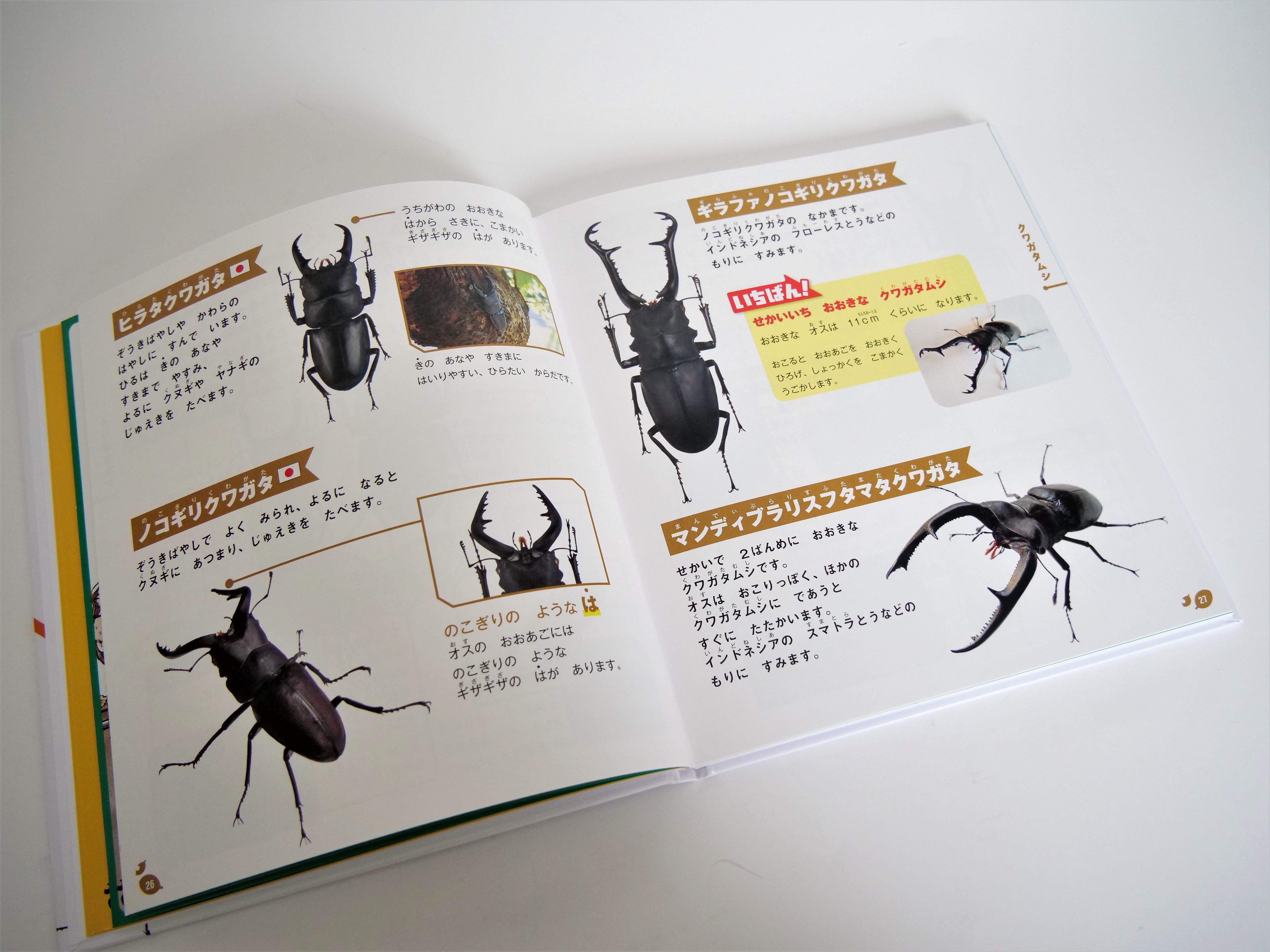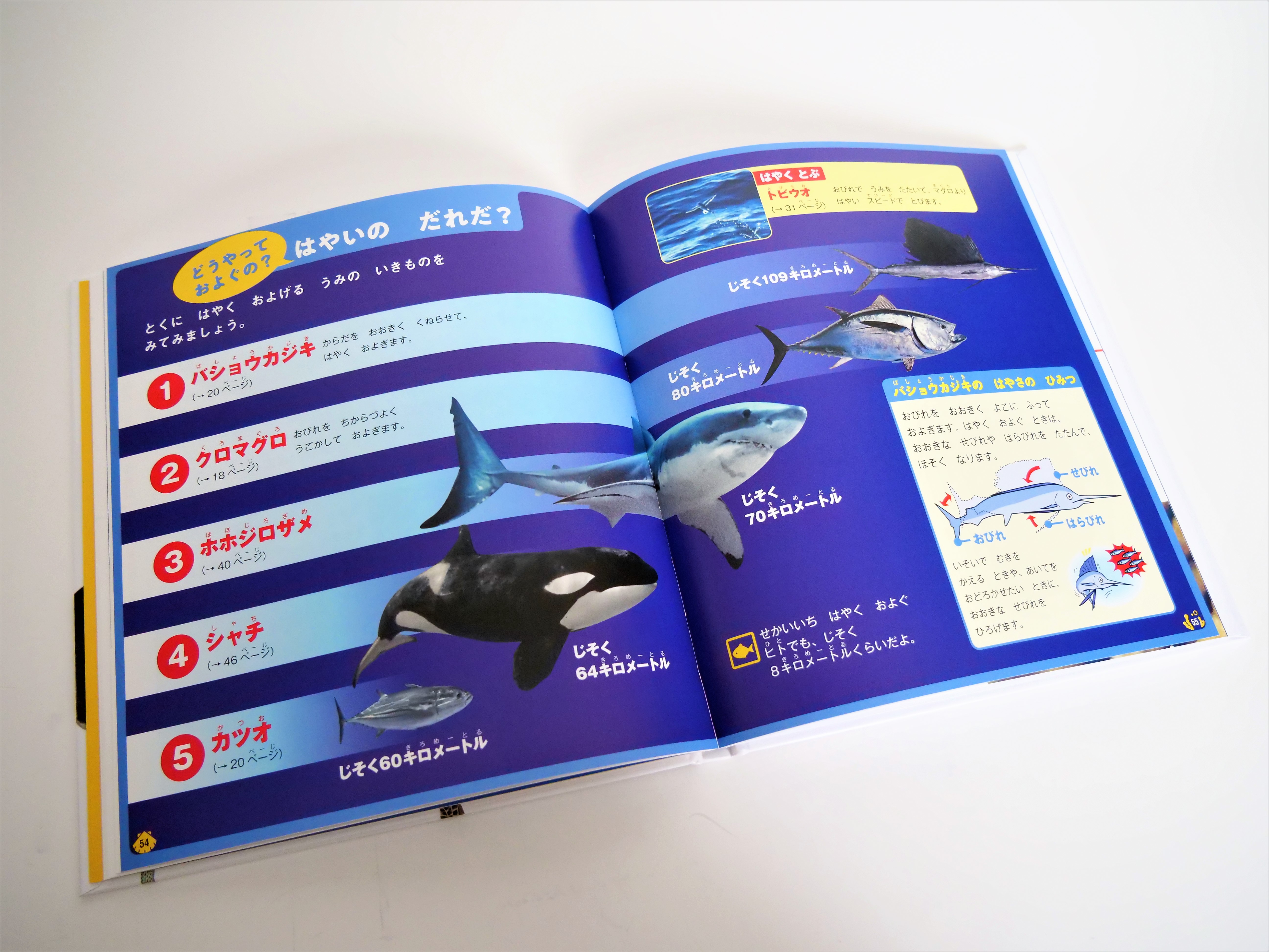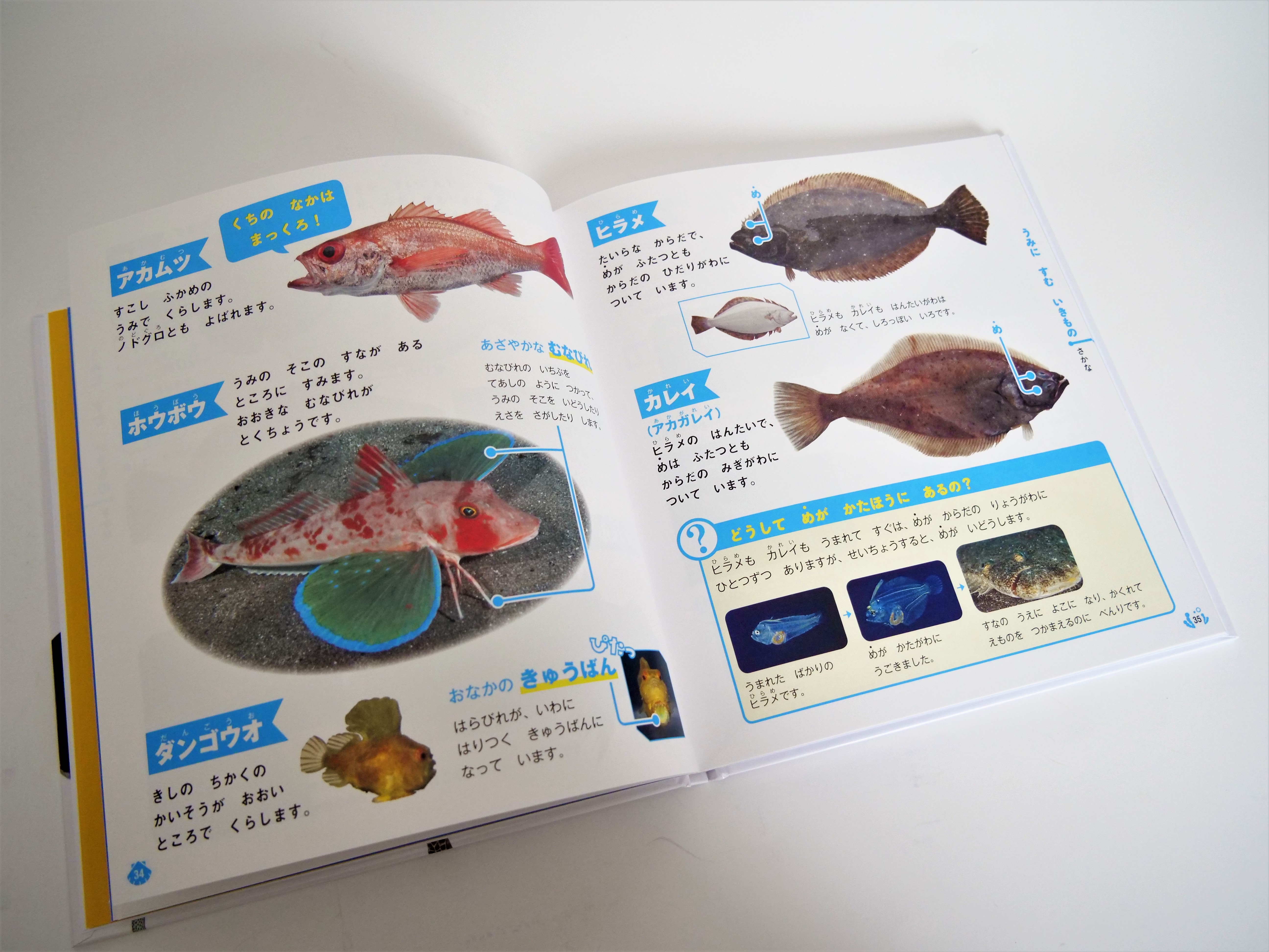 「はじめてのずかん」シリーズは、大きな写真や一目でわかる特徴など、小さなお子さまにとってわかりやすく、本を楽しめるための工夫を施した図鑑です。特に見開きページには、海底にどんな魚がいるか、昆虫がどのような場所にいるかがイラストで紹介されています。