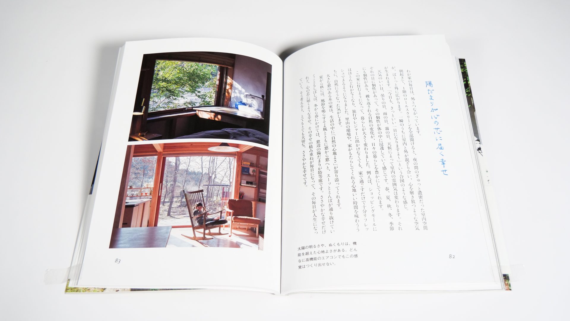 入稿時のRGB画像は、全体的に逆行気味の写真も多く、アンダーに撮影されていました。文章を読みこんで、著者の家作りのこだわりを出来る限り反映させること、光感を大切にして里山の魅力を引き出すことを意識して製版いたしました。具体的には以下の通りです。