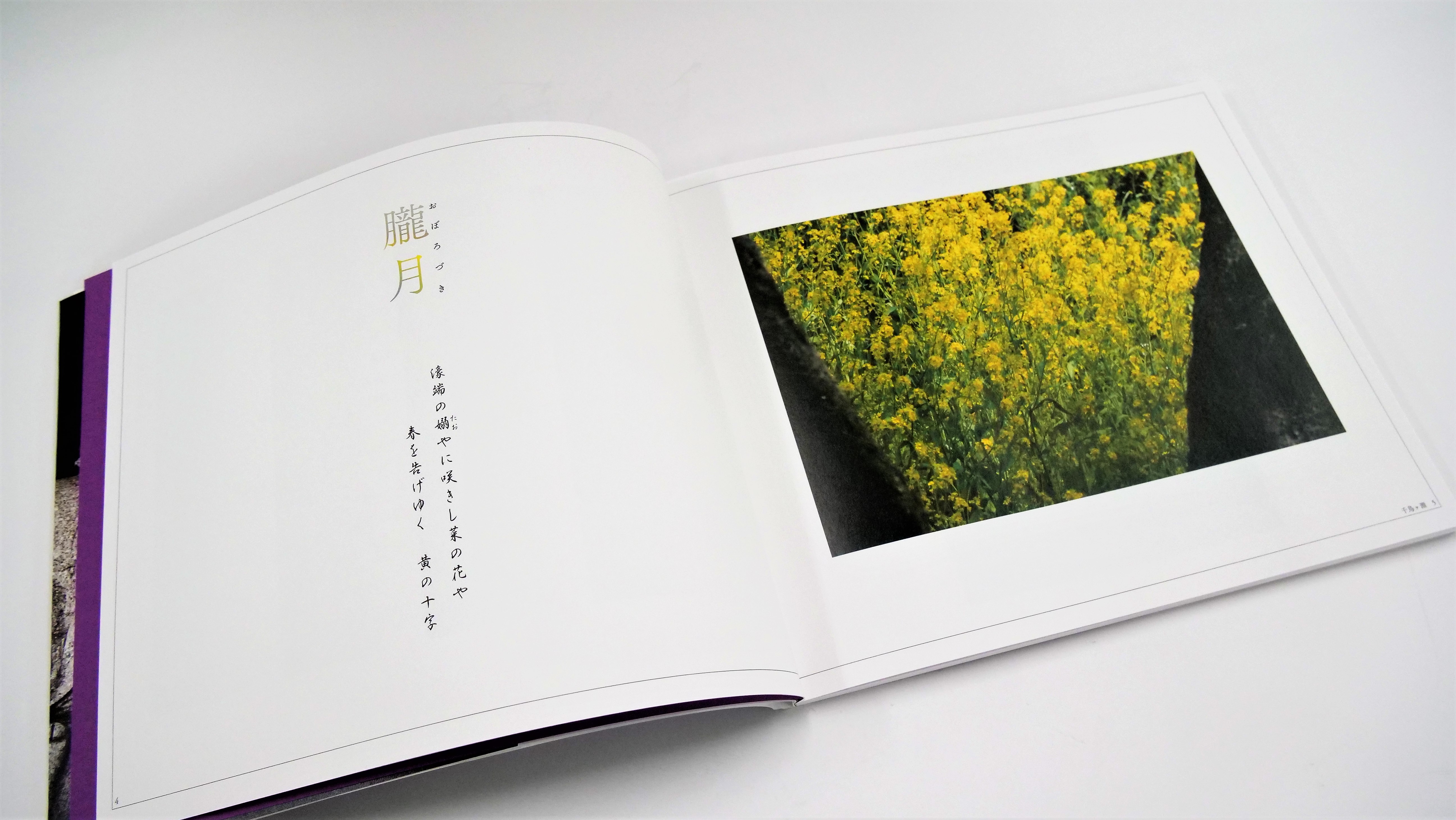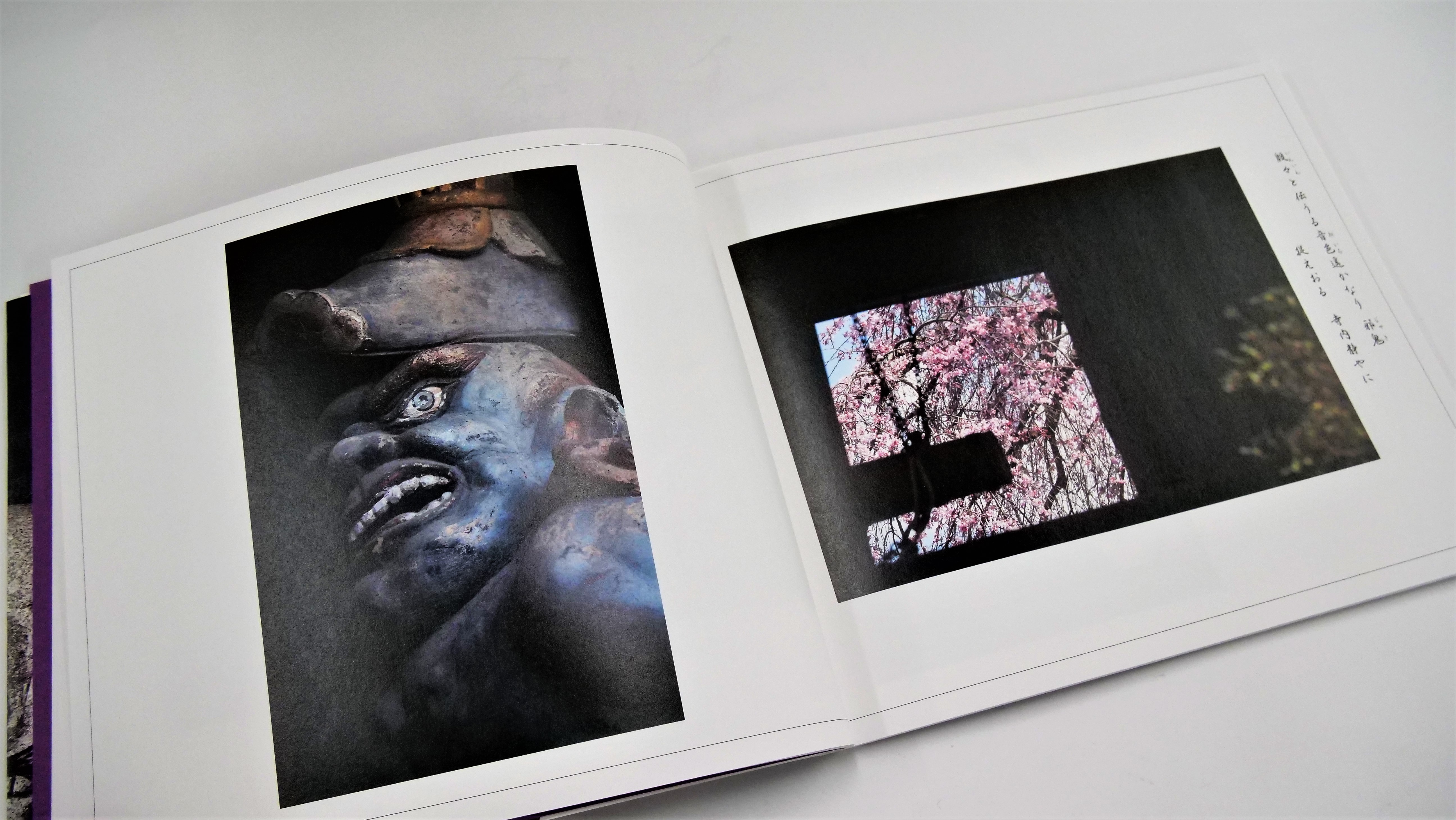 本書は「朧月(おぼろづき)」「鳴神月(なるかみづき)」「紅染月(べにぞめづき)」「寒月(かんげつ)」の4章で構成されており、四季折々の花や草木、神社仏閣の風景、仏像や地蔵などの写真が収録されています。幼いころより神社が身近な存在であったという平川氏の写真と短歌からは、静かで穏やかな佇まいを感じます。