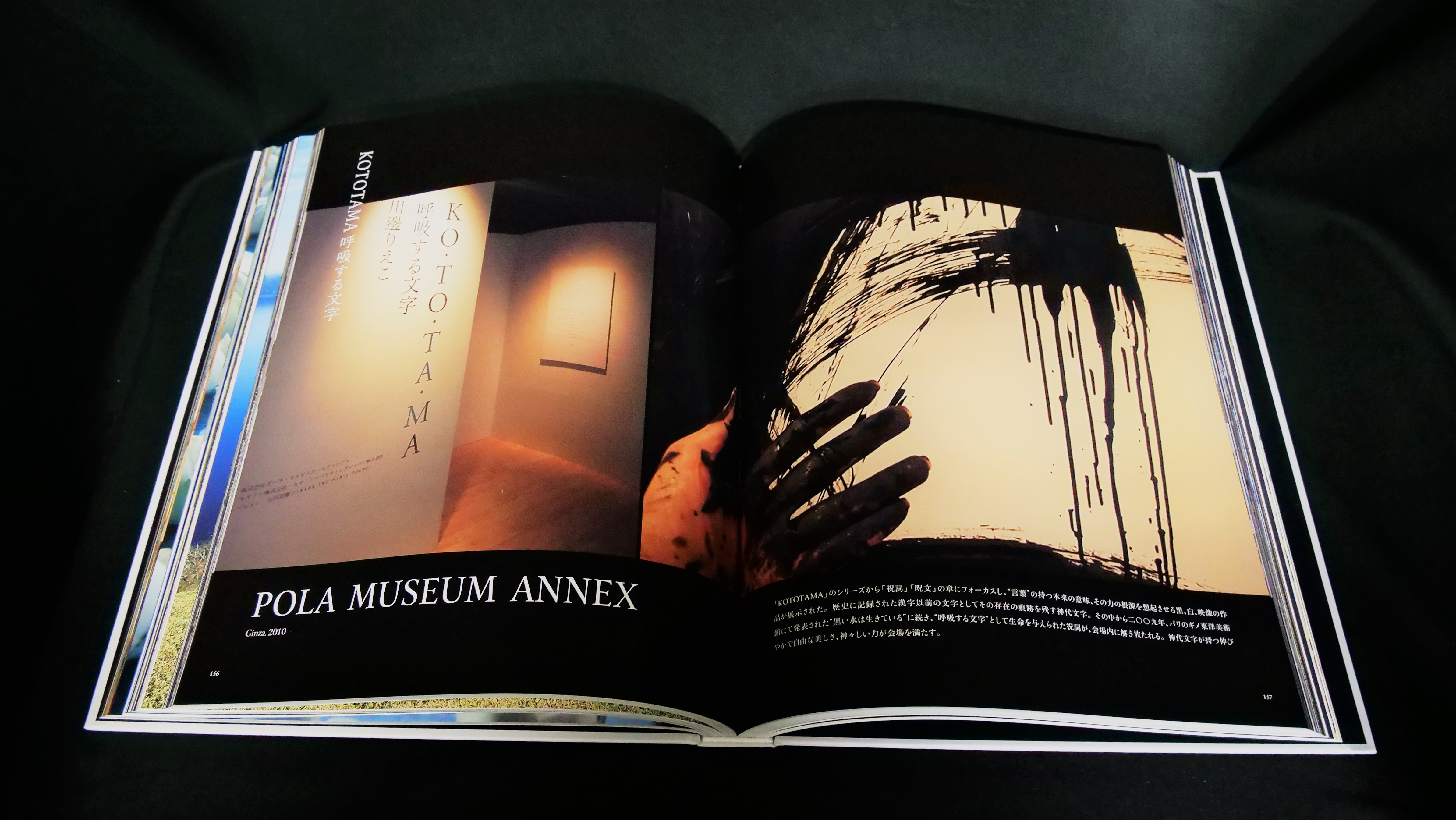 川邊氏ご自身の「本の存在が展覧会のようです」とのお言葉の通り、ページをめくるごとに美しい空間作品や書が表出し、「見えないもの」が総体として我々に「見えるもの」たらしめています