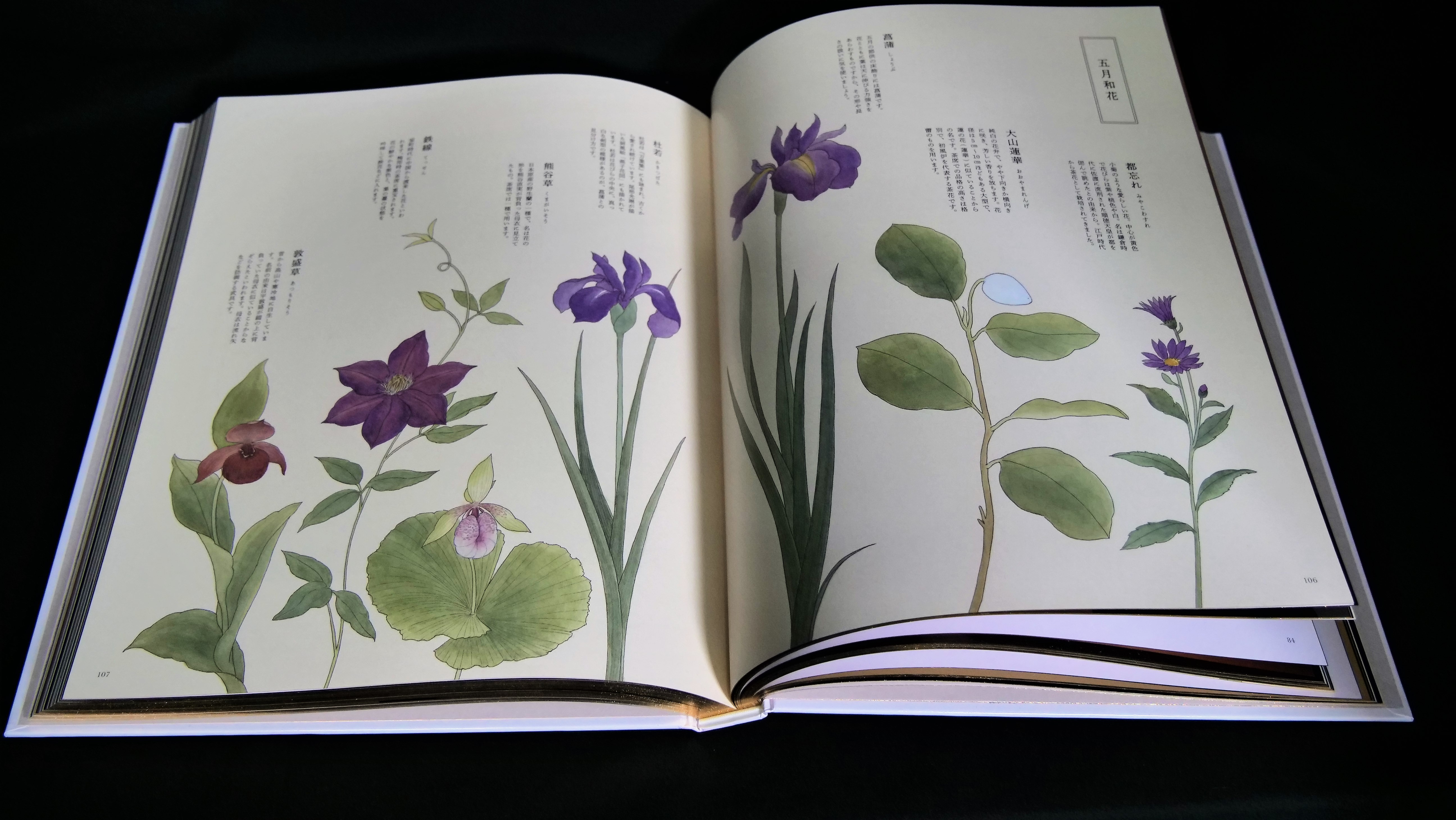 各月ごとに「和名の起源」「暦」「二十四節気」「七十二候」「節供」「行事」を掲載し、「茶趣」「懐石」「菓子」「花」「文様」とその月を理解し楽しめるキーワードによって示されています。また川邊氏ご本人による毎月の室礼を、季節の移ろいを楽しむための参考になるよう2年がかりで撮影、紹介されています。
