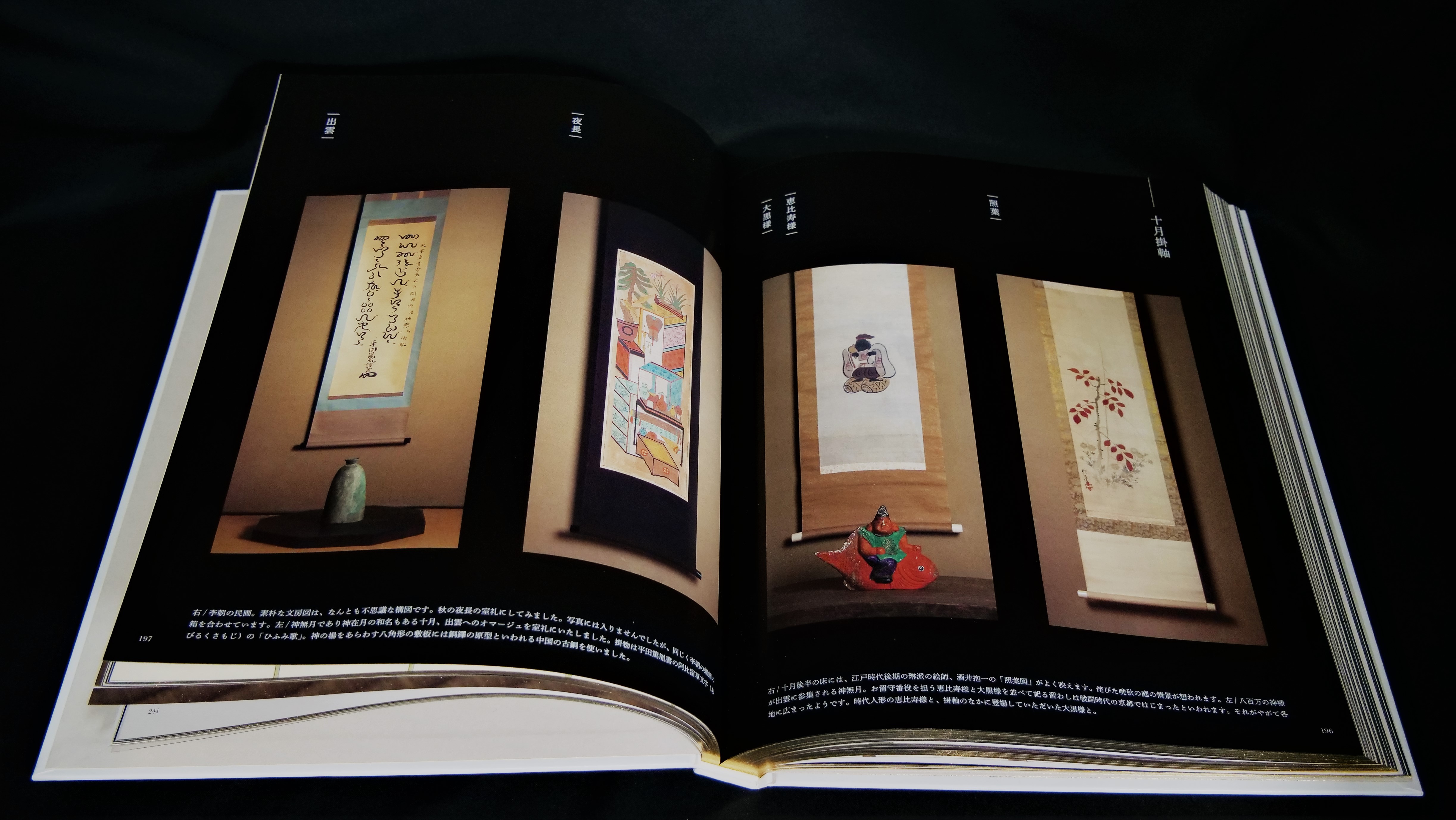 さらに、一年を通じて用いることのできる「ときしらず」の「掛軸」や着物も学ぶことができます。日本文化の総合性をあらわす、茶の湯を知らなくても理解できるように川邊氏の目線で構成され、全編にわたって洗練され、情趣あふれる美しい写真は写真集としても見どころがあります。日本的空間を訪れる折々に開いていただく座右の本を目指したとのお言葉通り、ページをめくるだけでも充実したひとときが過ごせます。