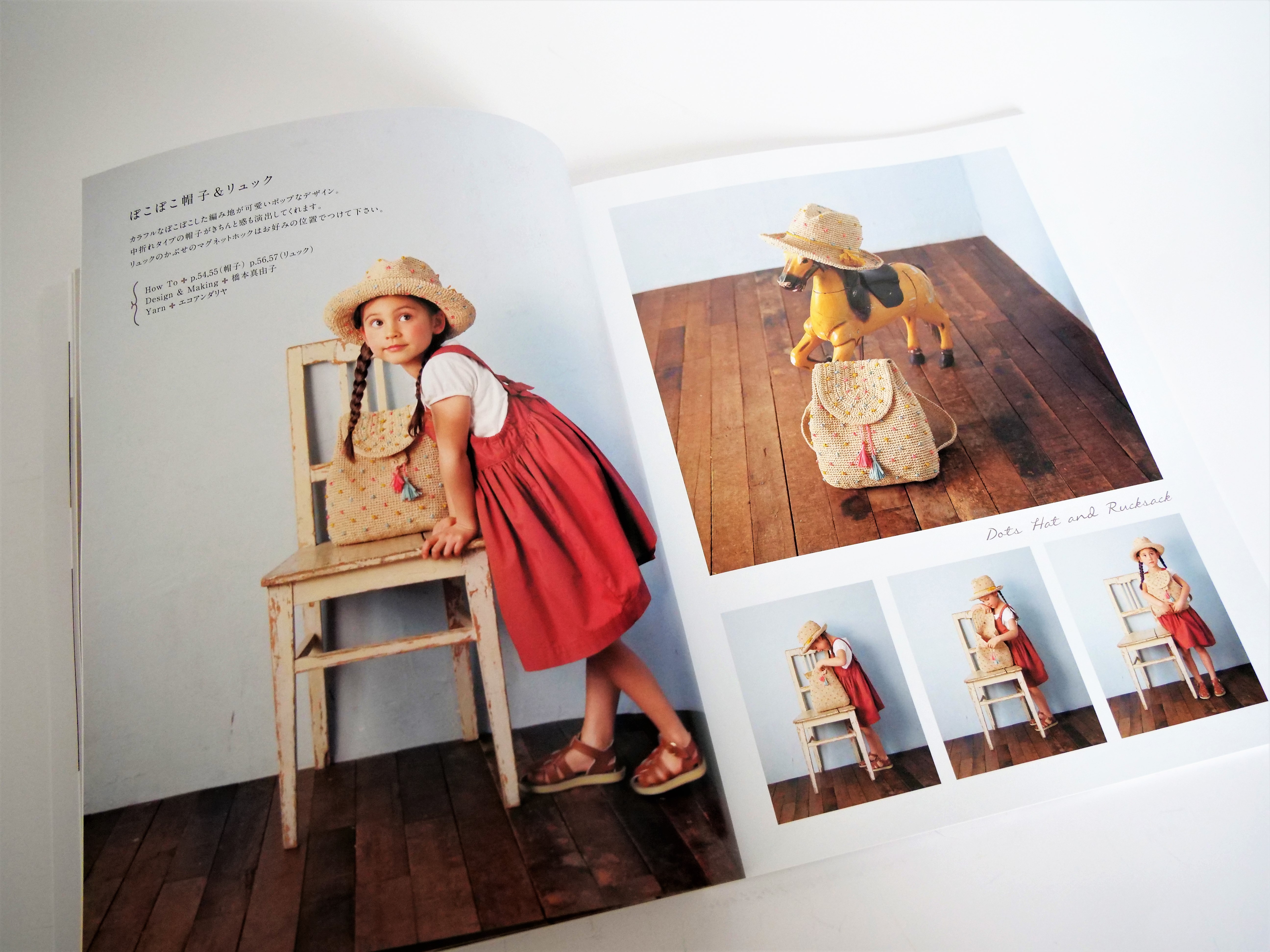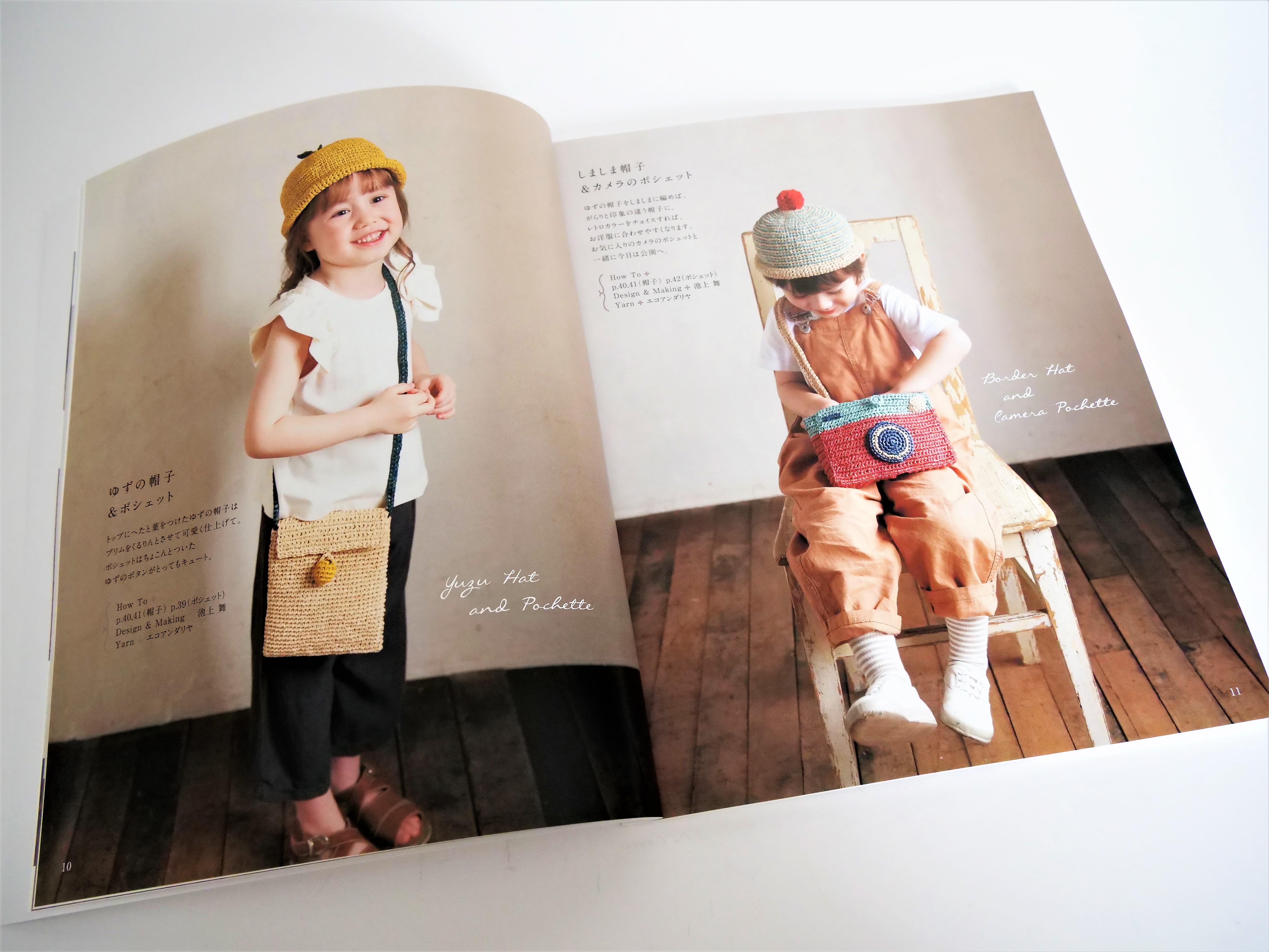 お洒落に目覚めた子供たち(3~6歳)に向けた帽子とバッグの作品集。糸の色や編み地、デザインポイントを帽子とバッグで共通にして、セットコーデで楽しめるように展開。