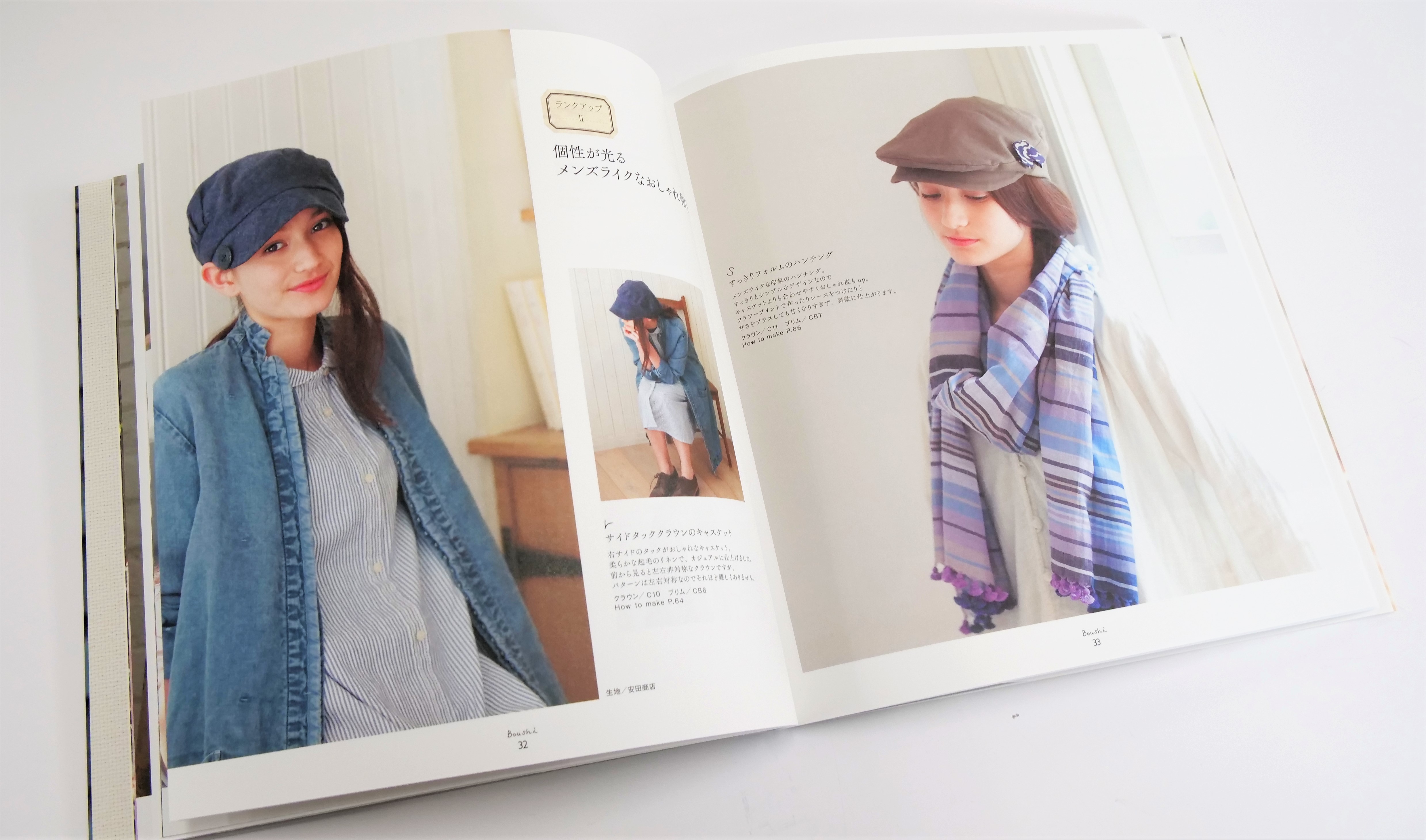 形はクロシェ・キャスケット・ベレー・ハンチングなど、テイストはエレガントからカジュアルまでバリエーションも豊富に紹介。また、サイズの測り方、帽子と顔のバランスの話、形・色・素材の選び方など、帽子作りに役立つ著者からのアドバイスもあります。縫い代入り実物大型紙1枚つき。