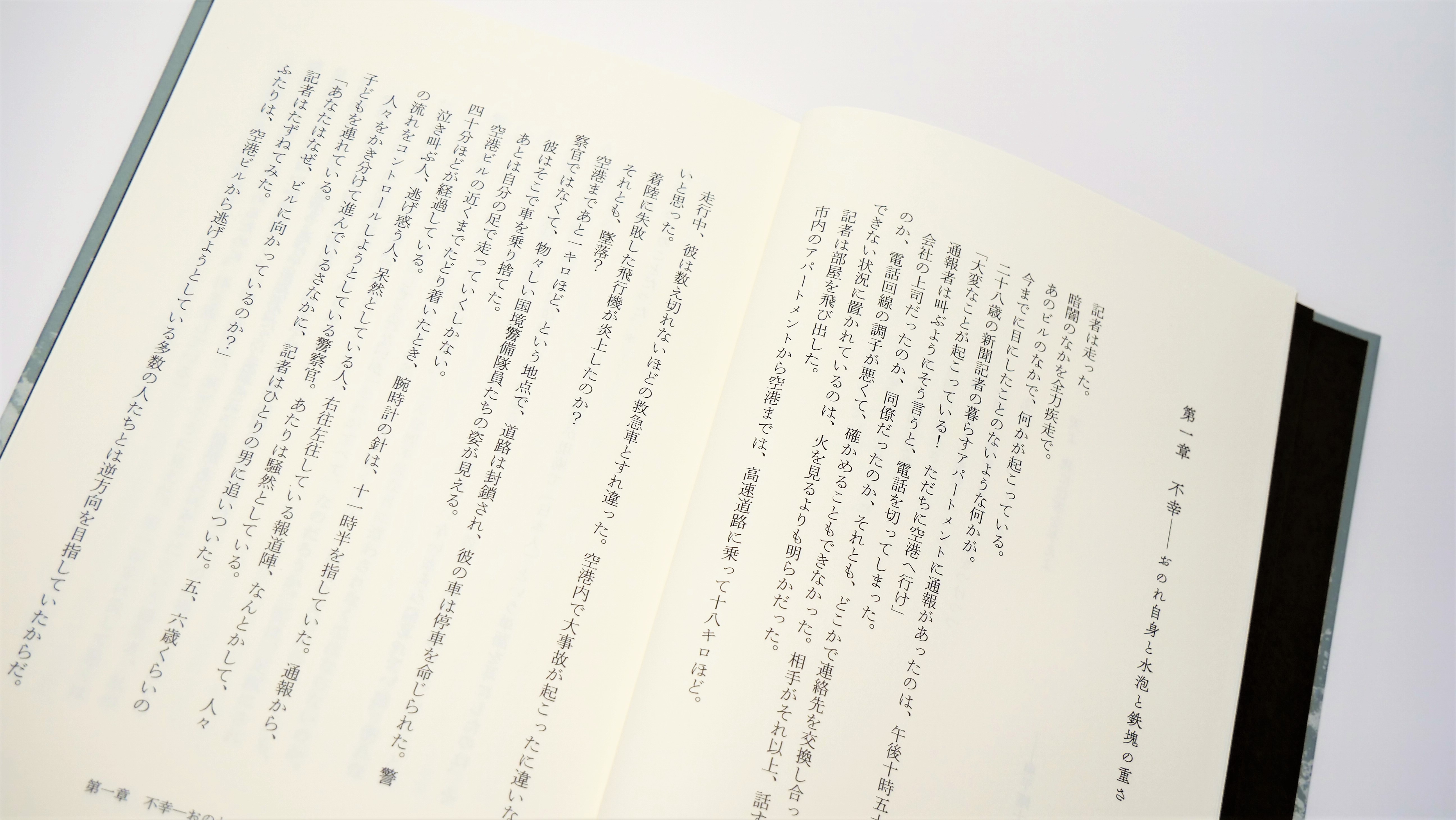 製版・印刷:スミ、特色1C(特グレー)、特色1C(特青)+スミ、プロセス4C、帯、表紙はマットニス、カバーはマットPP加工