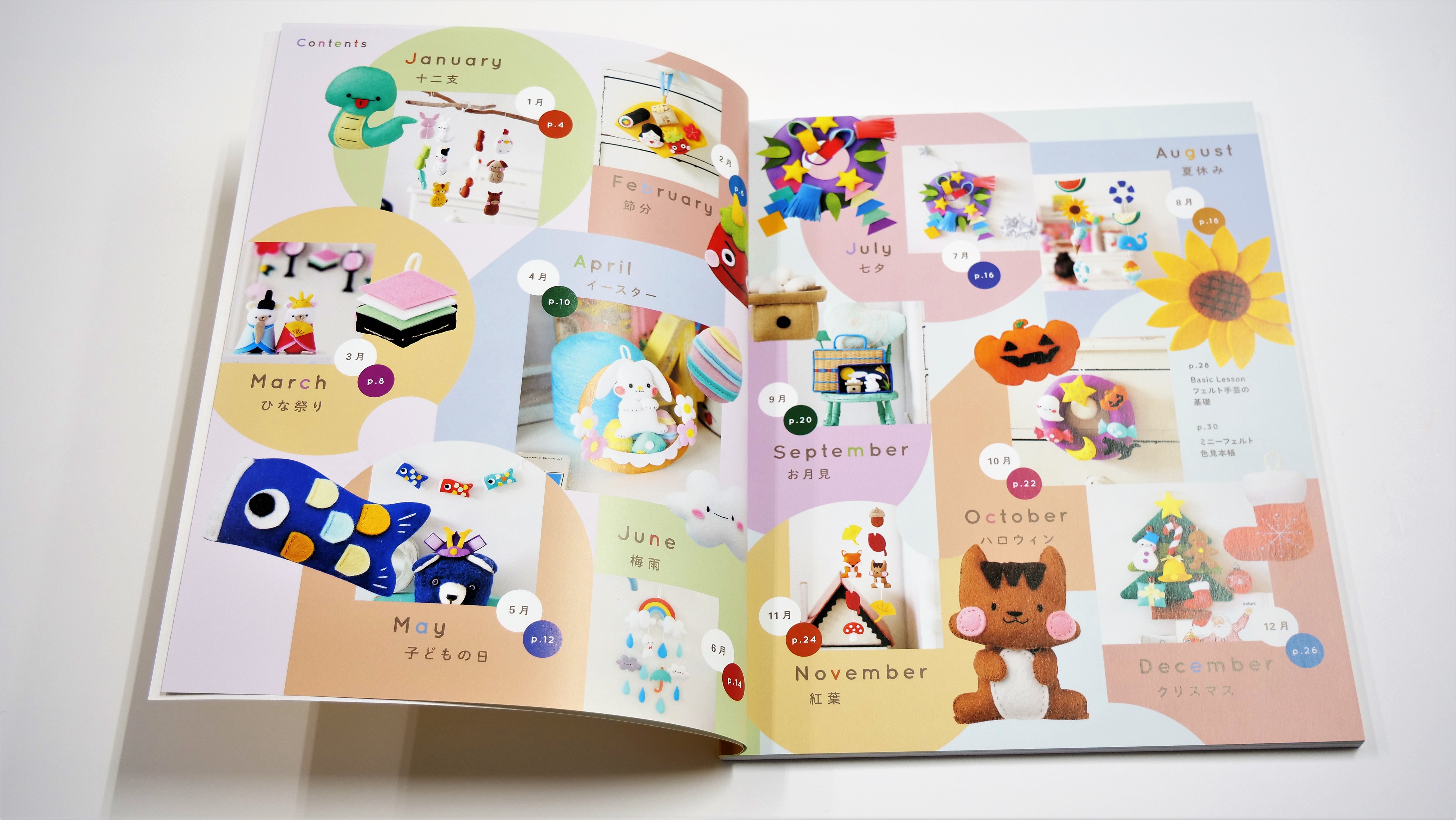今回ご紹介するのは、大人気のフェルトトイ作家minimofuu toy(ミニモフ トイ)さん著『minimofuu toyのフェルトで作る、12ヶ月の飾り』です。