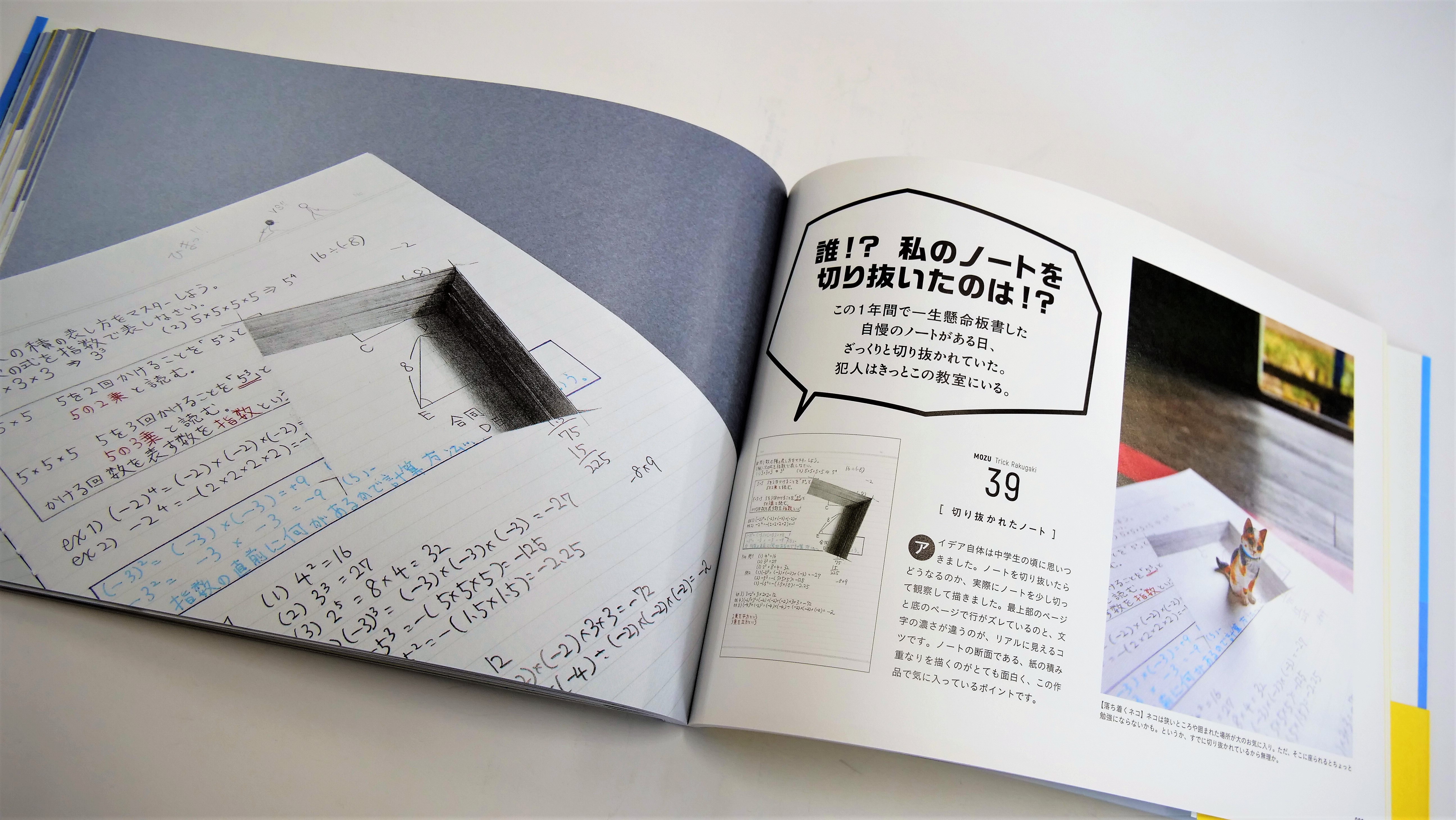 今回はTwitterで“26万いいね”の支持を集めた、MOZUさんのだまし絵作品集「MOZU トリックラクガキアート集」をご紹介いたします。超絶精密なジオラマ作品や、コマ撮りアニメーションでテレビやツイッター、新聞、雑誌などで注目を浴び続けているMOZUさんの著書第二弾。