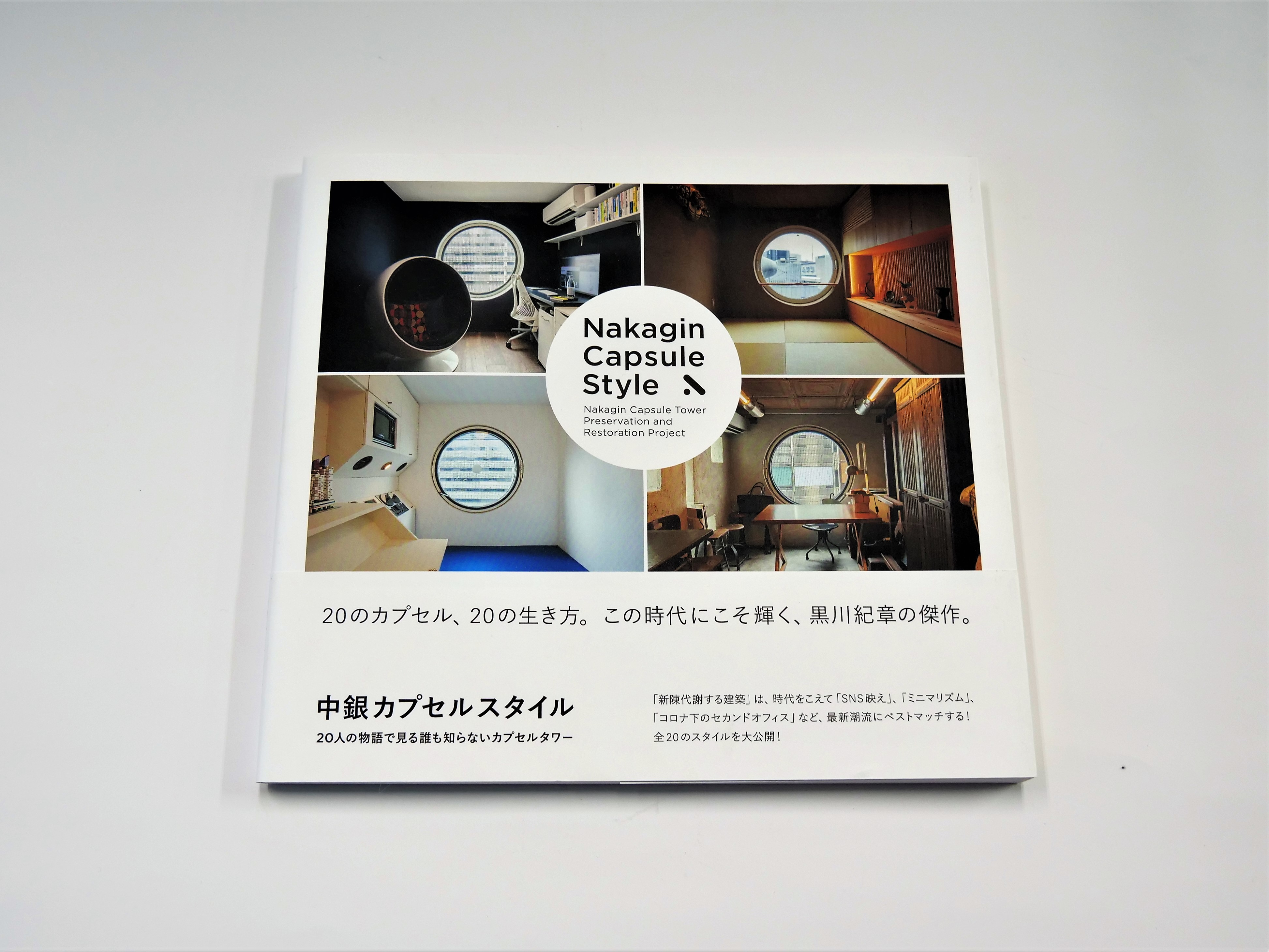 「中銀カプセルスタイル 20人の物語で見る誰も知らないカプセルタワー」はこれから遡ることおよそ2年前に出版された書籍。解体が迫りつつも、設計当時には想定されていなかった円窓の「動画映え」やコロナ下でのセカンドオフィス、DIYなど、最新潮流にこそカプセルの思想が生かされており、カプセルタワーのコンセプトの驚異の先見性が、新時代の生活で開花したさまを、 美麗写真で20部屋紹介。その住人のライフスタイルも垣間見ることのできる貴重な1冊です。