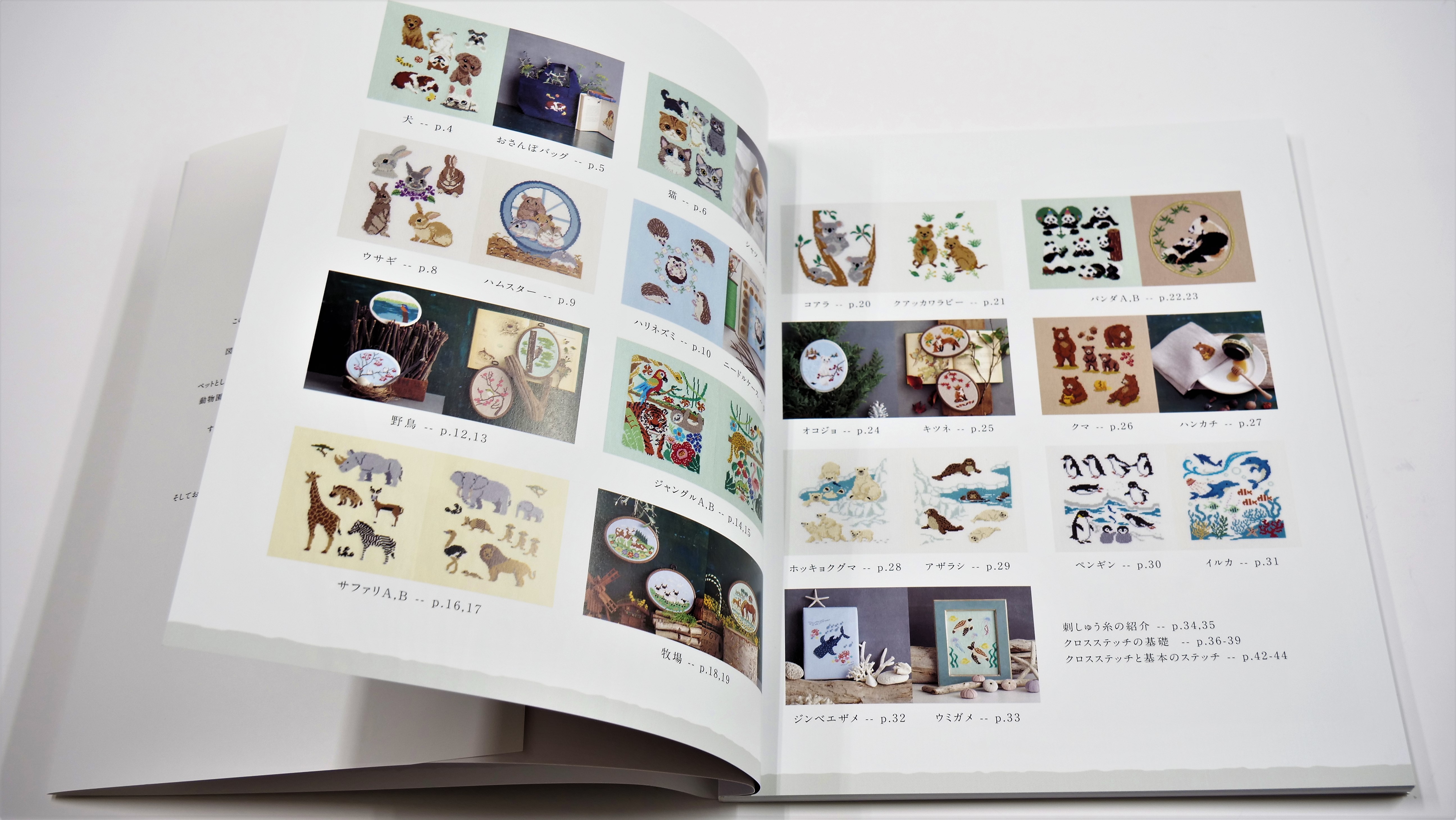 自然と動物をテーマにしたクロスステッチの図案集。作品は、ワンポイントとして使えるものから、額装して飾れるものなど、幅広い用途で使える仕様で紹介されています。