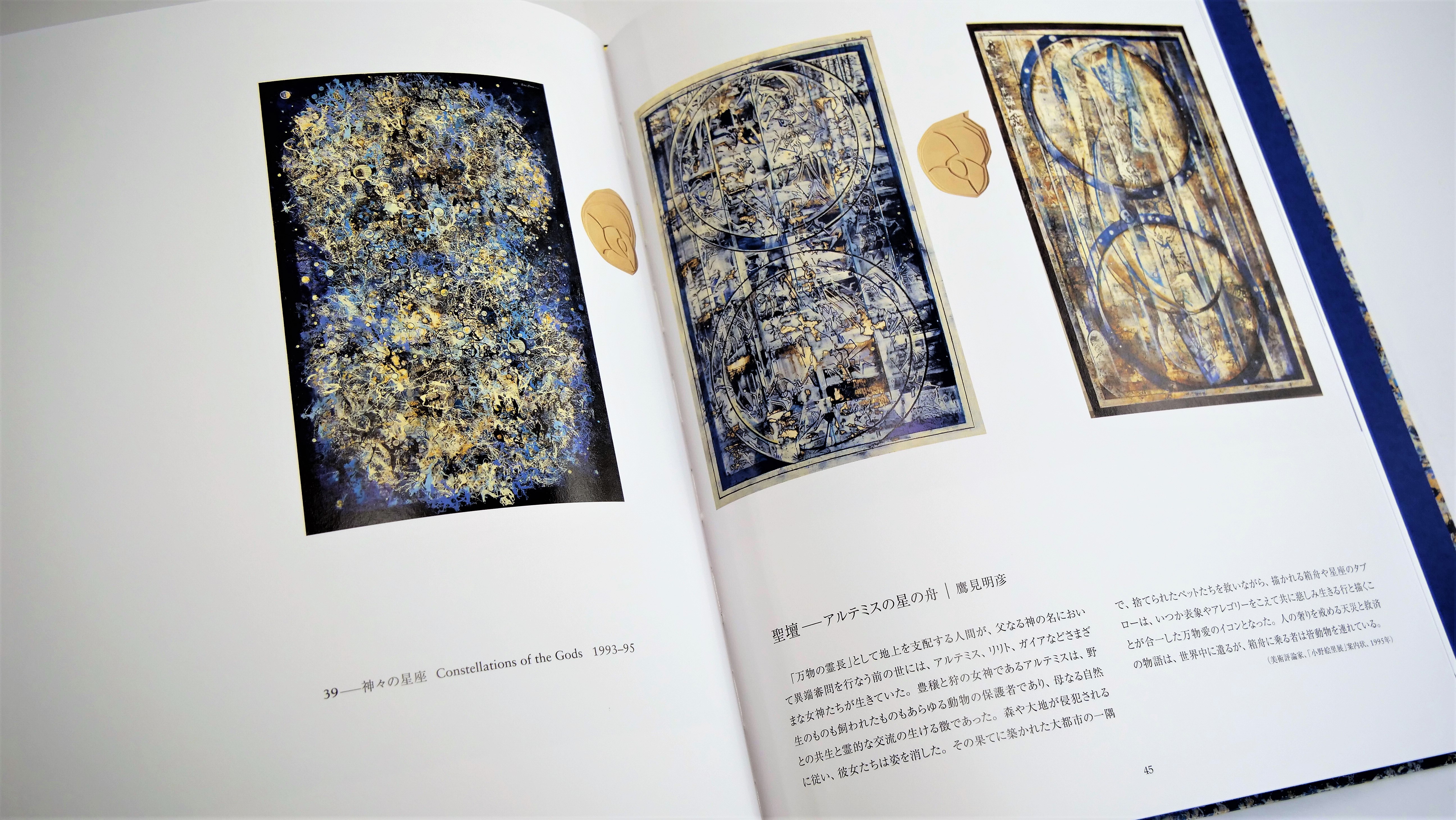 私は祈る。傲り昂った人間の犠牲となった自然や動物達へ、又湾岸の罪なき子供達へ、レクイエムの意を込めて《音楽の星》を描き、再生の願いを込めて《渦巻きの星》を描く。私は想う。森羅万象の奏でる宇宙図を、救済の「箱舟」を、生命あるものすべてが内包された「至聖所」を。