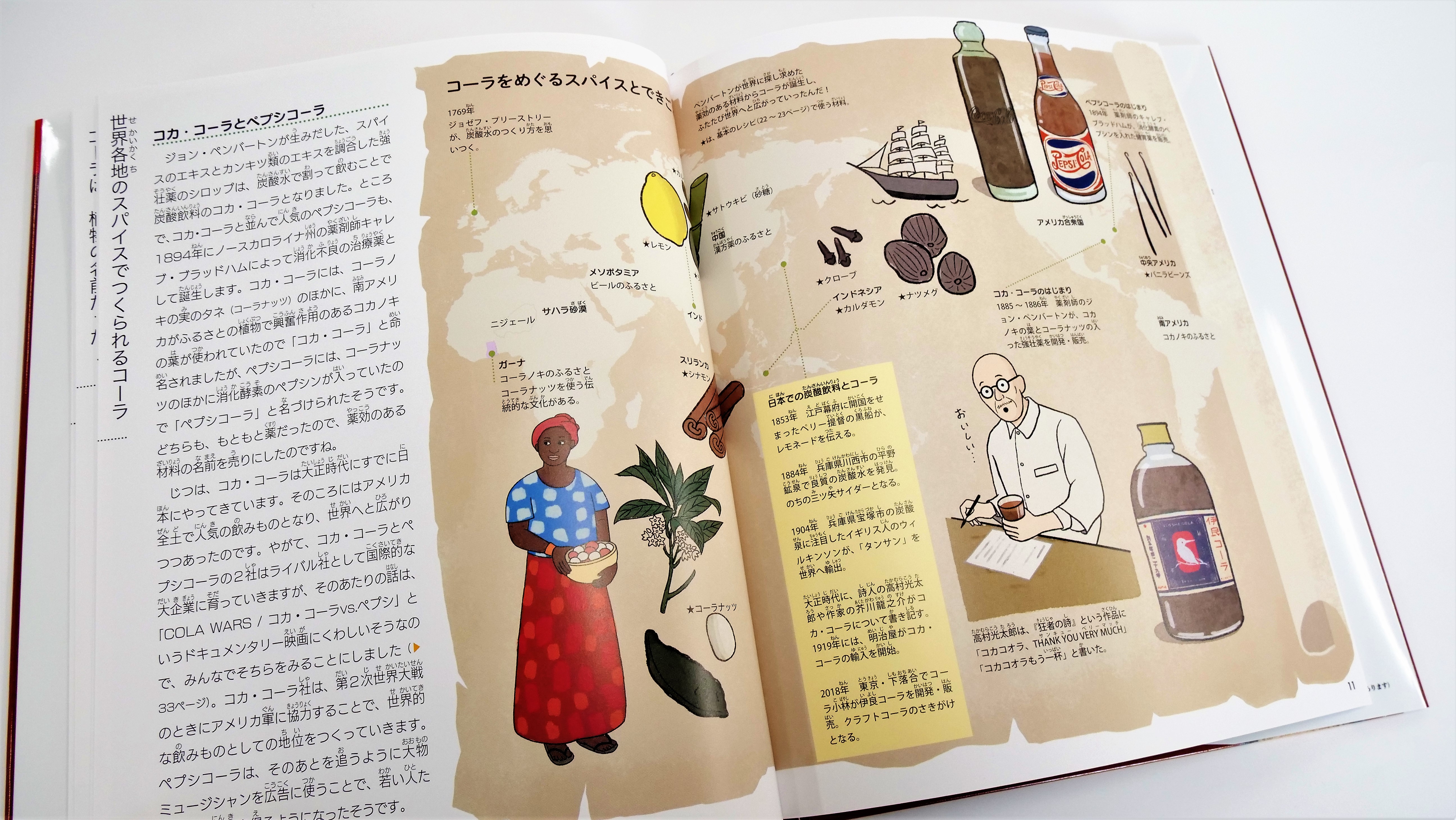 コーラをつくることで、炭酸水の誕生から、禁酒法や第二次世界大戦などに関わるアメリカの歴史、スパイスの原産地なども知ることに。日本各地で広がるクラフトコーラの動きも紹介します。