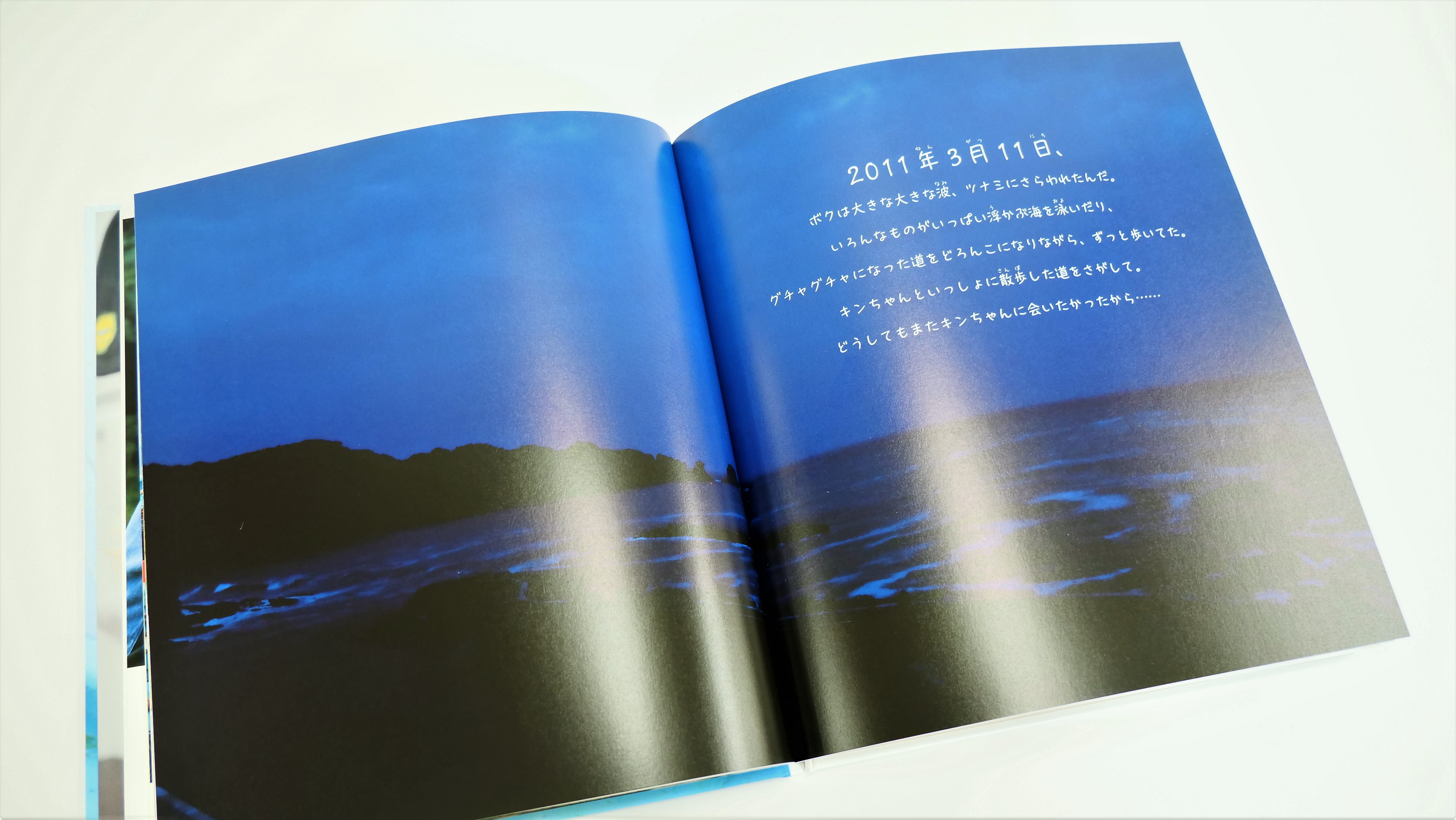家族のようにそばにいるのが当たり前と思っている愛犬との別れも、いつか必ずやってきます。津波で漂流しても、大好きなキンちゃんに会いたい一心で帰ってきたタロウのような犬にとって、キンちゃんのそばを離れるのはきっと辛かったでしょうが、「楽しかったなぁ。きっとまた会えるよね。キンちゃん、ありがとう。大好きだよ。」と明るく別れを告げています。タロウとキンちゃんの心の絆が、私たちの心にもぽっと灯りをともすような写真絵本です。ぜひご覧ください。