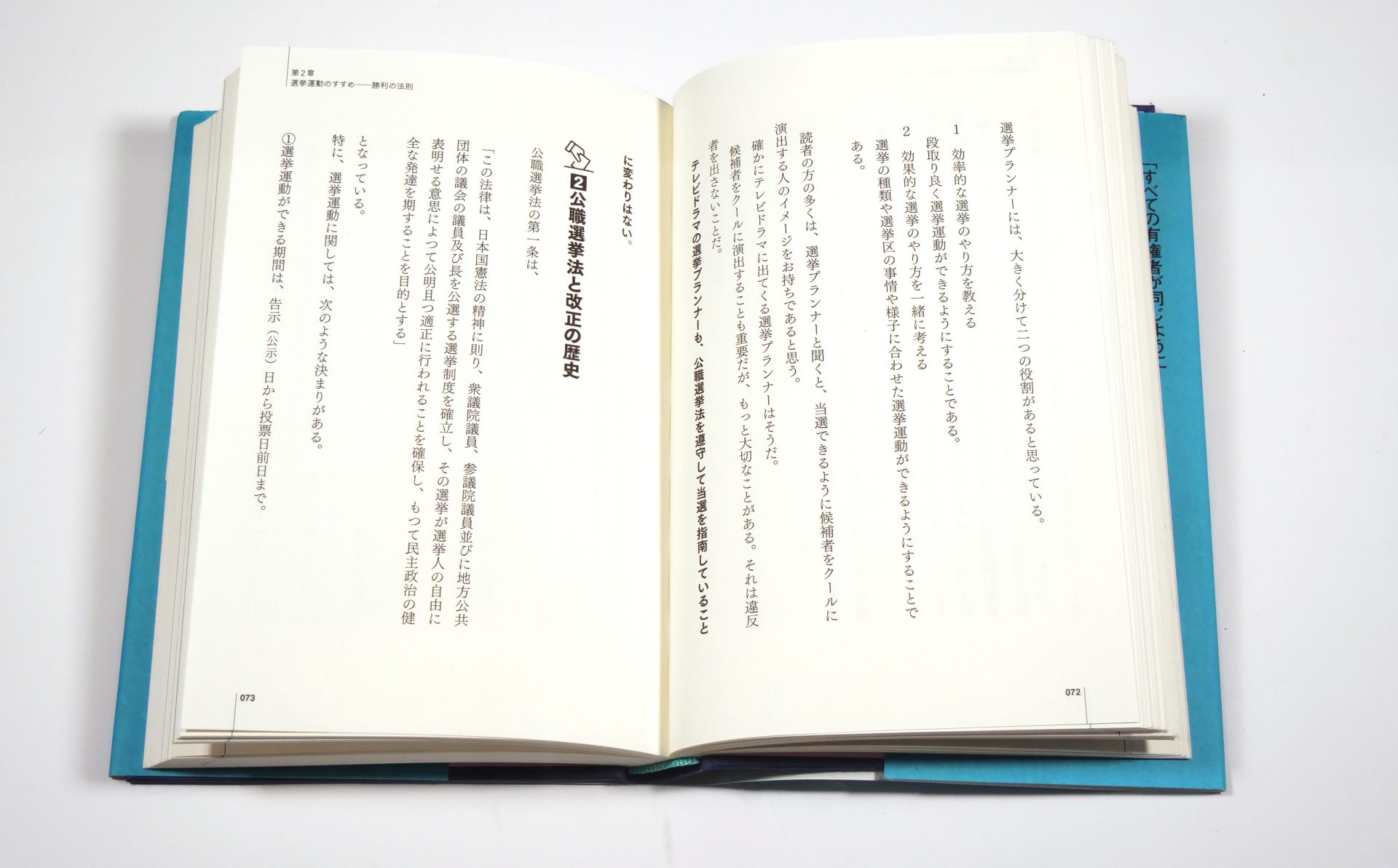 本書は選挙学入門とある通り、選挙の最初から終わりまでをイラスト付きでわかりやすく説明しており、選挙プランナーとしての視点で選挙術等も紹介しております。