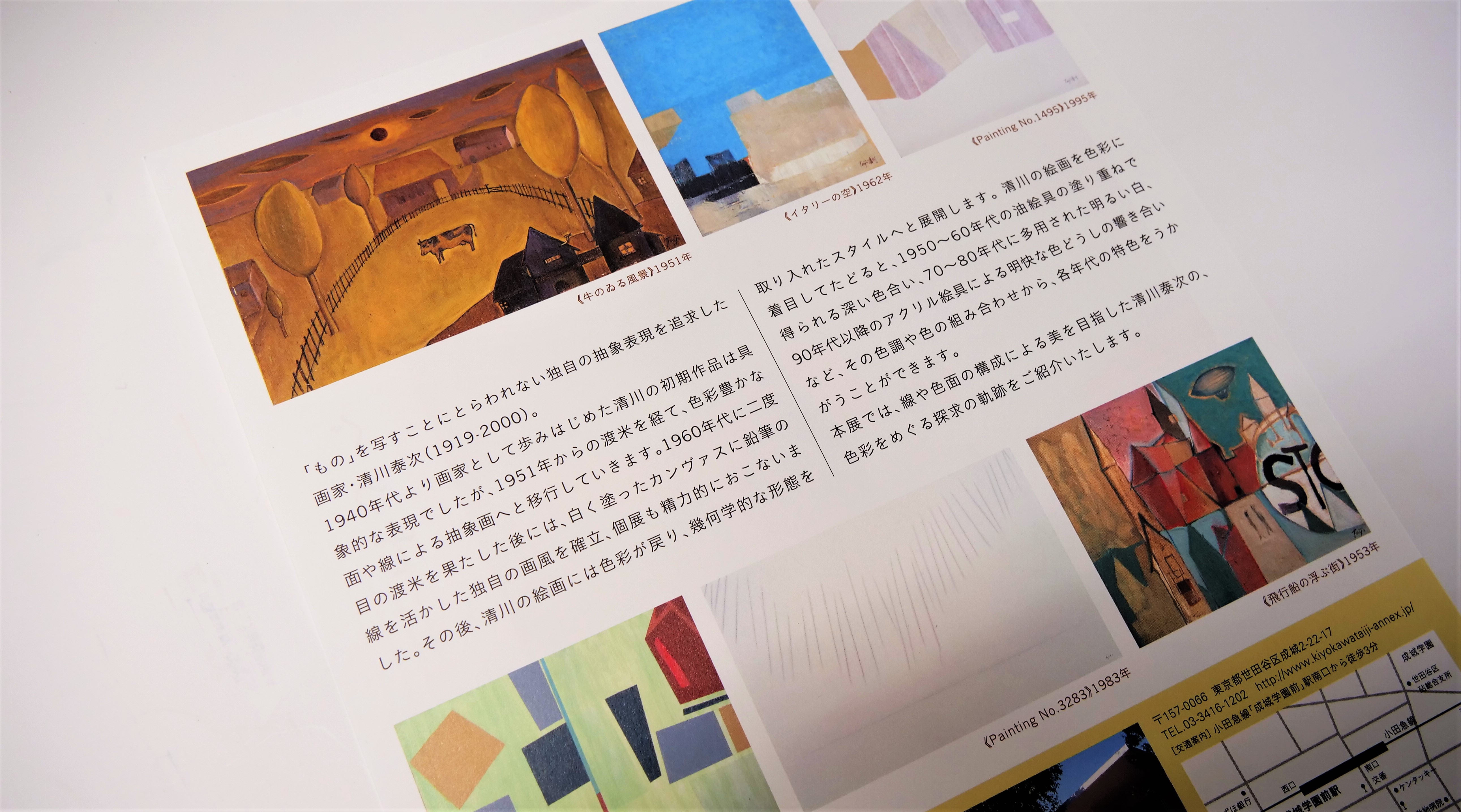 世田谷美術館分館 宮本三郎記念美術館・向井潤吉アトリエ館・清川泰次記念ギャラリーのフライヤーの制作のお手伝いをさせていただきました。