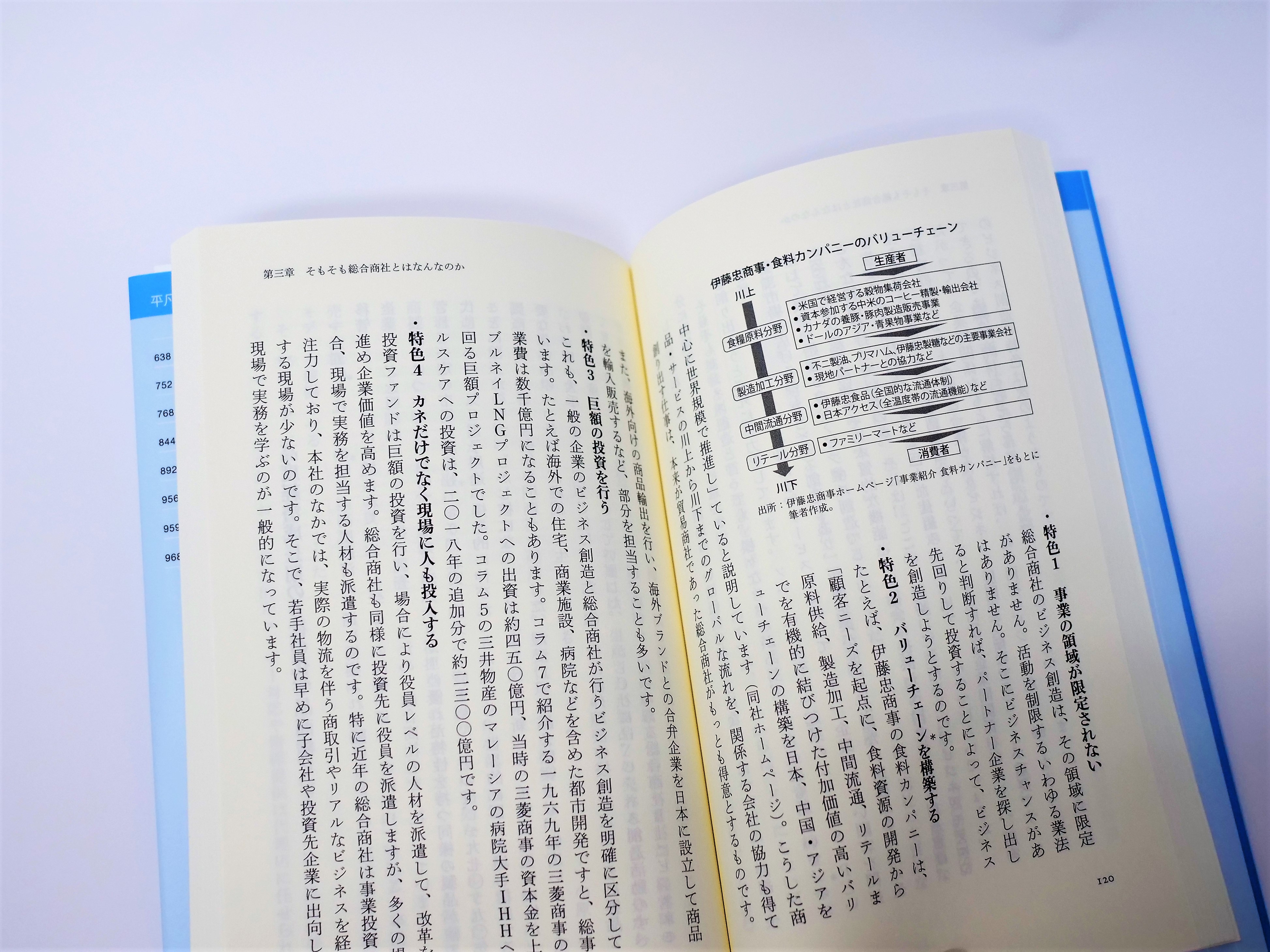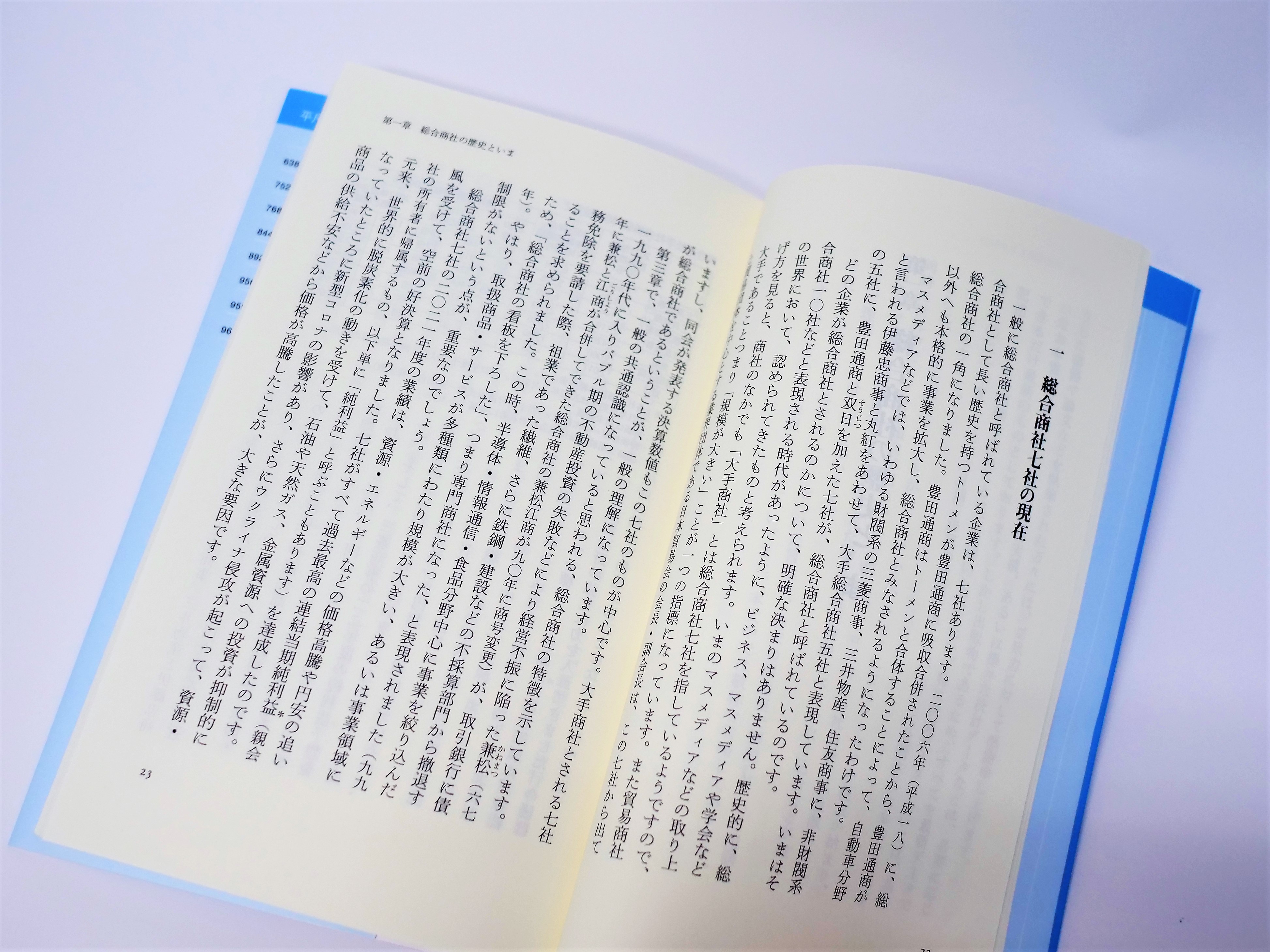第一章と第二章は、総合商社についての説明の総論。第三章では総合商社の実態についての解説、定義。第四章は最先端マーケティング理論を理解してもらうために、前提となる経済のサービス化の説明。第五章では停滞する日本経済の現状について解説。終章では、まとめとして、今後の総合商社の姿を描き、若者たちに目指す場としてほしいと示されています。