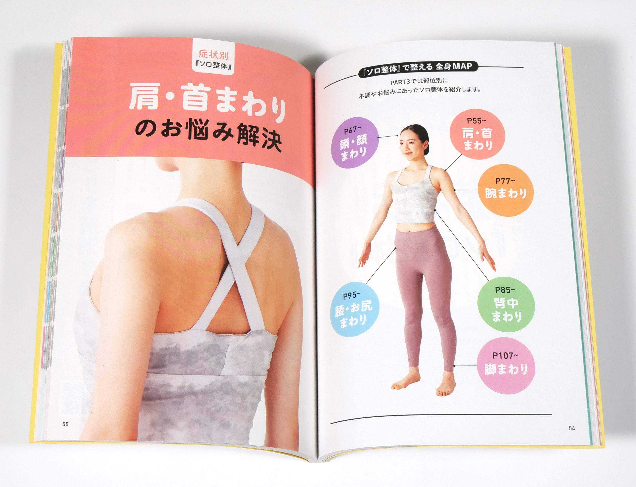 今回は37個のソロ整体が紹介されてます。肩、首まわりのこりの解消や頭、顔まわり。さらに腰、脚まわりと全身ケア出来る内容になっています。