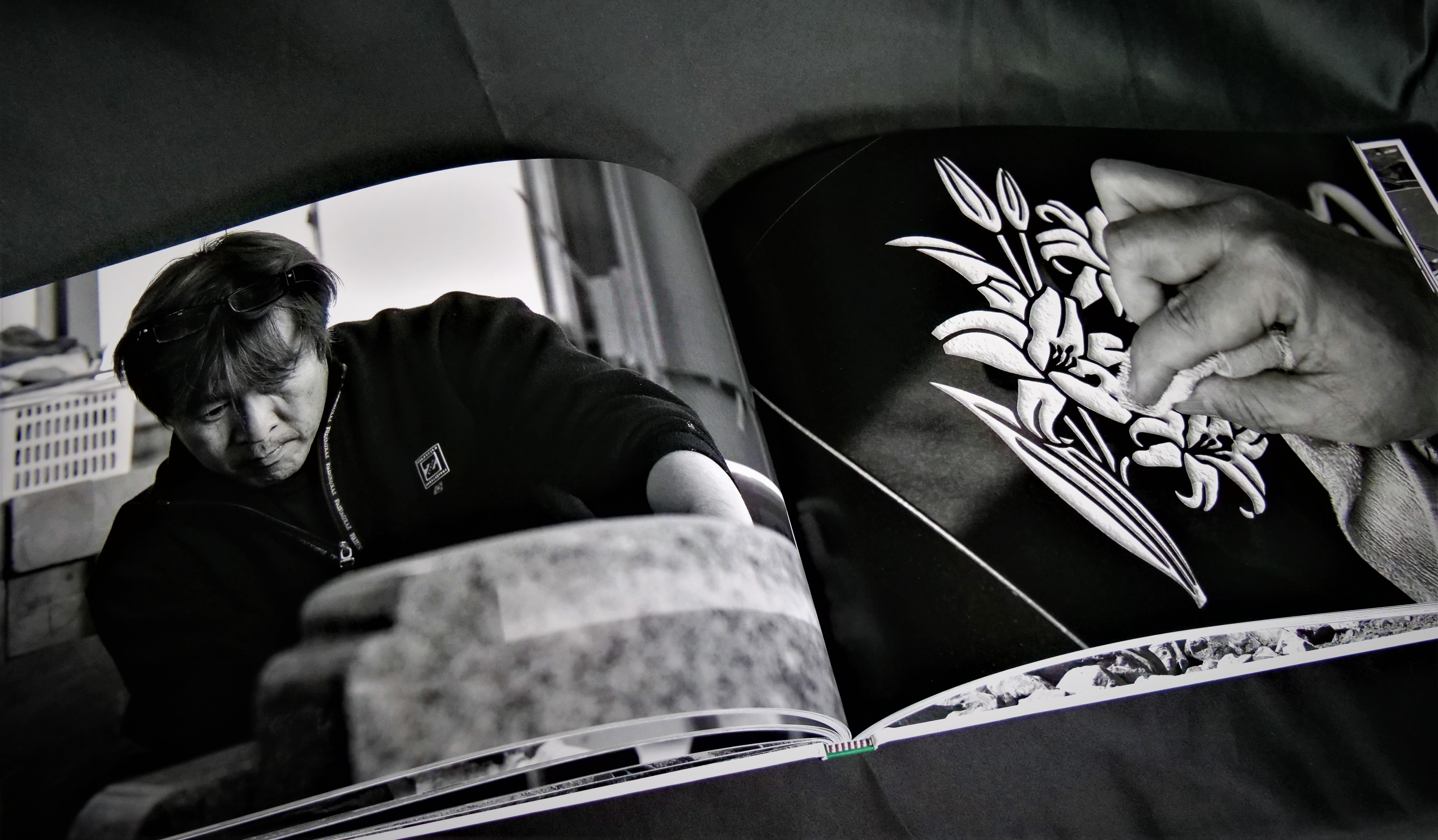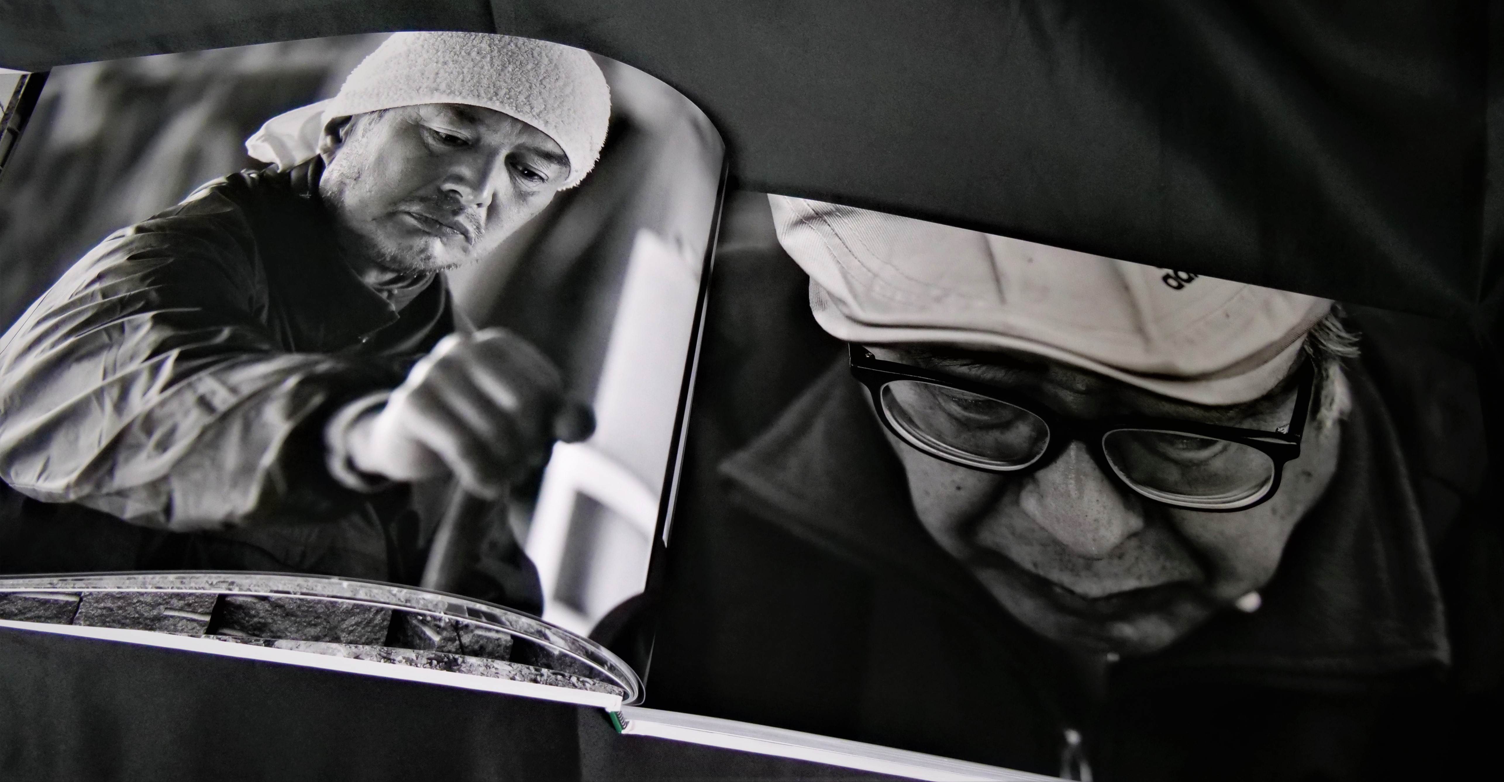 庵治石特有の表面のディテール、石の固いエッジ部分と彫刻の柔らかい曲線、職人たちの顔の「凄味」を際立たせるように、コンク墨とグレーを盛り、濃厚に印刷いたしました。吉村さんと弊社プリンティングディレクター高柳が、この写真集について対談した模様をYouTubeにアップしておりますので、ぜひご覧ください。