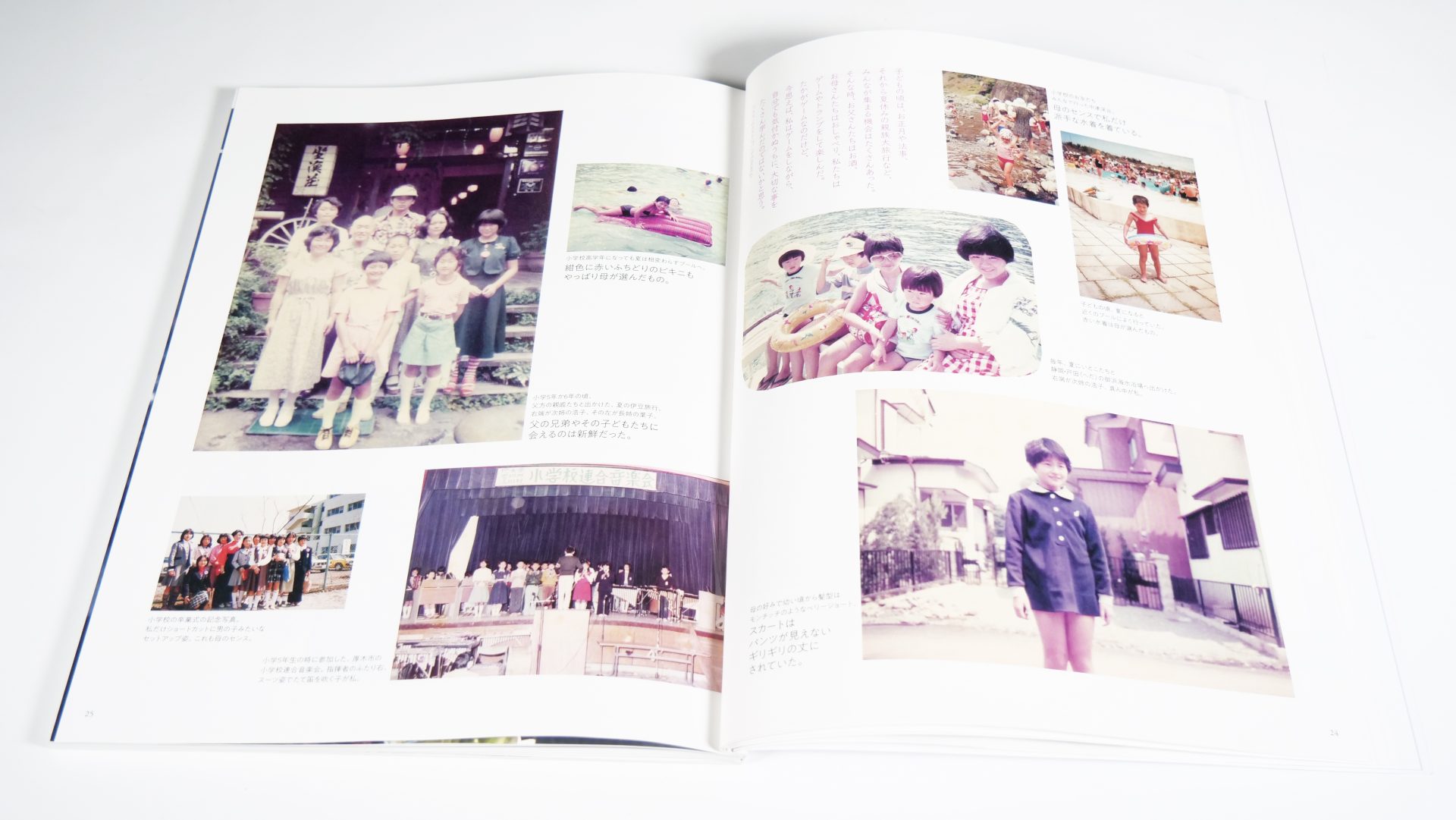 巻頭ページは、現在の姿をありのままに印刷するように製版しています。幼少期からアイドル時代のスナップ写真は、『写真の雰囲気』を残し、その当時の時代背景が感じられるように製版設計いたしました。
