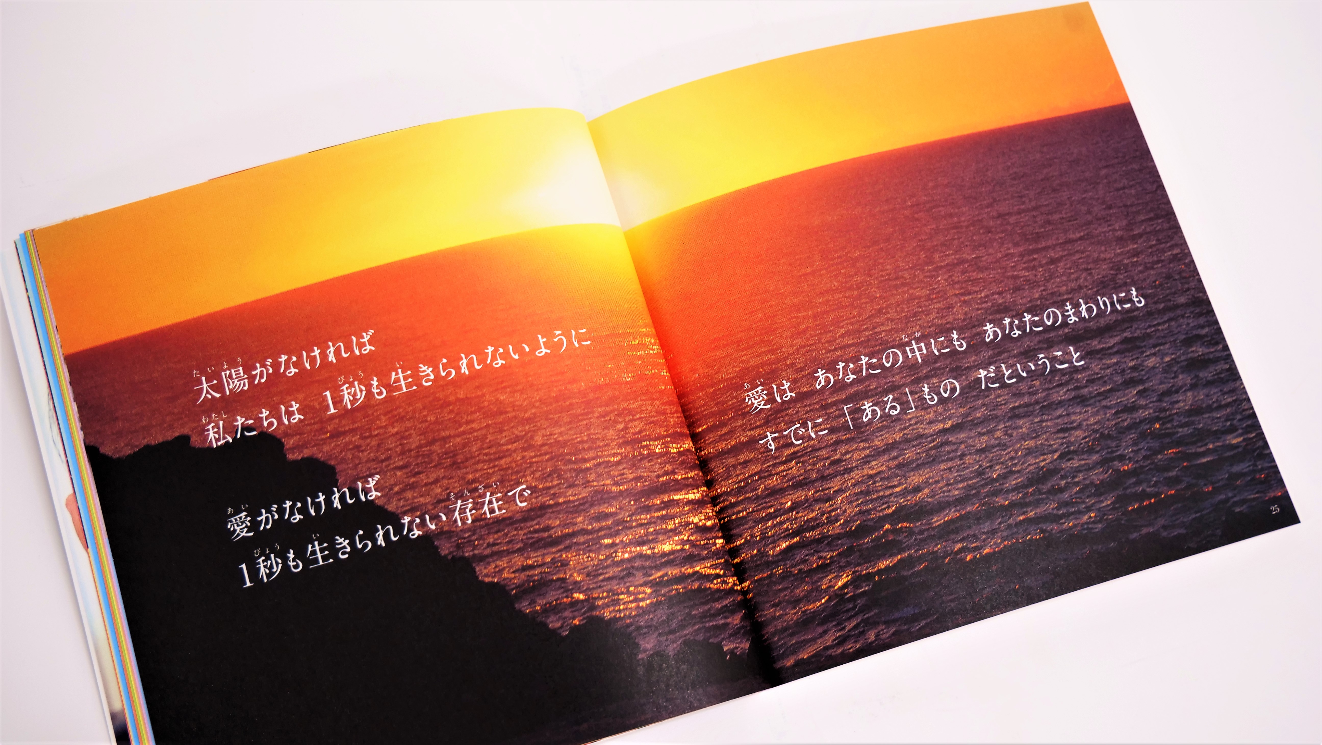 そんなふうに考えるうち、「愛」とは「感謝できること」で、「感謝できること」がまさしく「幸せ」で、「愛=感謝=幸せ」なんだと、痛感するようになりました。私たちはつい、人生をむずかしく複雑に考えがちですが、じつはこのぐらいシンプルで、人の幸福度は、どれだけ多くの愛(=感謝)に気づくことができるか、に尽きるのではないかと。(続く)—「この本が生まれるまで」(本書あとがきより抜粋)