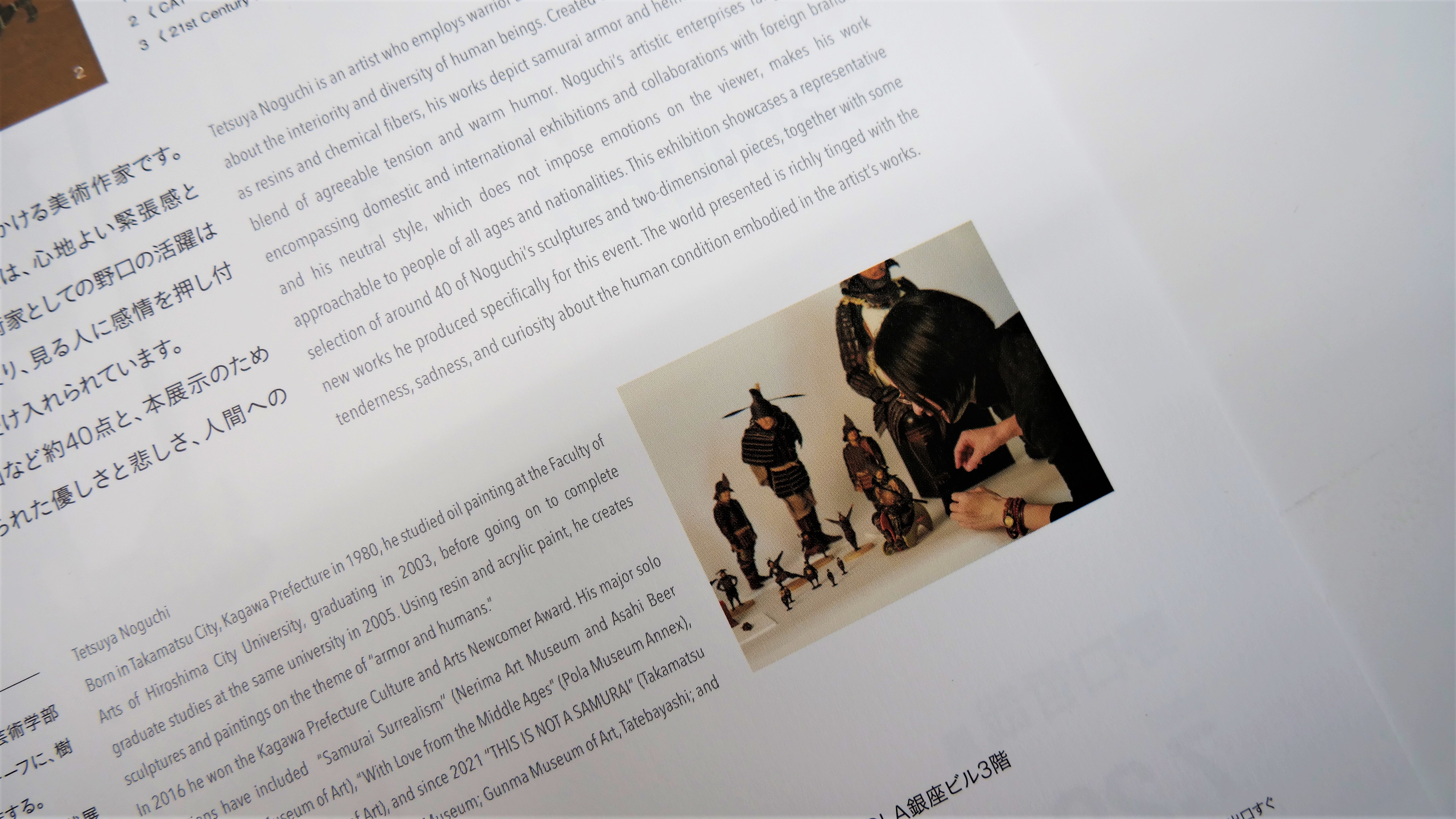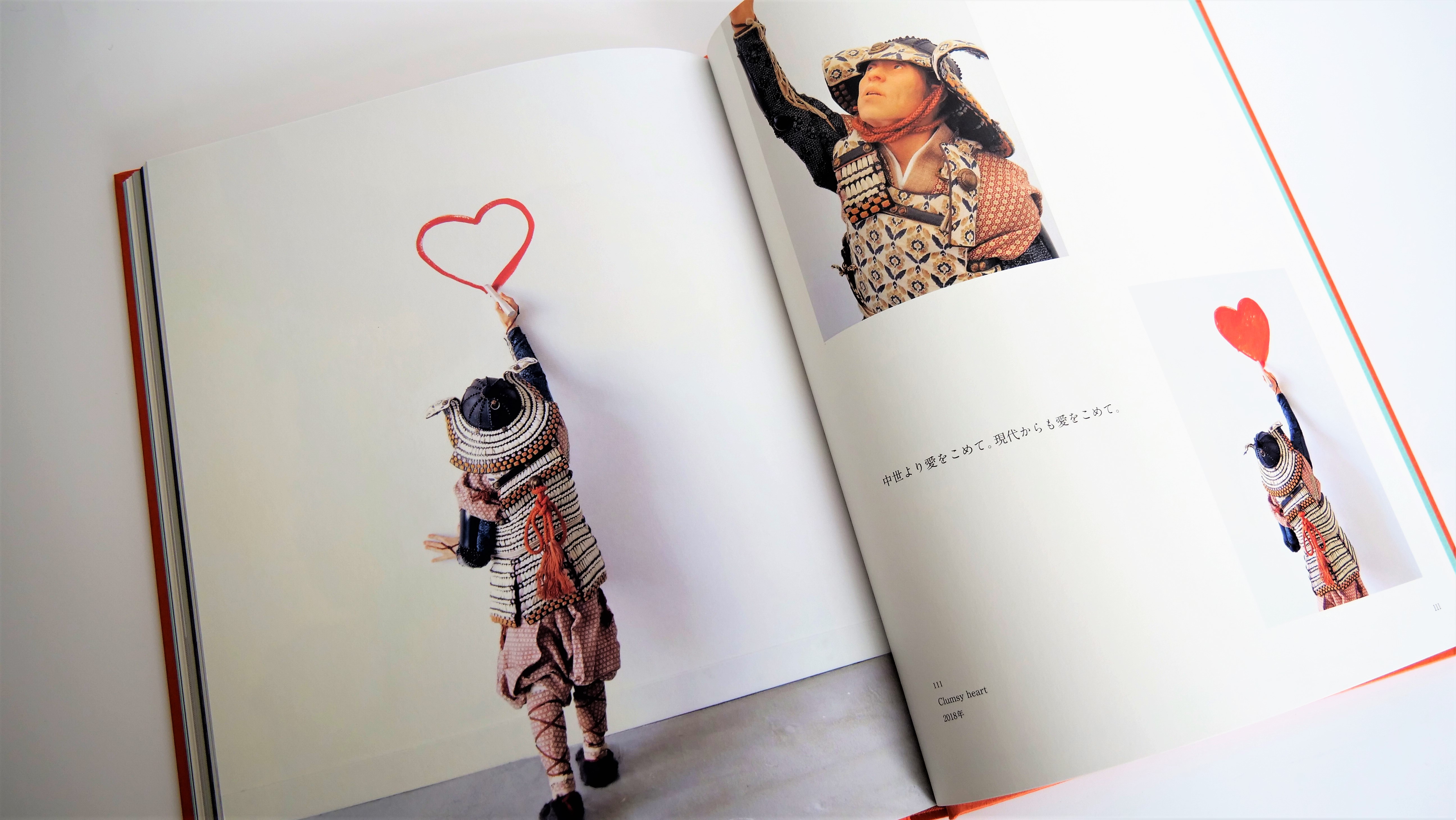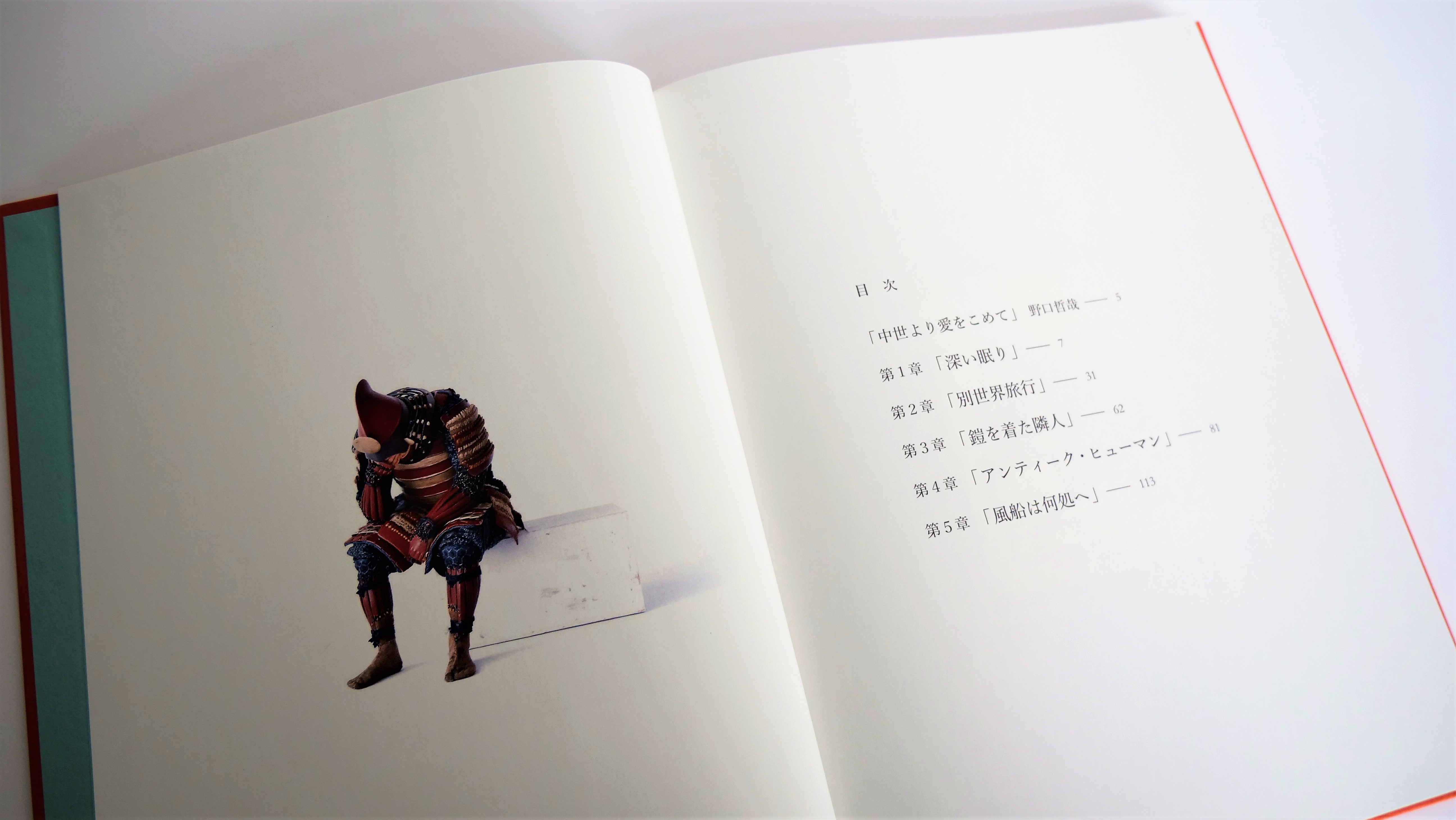 今回ご紹介するのは、ポーラミュージアム アネックスで開催中の展覧会「野口哲哉展 this is not a samurai」フライヤーと、2018年刊行の作品集『中世より愛をこめて』です。野口哲哉さんは武具や甲冑、それらを纏った人間をモチーフに、リアリズムの視点から制作活動を続けている現代美術家。