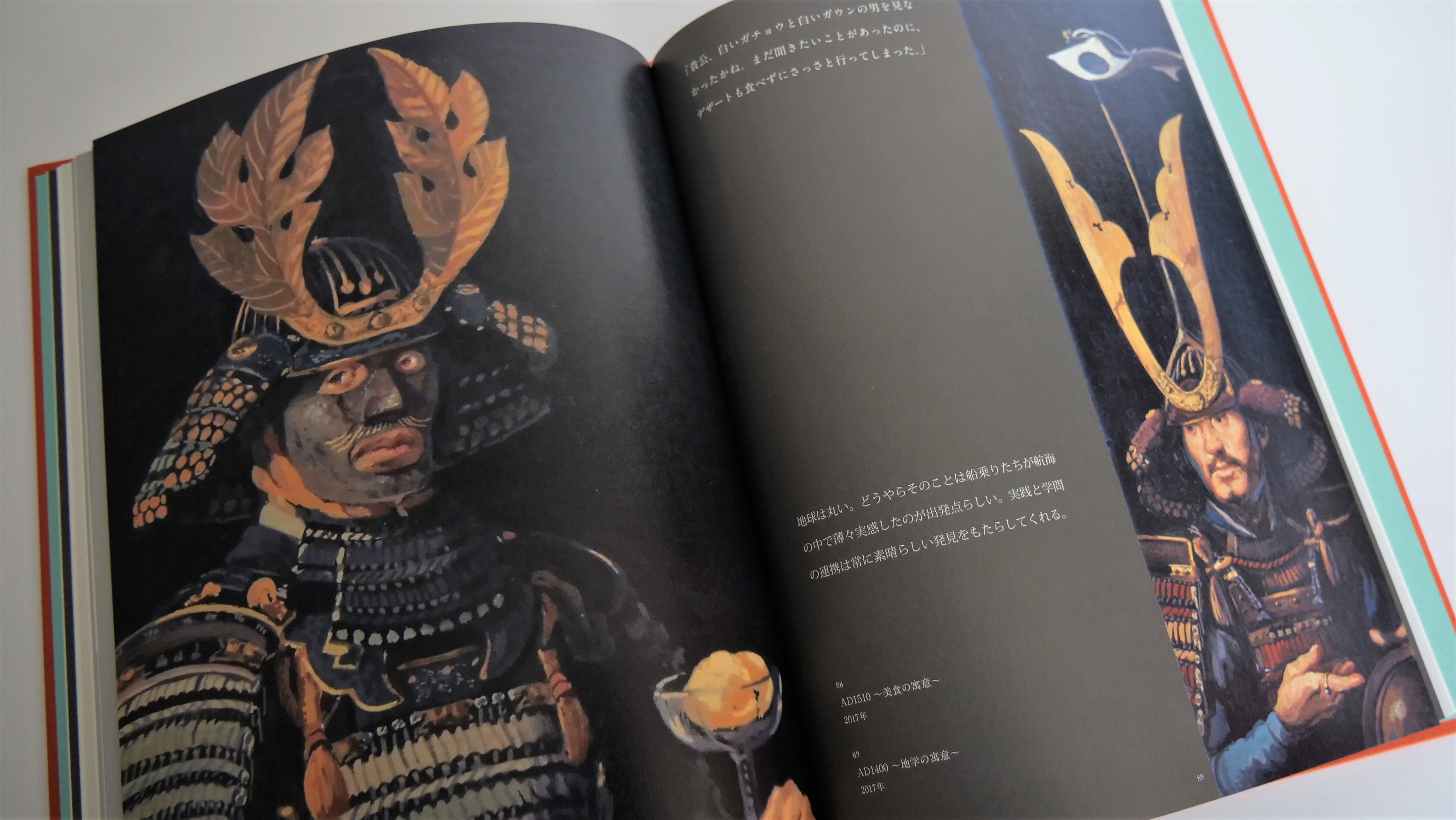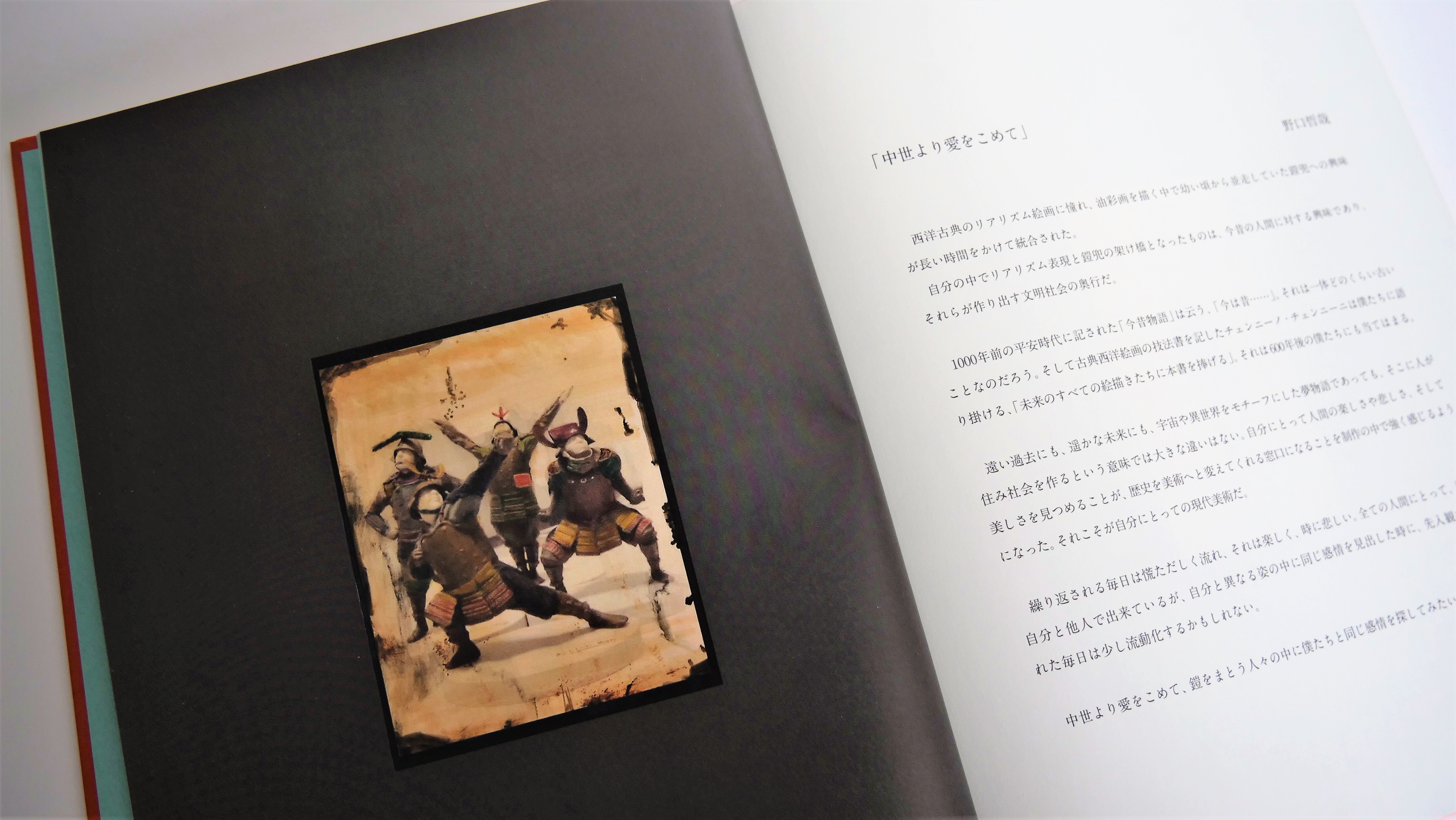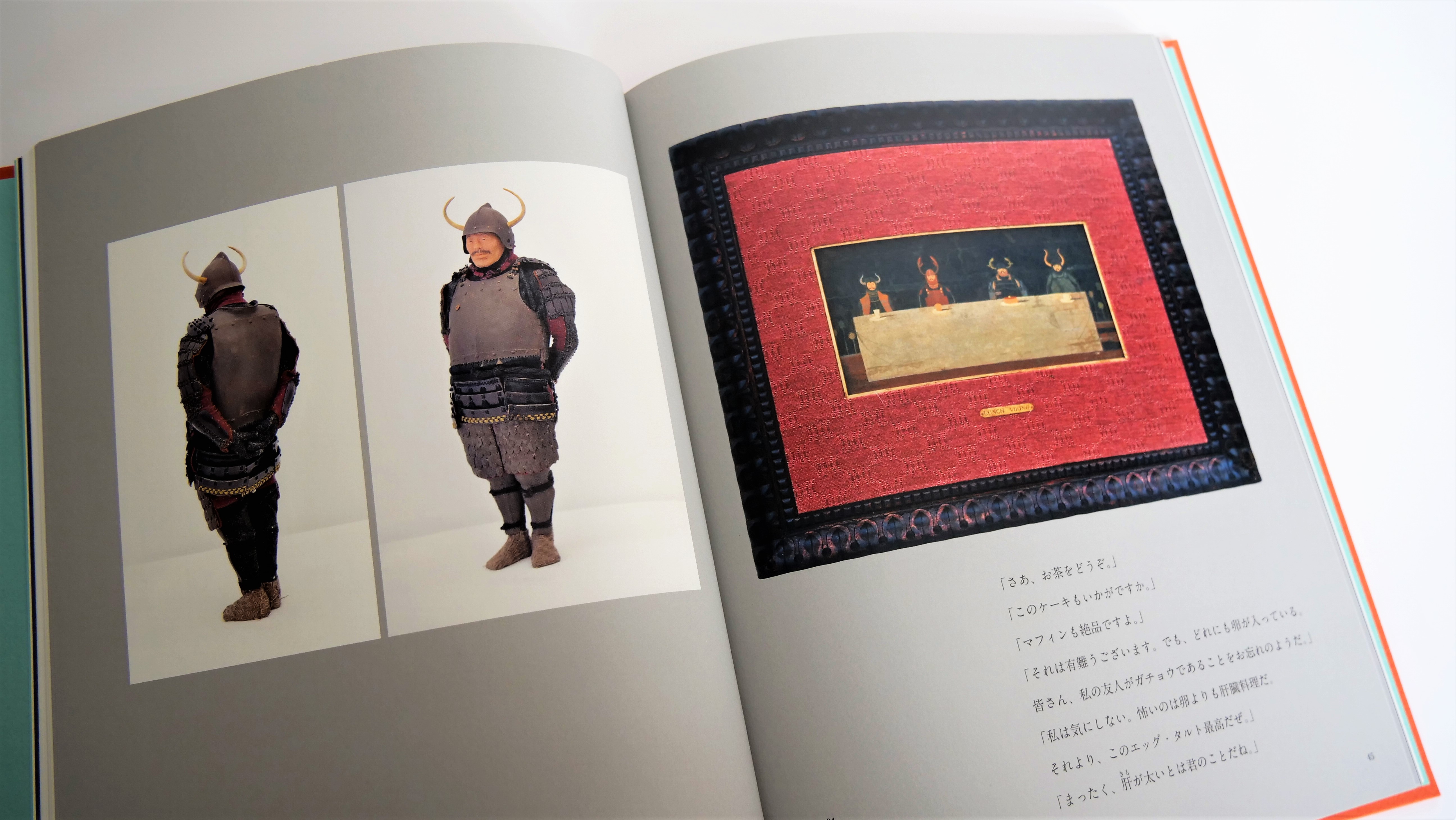 小さな侍たちがまとう甲冑にはボリュームをつけすぎず、暗部のディテールを出しつつ立体感を持たせています。絵画作品についても全体的にトーンを揃え、メリハリをつけて製版、印刷いたしました。
