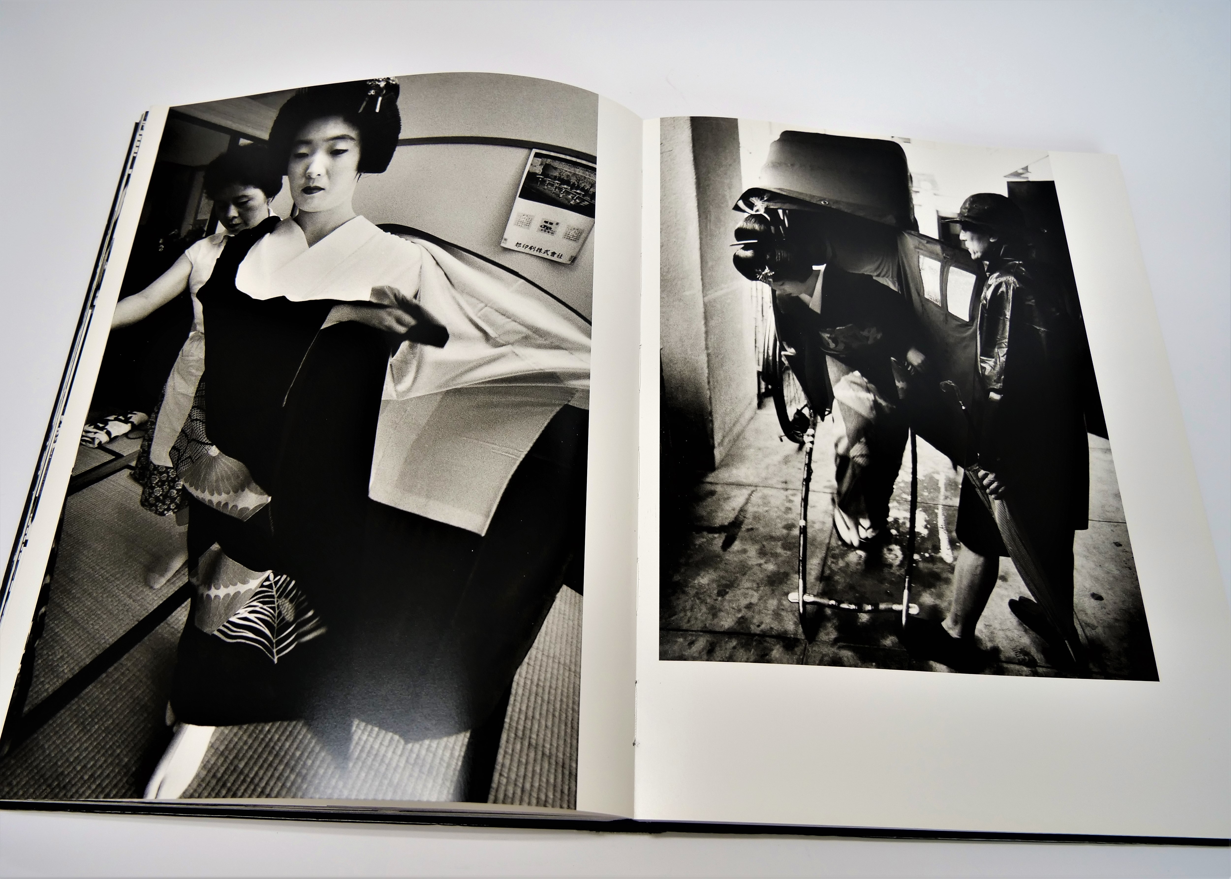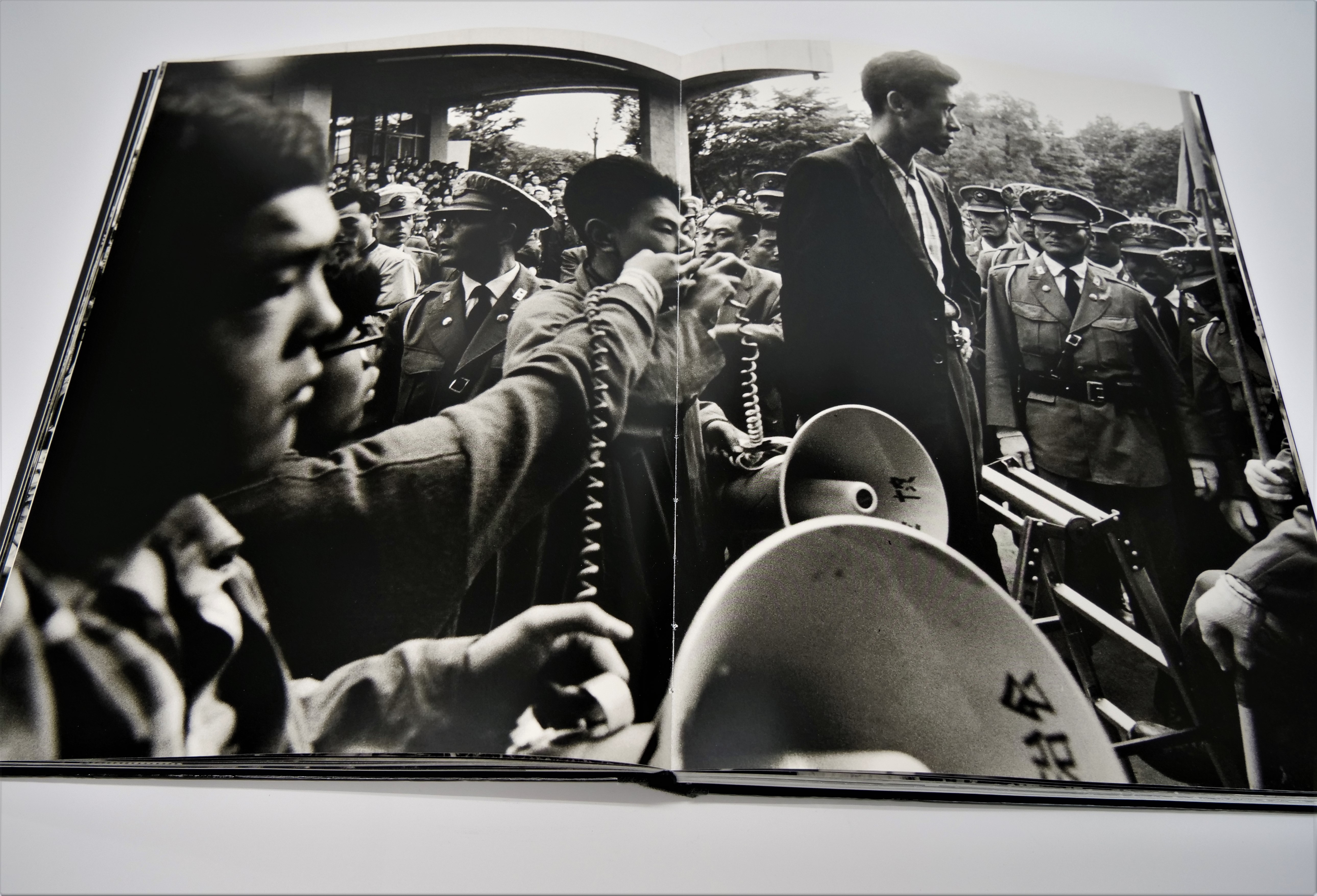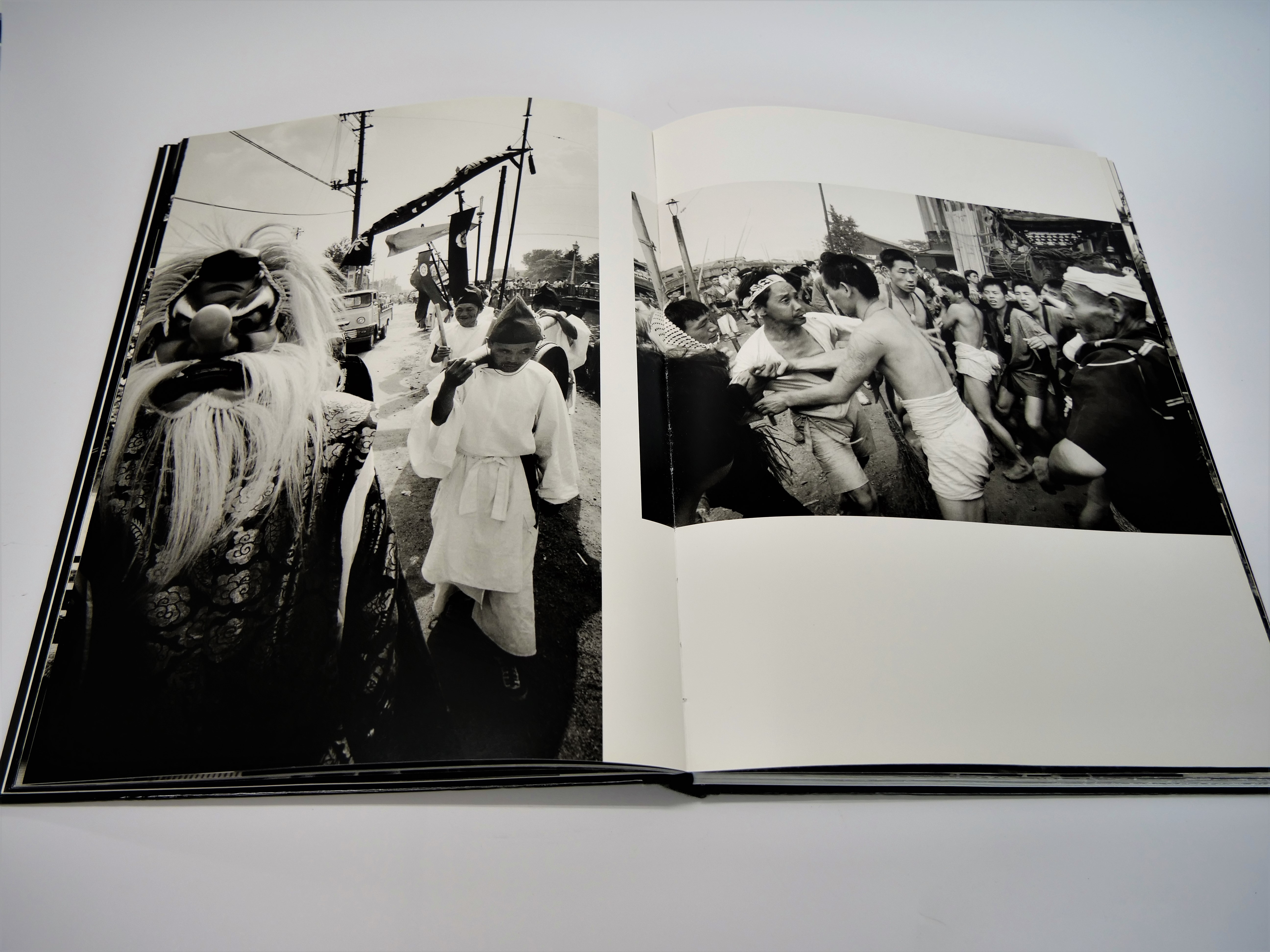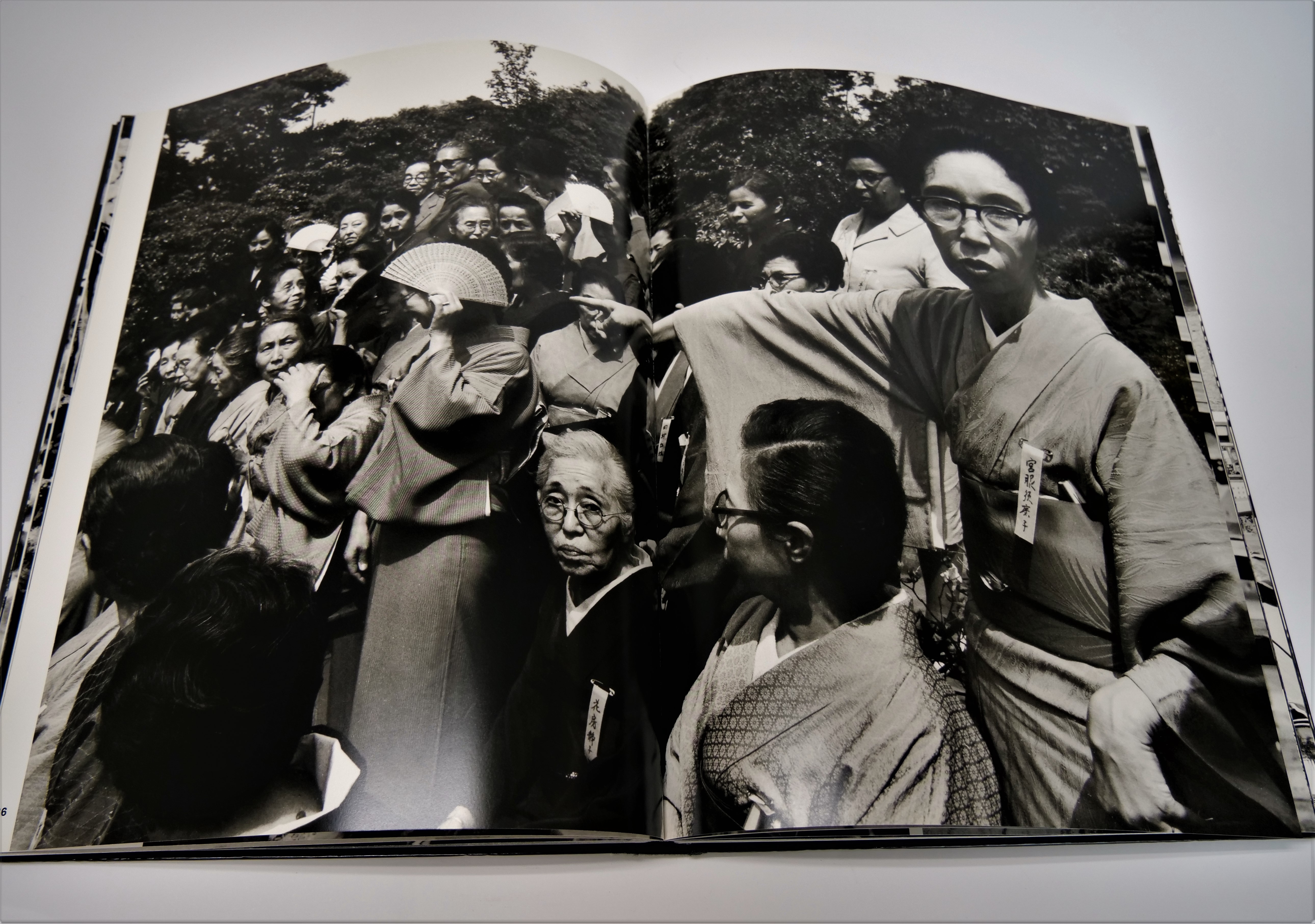 荒れた粒子やブレなどを特徴とする、いわゆる「アレ・ブレ・ボケ」と言われる手法で、パチンコホール、証券取引所、国会、ネオンや看板、あるいは昭和天皇、歌舞伎役者、ストリッパー、芸者、関取、小学生とさまざまな場所や人物を被写体にしたこれらのエネルギーに満ち溢れた写真は、クライン氏自身のアートワークにより、ページをめくるたびに新鮮な驚きを感じさせるように一分の隙もなく配置されています。