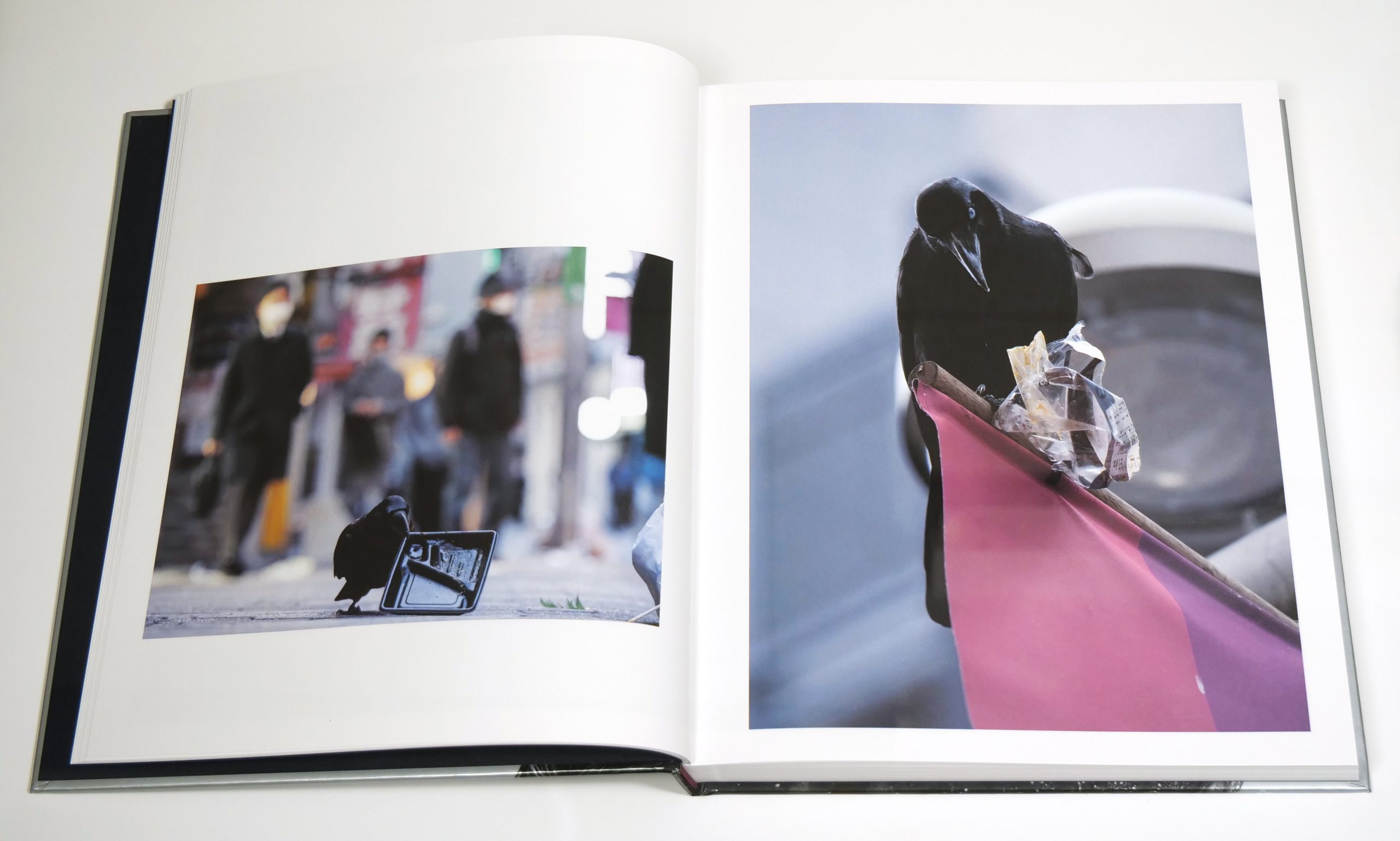 今回の写真集を印刷した後でもカラスに出会うと濡羽色や構造色を観察している自分がいます。写真家清水哲朗氏によって切り取られた「トウキョウカラス」の写真はどれも印象深く“スー”と脳内に侵入してしまうのです。実に不思議です。どんな環境にも適応し、実に気高く生きているカラスに“大あっぱれ”です。