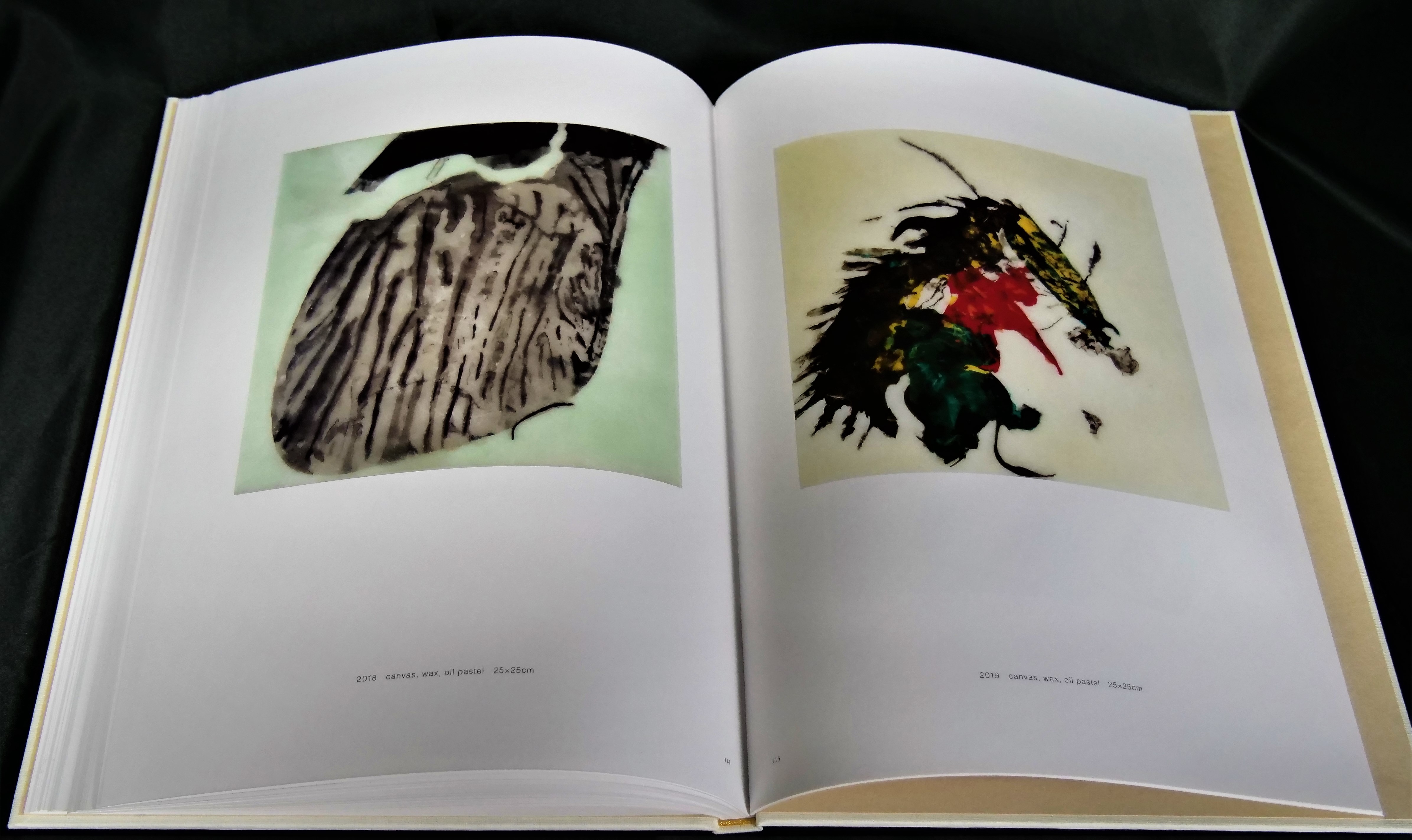 弊社ディレクターがミヅマアートギャラリー様に赴いて、現物校正を行うことにより、筒井氏の蜜蝋画の色彩やディテールを再現するよう努め、製版、印刷いたしました。