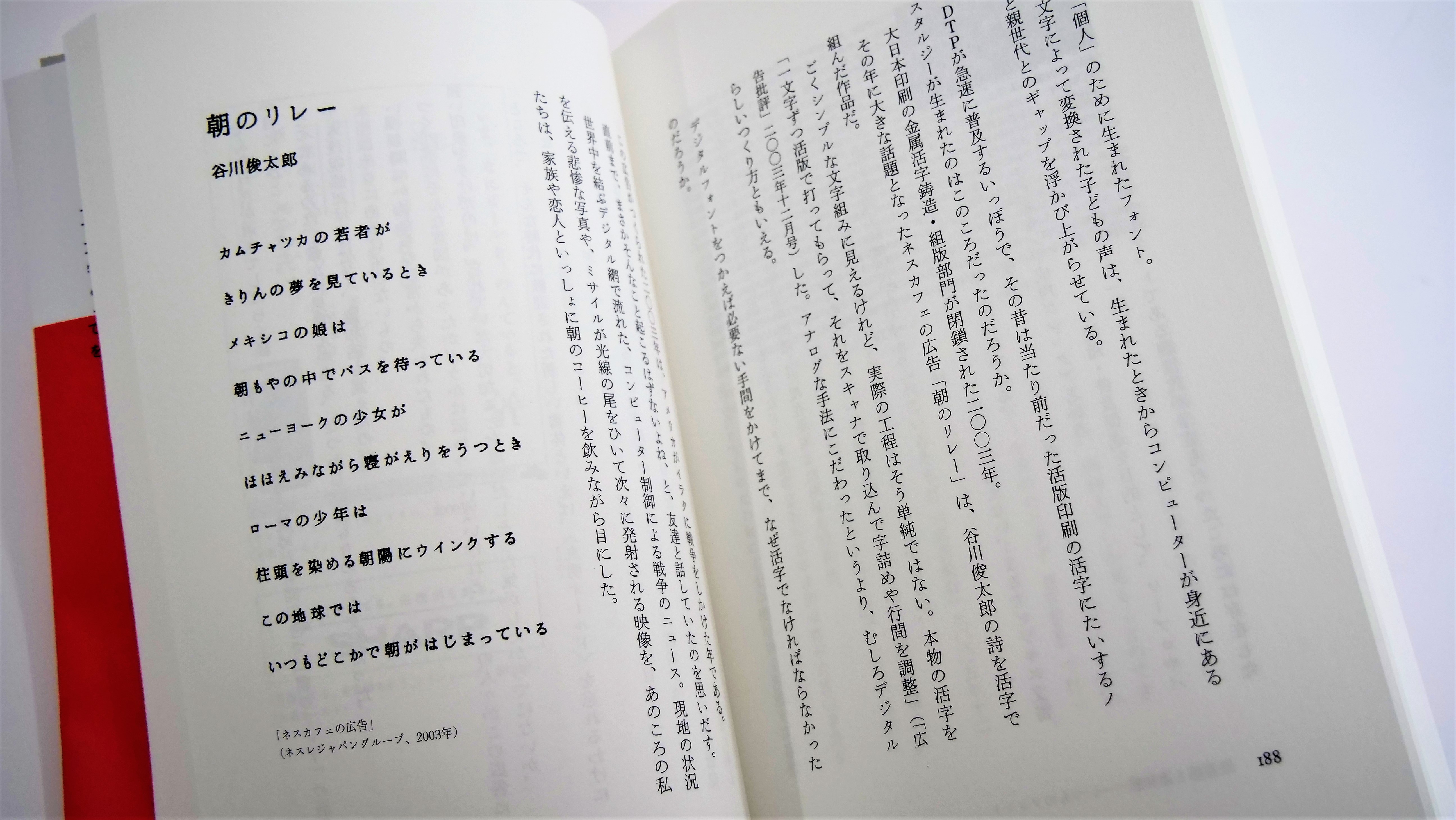 文中に登場する謎の暗号のような言葉〈新ゴ〉〈見出ミンMA31〉〈タイポス〉〈ゴナ〉〈ファン蘭〉〈リュウミン〉…これらはすべて書体の名前で、小沢健二の「今夜はブギーバック」、90年代の「週刊少年ジャンプ」、竹宮惠子の少女漫画『風と木の詩』、『ハリーポッター』など、特にアラフォー、アラフィフ世代は馴染み深いものばかりです。