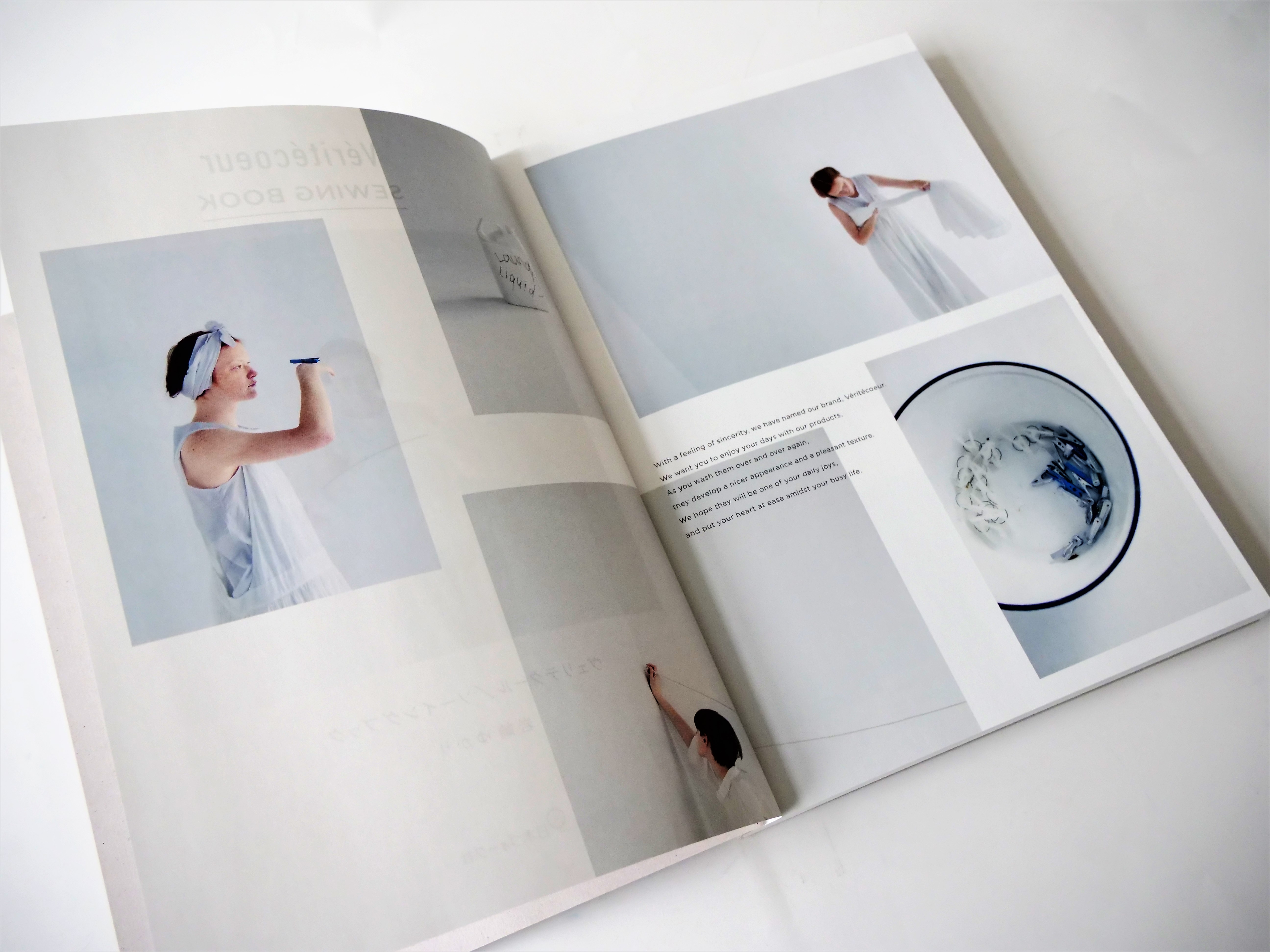 撮影状況の雰囲気を残し、清潔感のある白さと洋服のギャザーやタックなどの細かいディテールを追求して、製版、印刷いたしました。