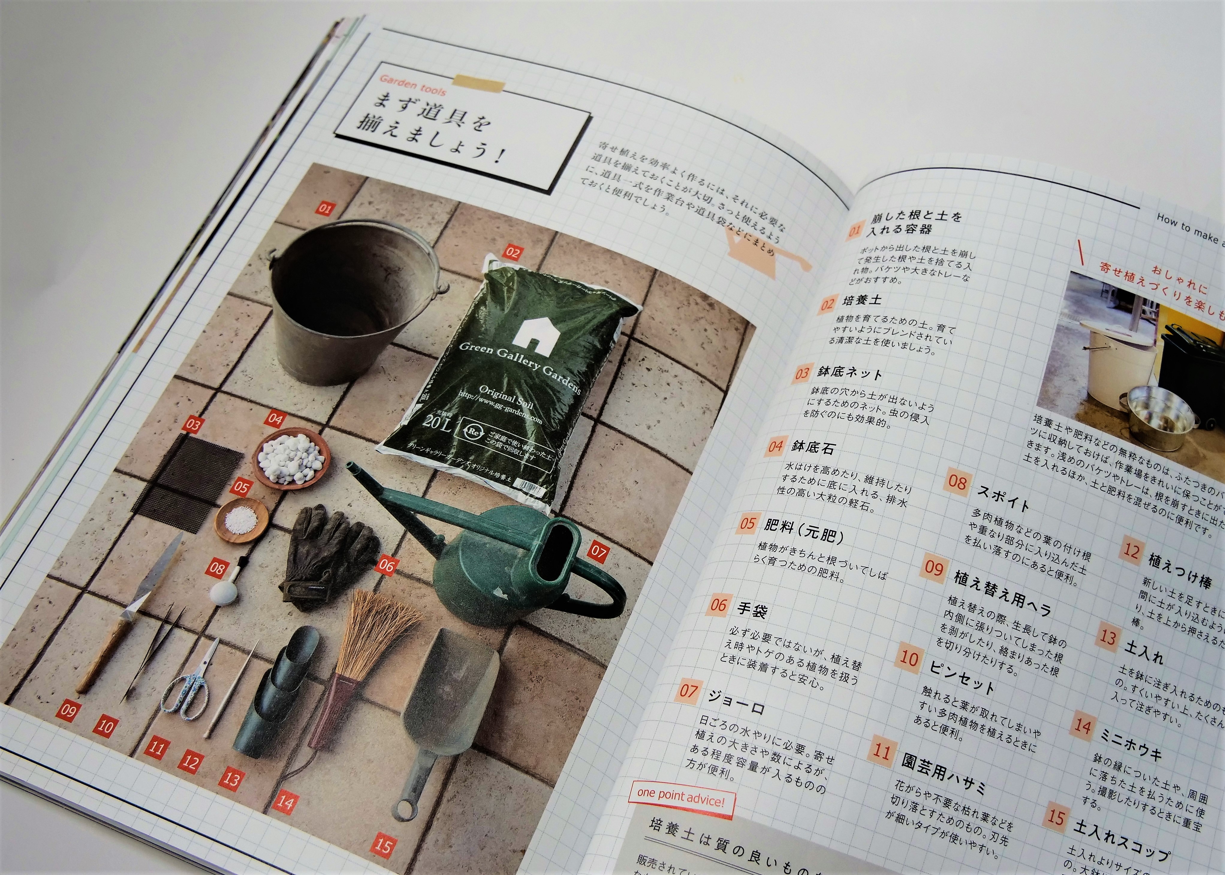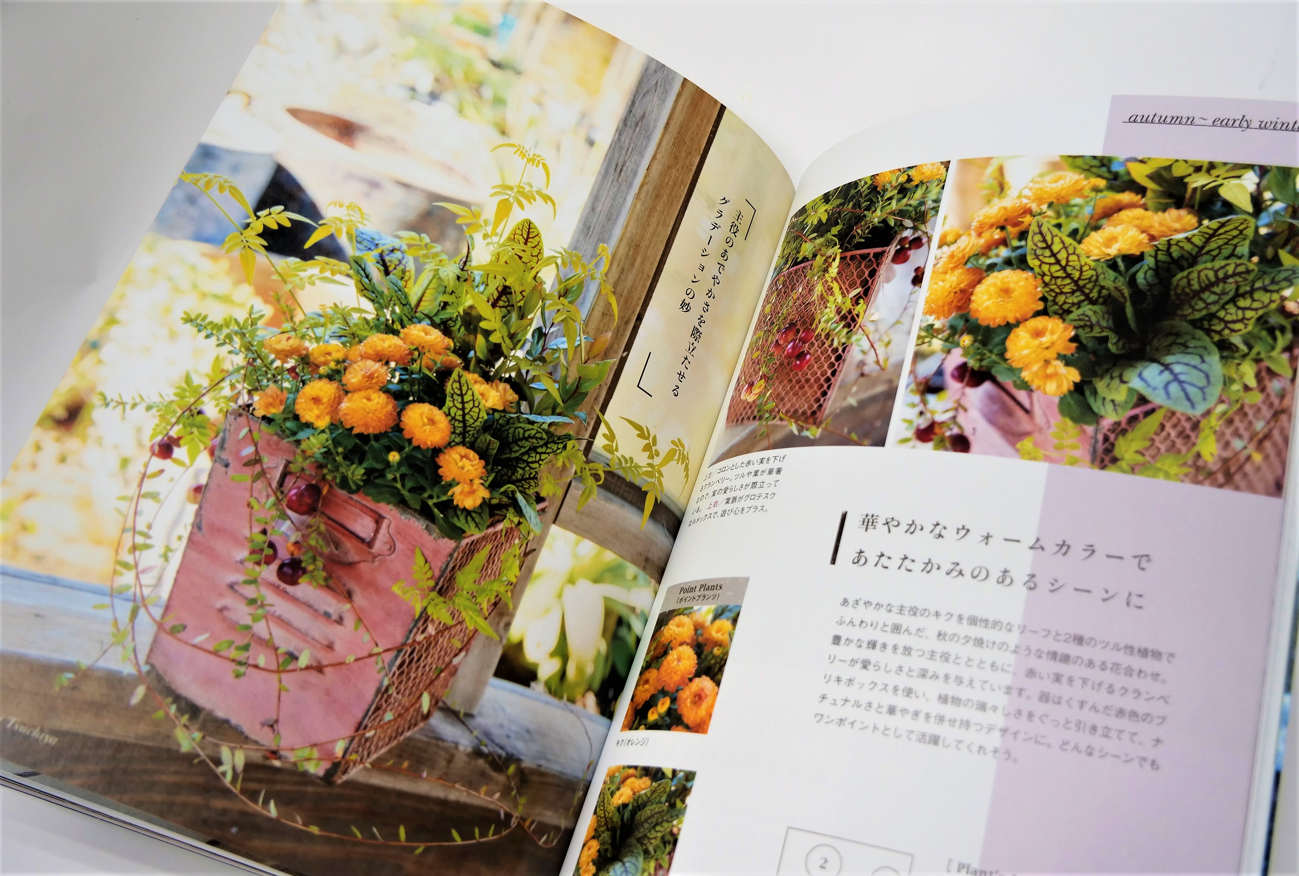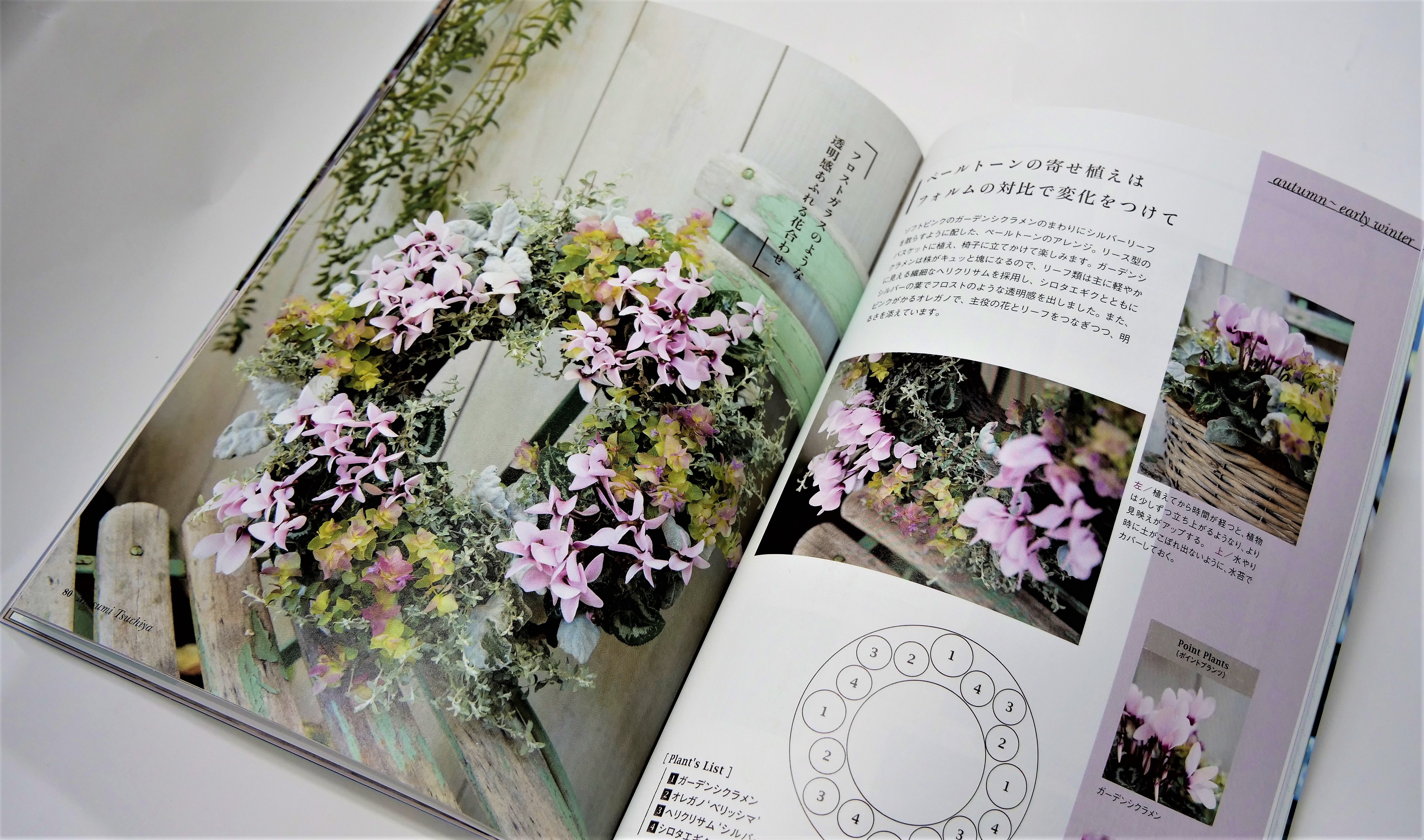人気園芸店グリーンギャラリーガーデンズ提案の作例の写真が、とても「映え」ていましたので、おしゃれな寄せ植えの美しさを十二分に伝えるよう、色味は全体的に派手すぎないシックなトーンで製版、印刷しています。